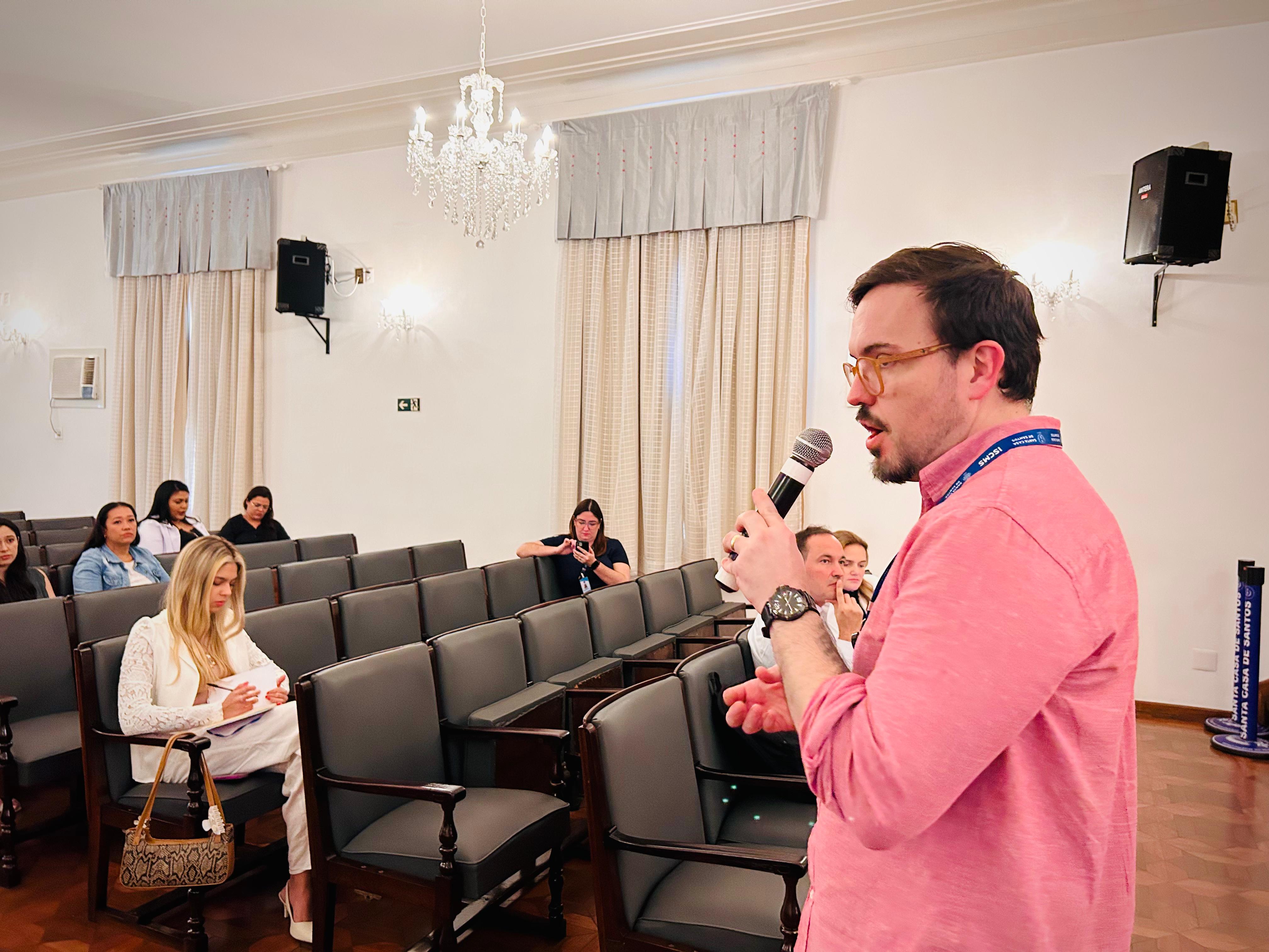 Durante a apresentação, o palestrante abordou os principais desafios da Odontologia Domiciliar em pacientes idosos, destacando a importância do olhar humanizado e das estratégias de atendimento que respeitam as limitações físicas, emocionais e sociais desses pacientes. Em seguida, após um breve coffee-break, ele retomou a fala com o tema “Soluções na Odontologia Domiciliar”, propondo caminhos viáveis para o fortalecimento dessa prática no contexto do cuidado integral em saúde.