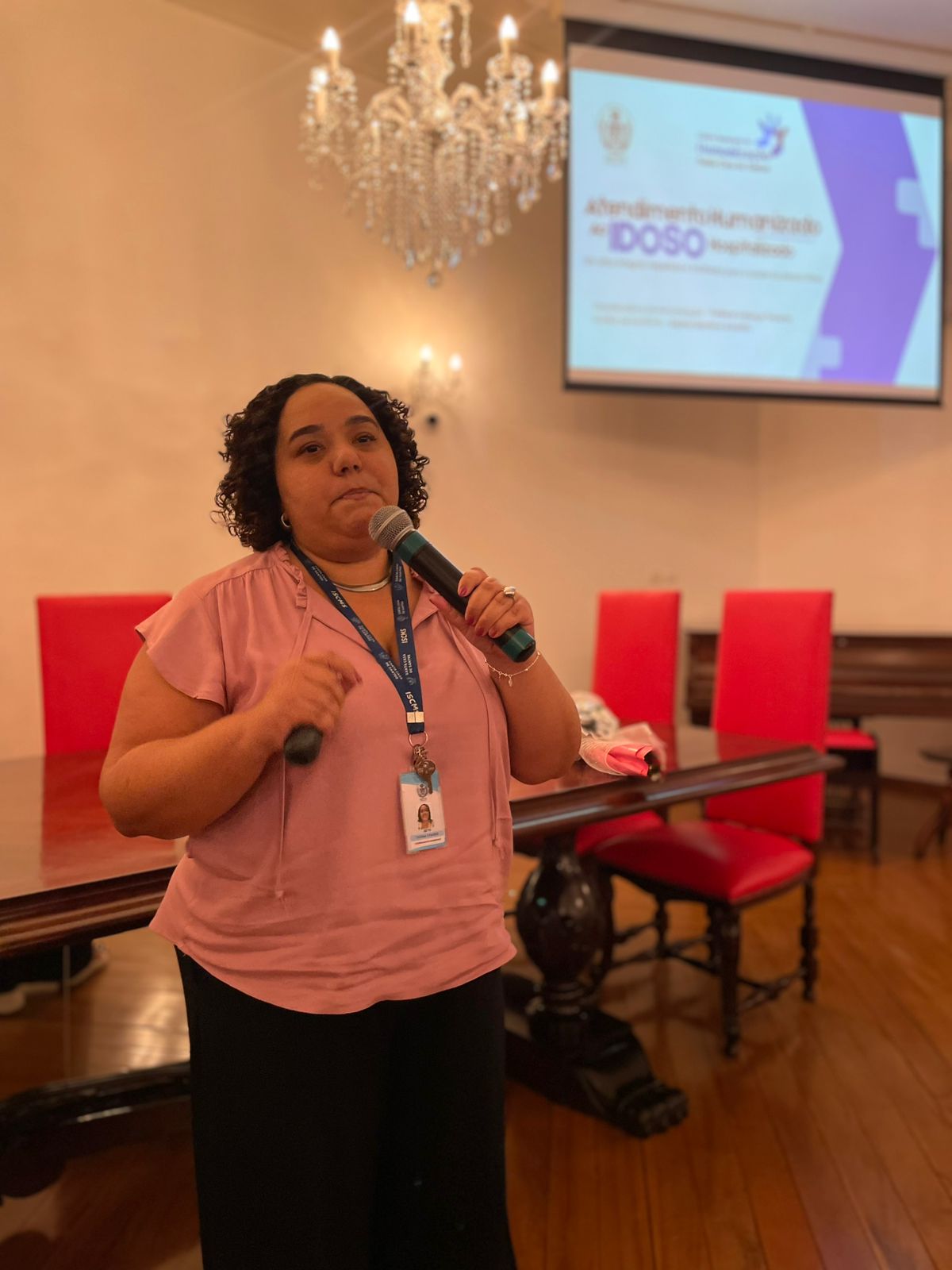 Encerrando a programação, Tatiana Valença Tavares, coordenadora de Humanização, falou sobre “Atendimento humanizado ao idoso hospitalizado”, reforçando o compromisso da instituição com uma assistência centrada no paciente, com empatia, escuta ativa e respeito às particularidades do envelhecimento.