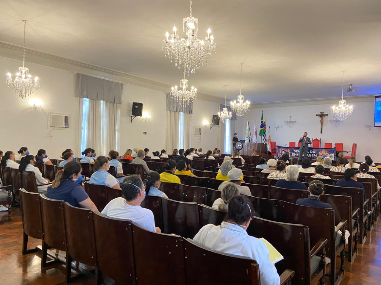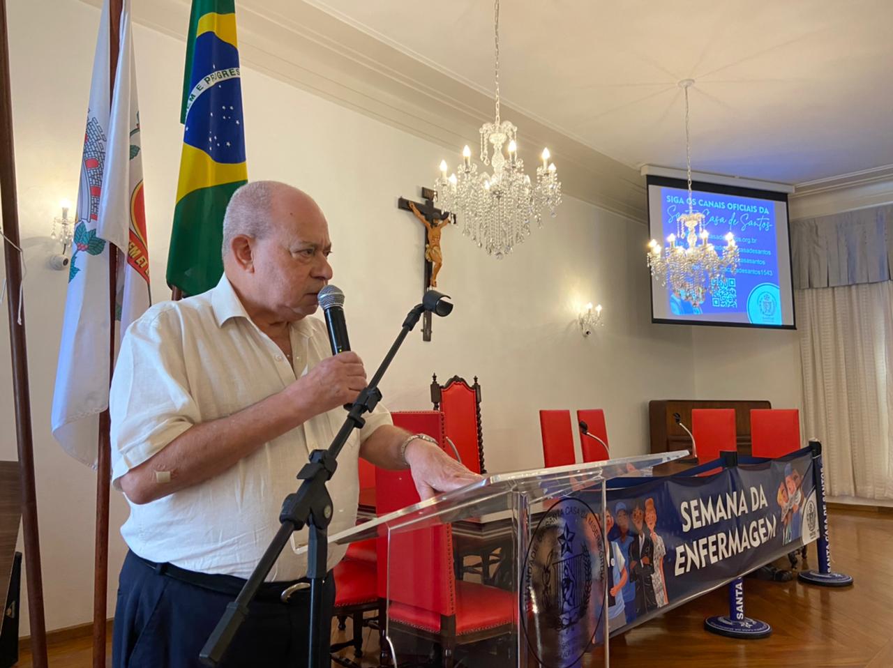 A Semana da Enfermagem 2021 da Santa Casa de Santos está sendo um sucesso de público e com participação interativa dos profissionais. Ontem, dia 17/5, o provedor Ariovaldo Feliciano fez a abertura do evento, no Consistório da Irmandade, e apresentou o palestrante do dia, o Procurador Geral, advogado e especialista em redes sociais, Dr. Raphael Vita Costa. O provedor explicou ainda sobre evolução da internet, os perigos da fakenews e agradeceu aos profissionais de saúde por participarem do evento.