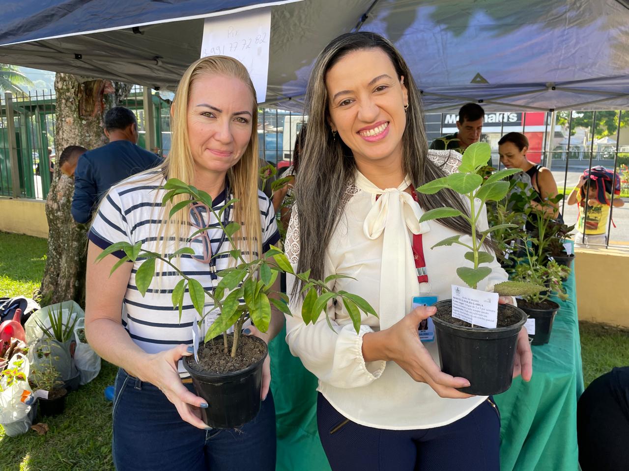 Entre os interessados em adquirir as mudas, estavam funcionários e pessoas que passavam pelo local, como pacientes e visitantes. Destaque para a enfermeira Raquel, da Central de Vagas, que não perde uma feira e sempre compra várias mudinhas.