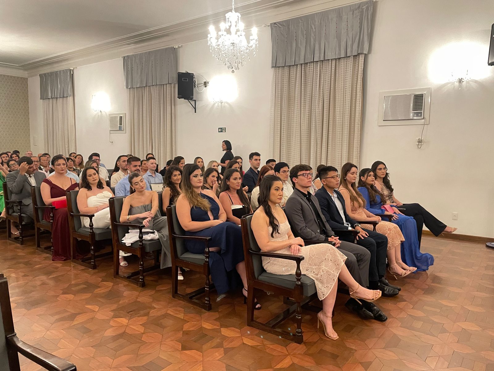 O Preletor, Dr. Gabriel Trindade, parabenizou os formandos e destacou que “Esse momento é muito especial, pois é o resultado de anos de estudo, dedicação e muitos plantões. Vocês serão recompensados por todo o trabalho exercido e que ainda exercerão na carreira. Hoje é um dia de muita alegria para vocês, para os familiares e amigos”.