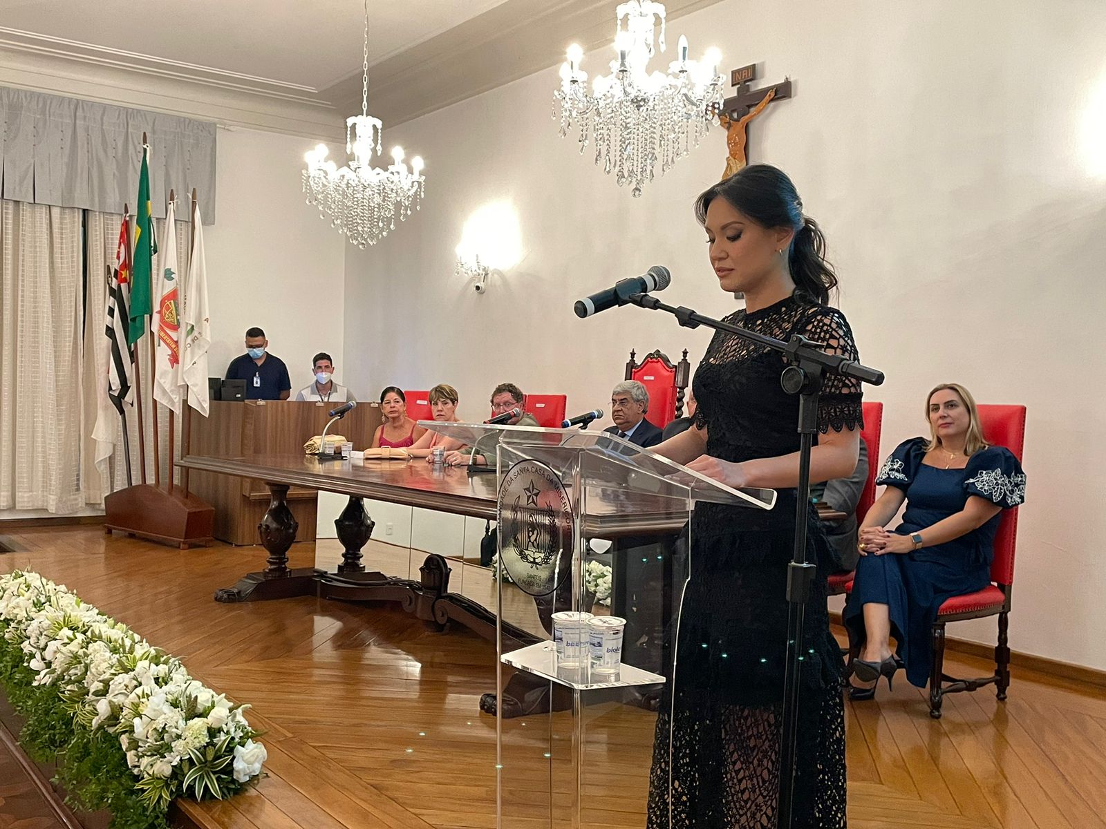 Escolhida como oradora da turma, a Drª. Carolina Yamaguchi Chaude falou em nome dos formandos e fez um discurso emocionado. Ela recordou momentos críticos da pandemia - “Compartilhamos alegrias, dividimos as tristezas, passamos noites em claro. Finalmente podemos estar todos juntos, depois dos exaustivos últimos anos numa luta incansável contra a pandemia”, declarou.