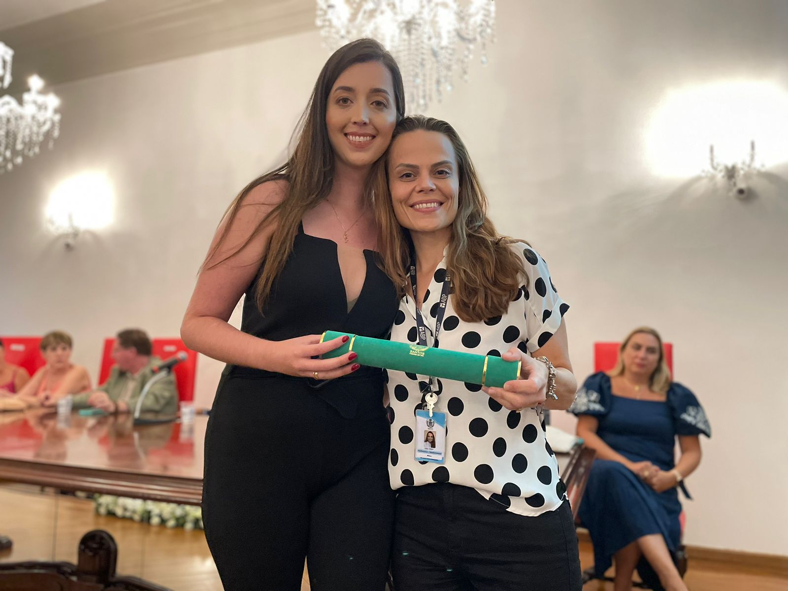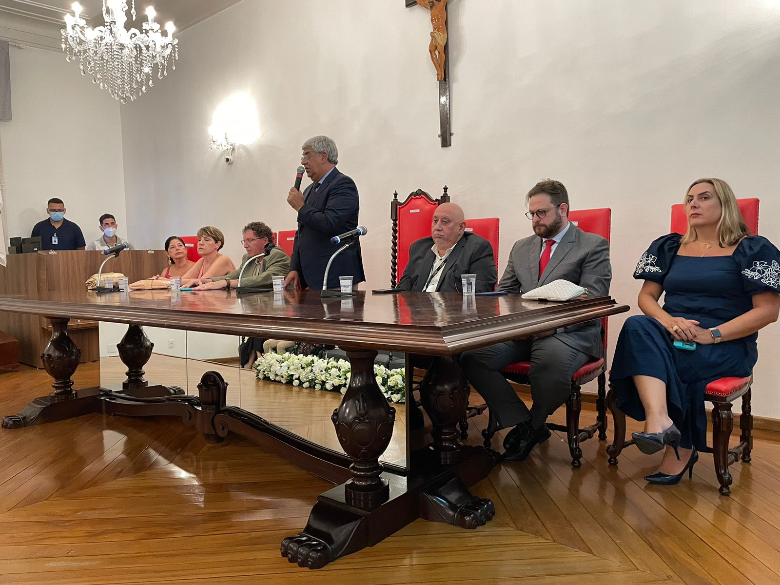 Antes de chamar o vice provedor para o discurso de encerramento, o mestre de cerimônias Agrício Junior, pediu desculpas por quebrar o protocolo, e falar sobre a emoção de ver a Drª. Carolina se formando na residência médica, lembrando que também foi mestre de cerimônias quando a profissional iniciou o internato. Ele destacou a atuação de todos no período da pandemia, e agradeceu a dedicação dos profissionais numa fase tão repleta de incertezas, que entrou para a história da saúde mundial.