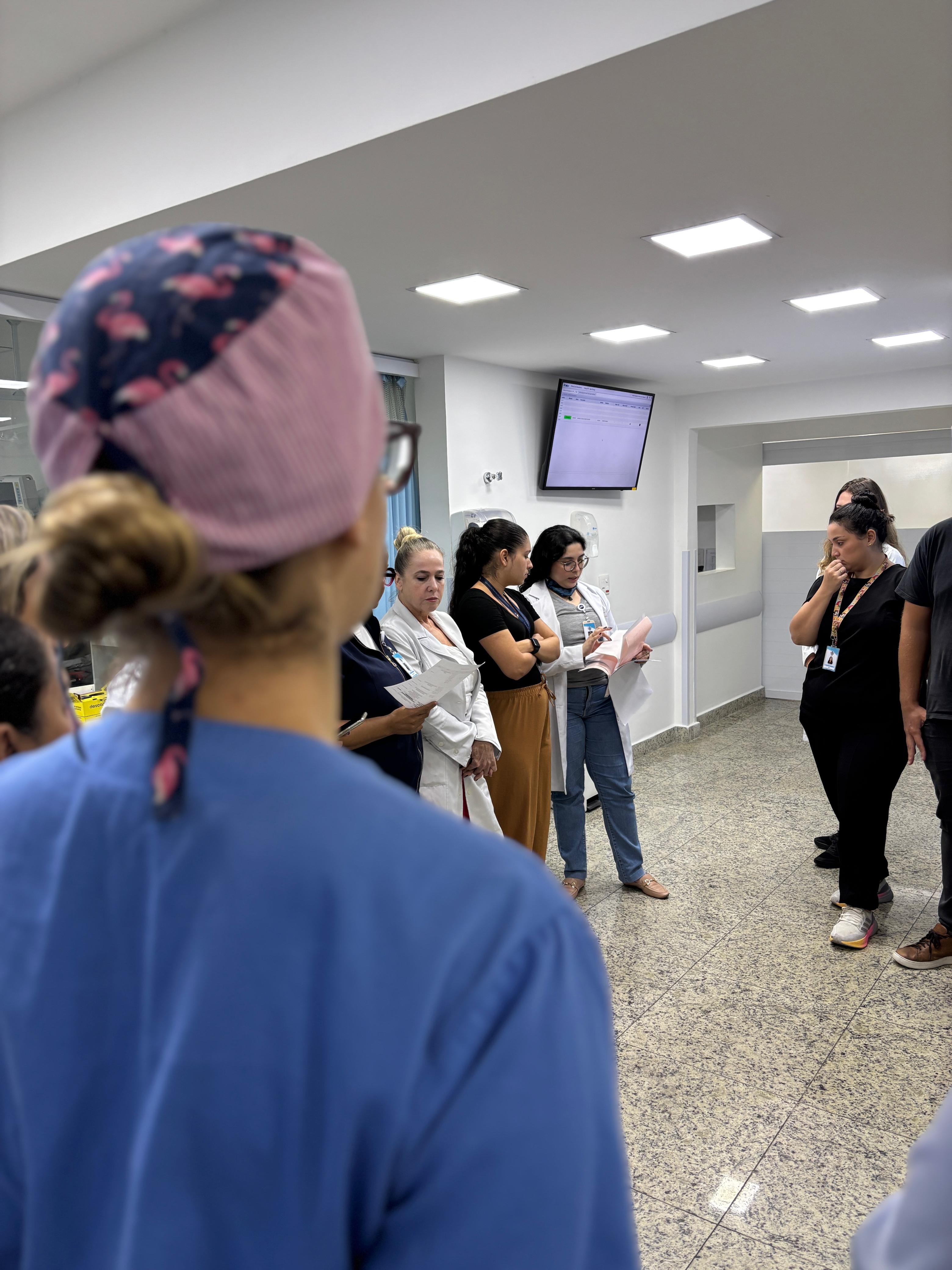 No pronto socorro adulto da instituição, o Safety Huddle é realizado em três períodos (manhã, tarde e noite) e tem como objetivo identificar riscos de segurança iminentes, compartilhar eventos ocorridos, promover a comunicação entre os membros da equipe, e reforçar prioridades e boas práticas. O encontro tem duração máxima de 10 minutos e tem a participação da equipe multidisciplinar, enfermeiros, médicos, lideranças e central de vagas.