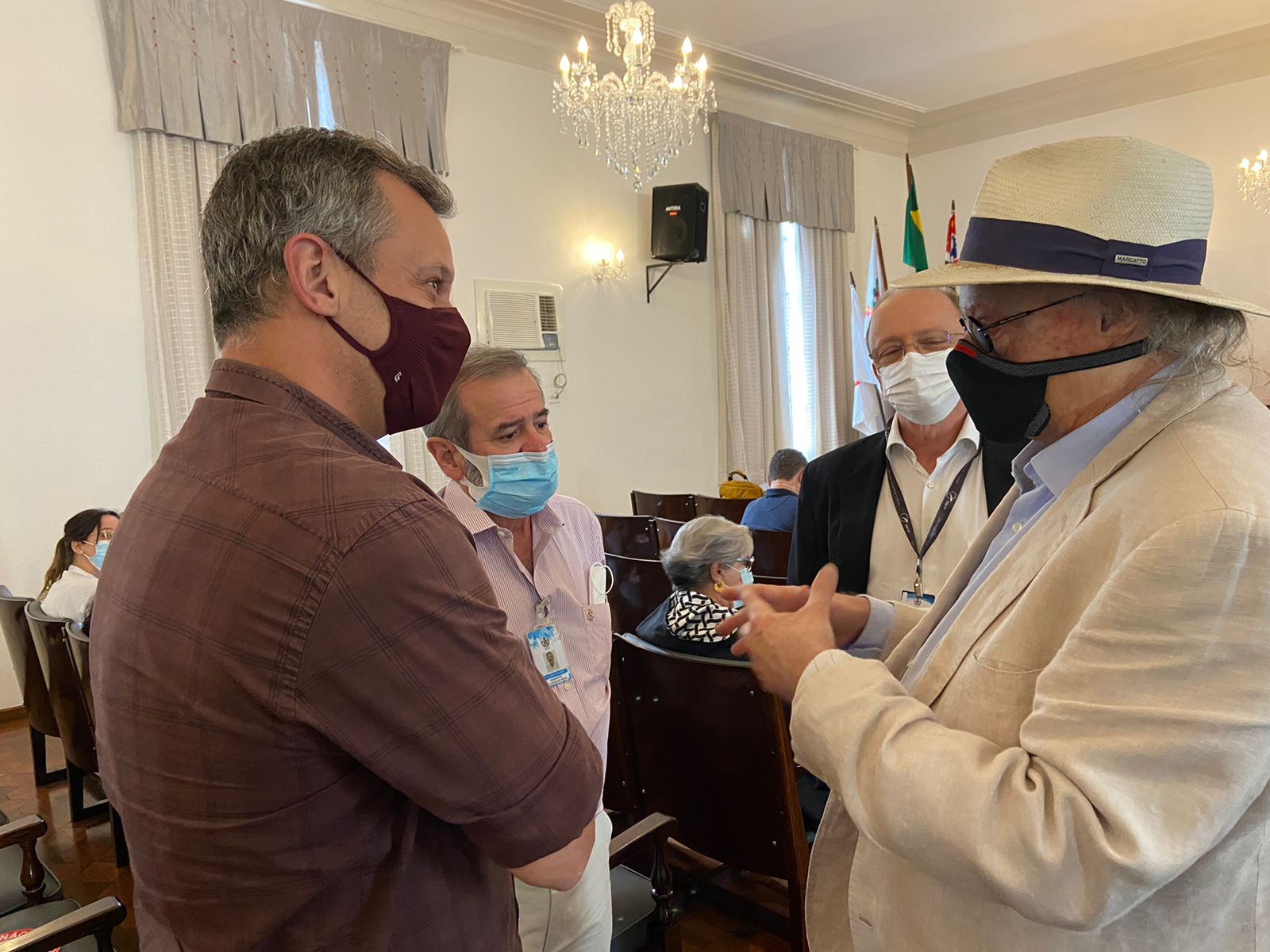 O provedor Ariovaldo Feliciano recebeu Dr. Tejon na Sala João Octavio dos Santos, acompanhado do presidente do Conselho Geral, Orlando Viscardi, e do 2º secretário, João Domingos Neto. O cirurgião plástico, Dr. Sylvio Corrêa da Silva Junior, foi convidado especialmente para a ocasião, por ser filho do Dr. Sylvio Corrêa (pai – já falecido), que é sempre lembrado nas palestras de Tejon, por ter sido o médico responsável pelos procedimentos realizados desde o acidente que mudou sua vida.