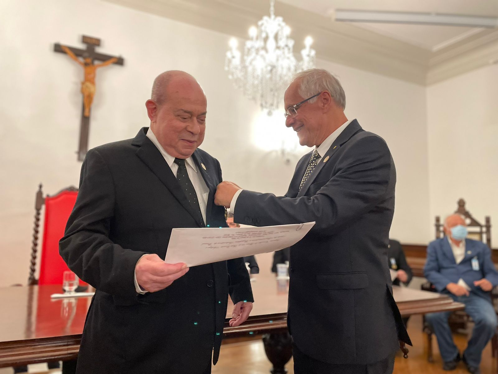 O Grande Inspetor Litúrgico Vitor Conde, em reconhecimento à excelente administração da instituição, fez a entrega da terceira Comenda ao Provedor Ariovaldo Feliciano.