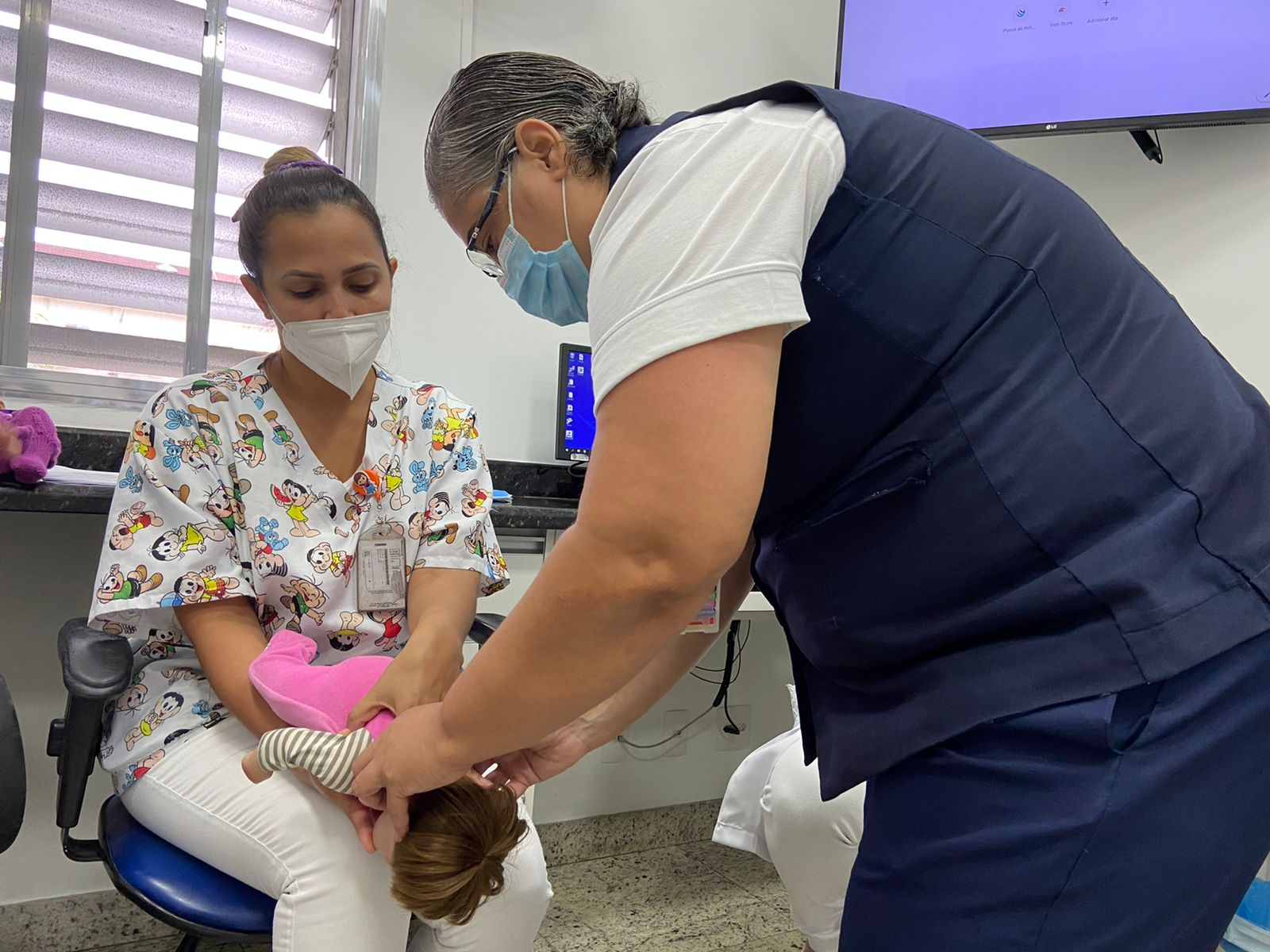 Objetivando promover a assistência de qualidade e manter a equipe de enfermagem sempre atualizada, o Serviço de Educação Continuada da Santa Casa de Santos iniciou esta semana o treinamento com a equipe da maternidade sobre as manobras de desengasgo.