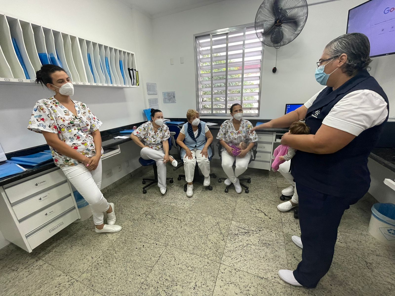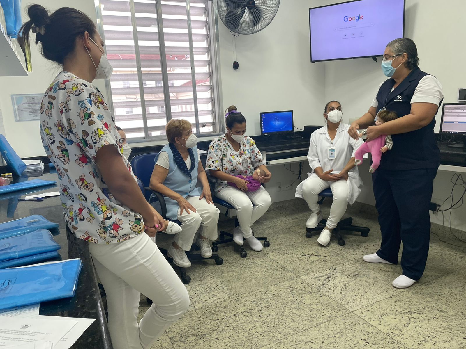 Serviço de Educação Continuada promove treinamento que visa orientar mães e responsáveis pelos recém-nascidos no momento da alta.