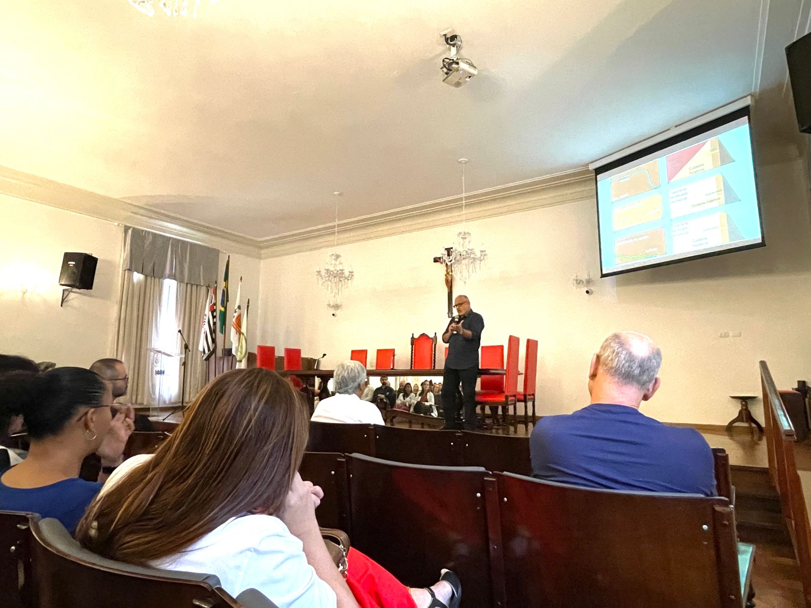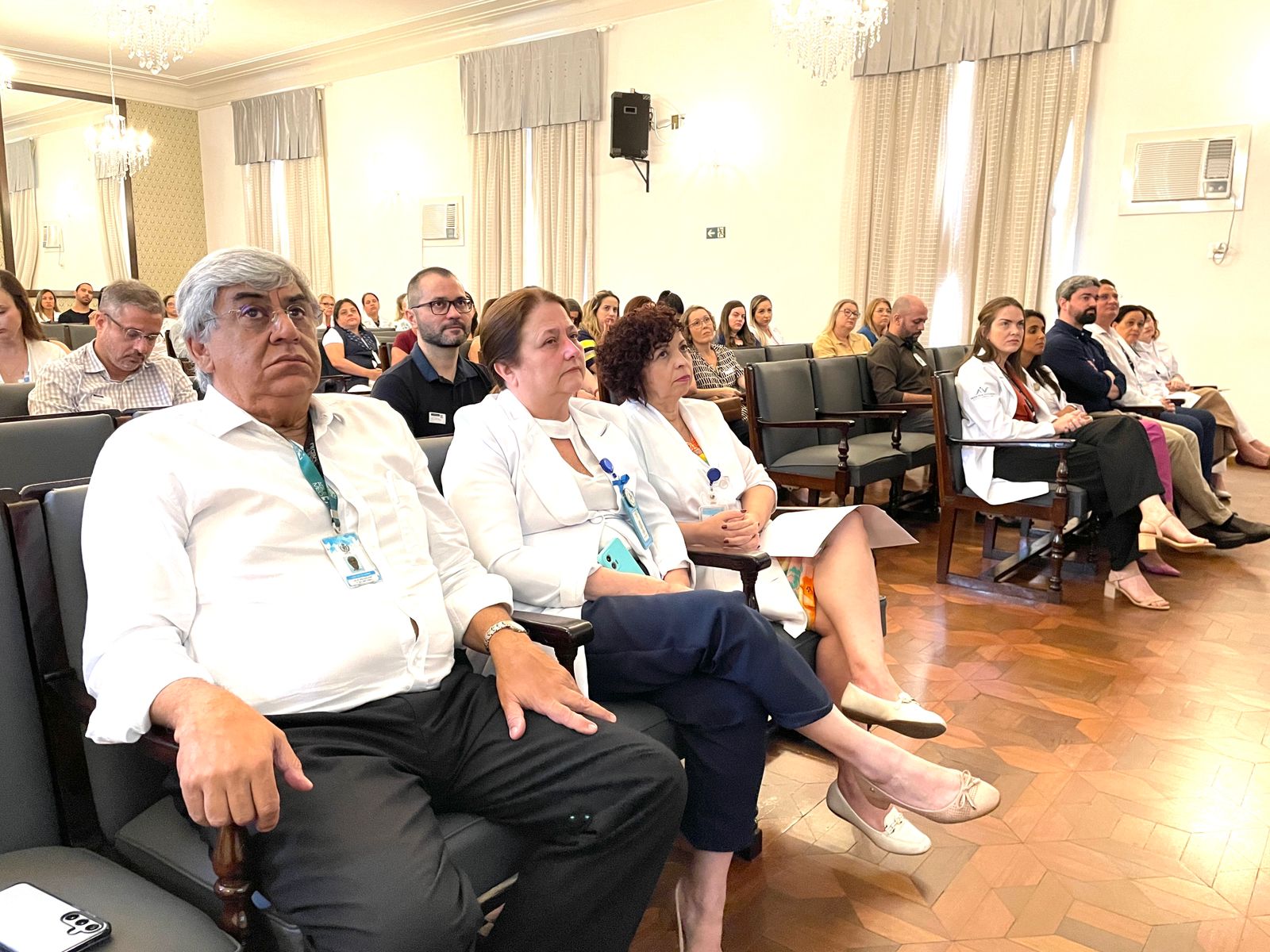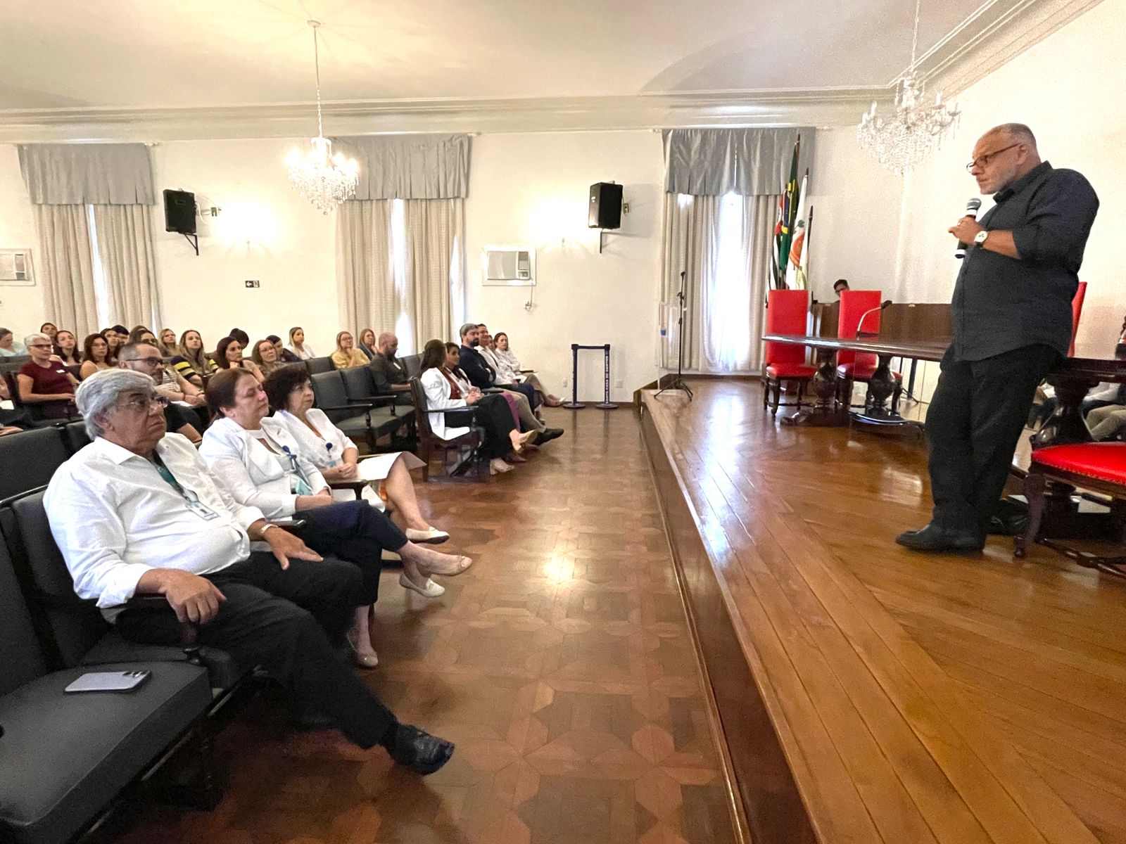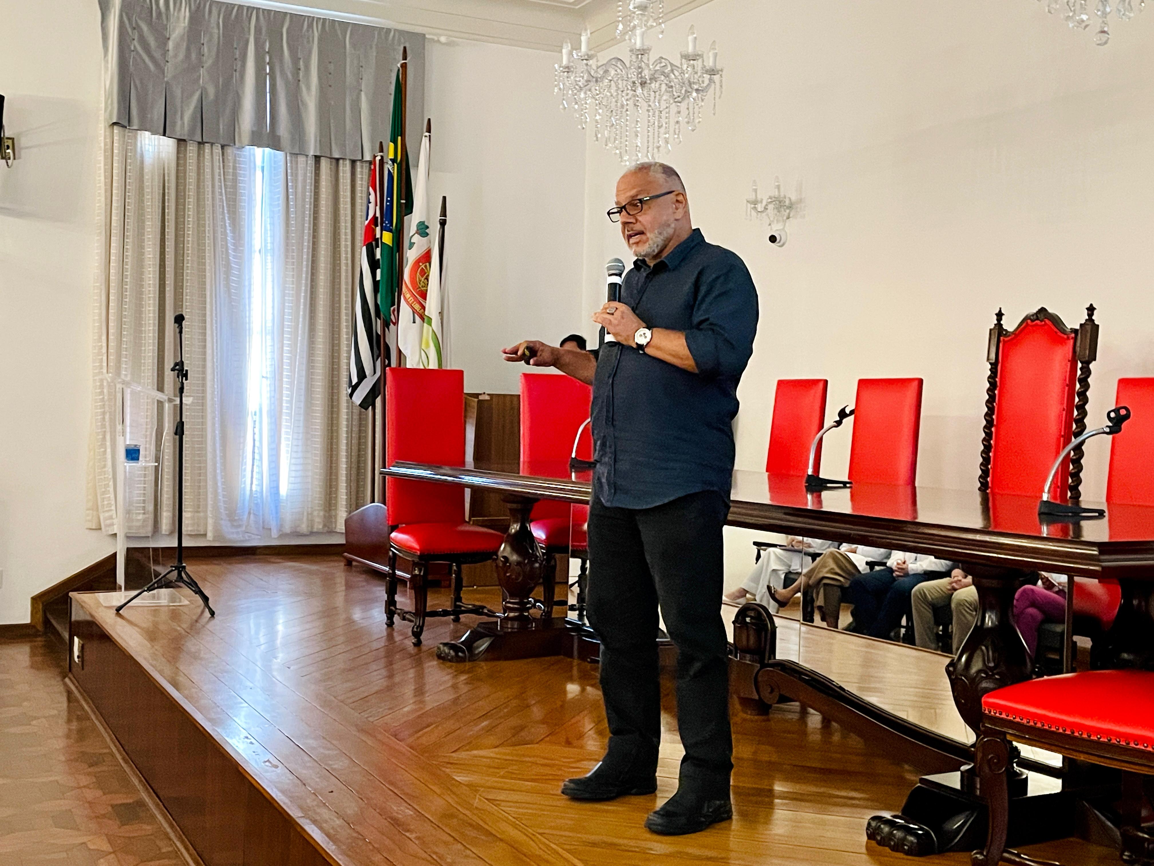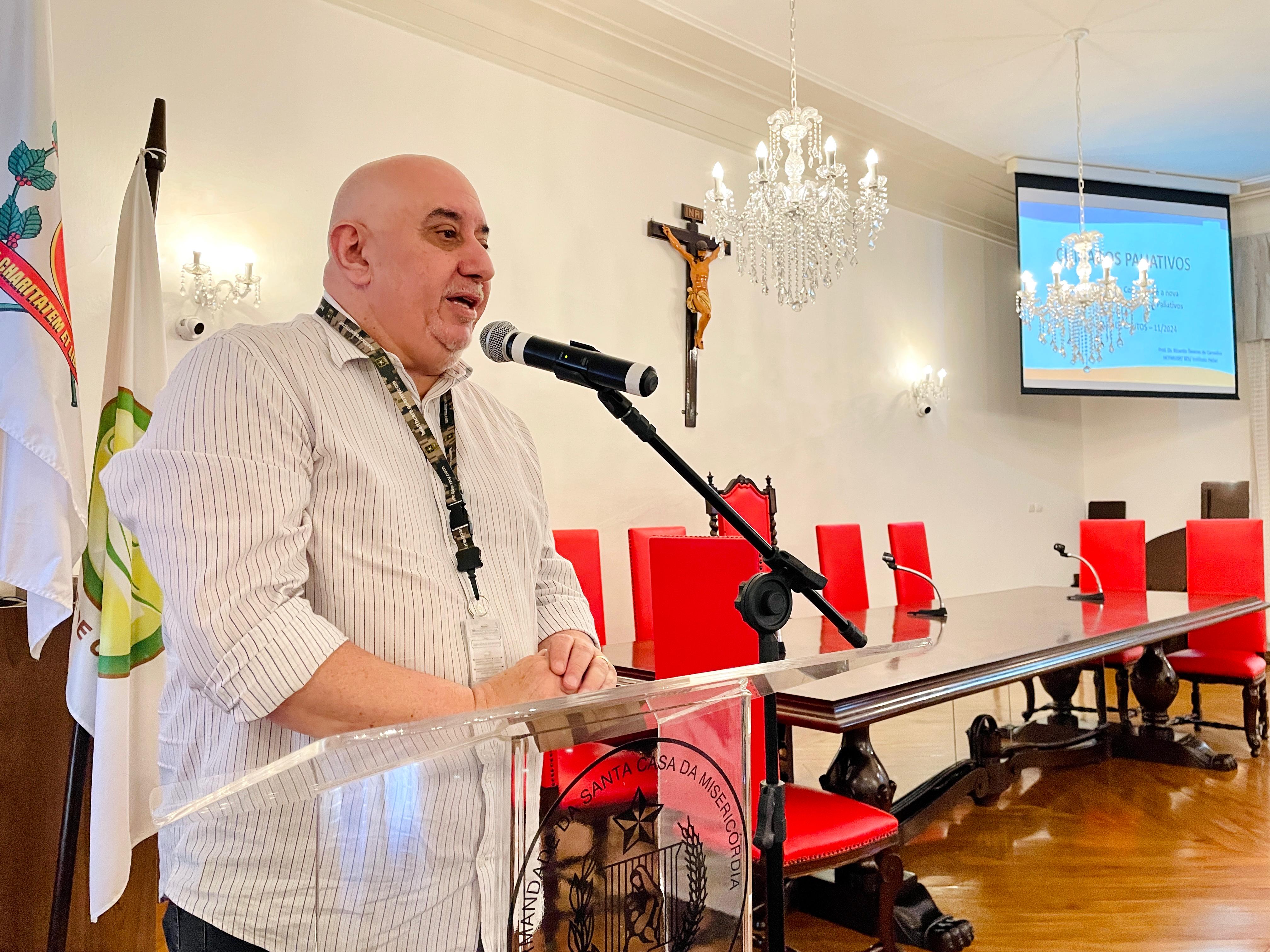 O vice provedor da Santa Casa e presidente da Câmara dos Vereadores de Santos, Carlos Teixeira Filho, fez a abertura oficial do evento e mencionou a Política Municipal de Cuidados Paliativos (Lei nº 4.465, de 11 de abril de 2024), que foi instituída a partir do Projeto de Lei Nº 89/2023 de sua autoria.