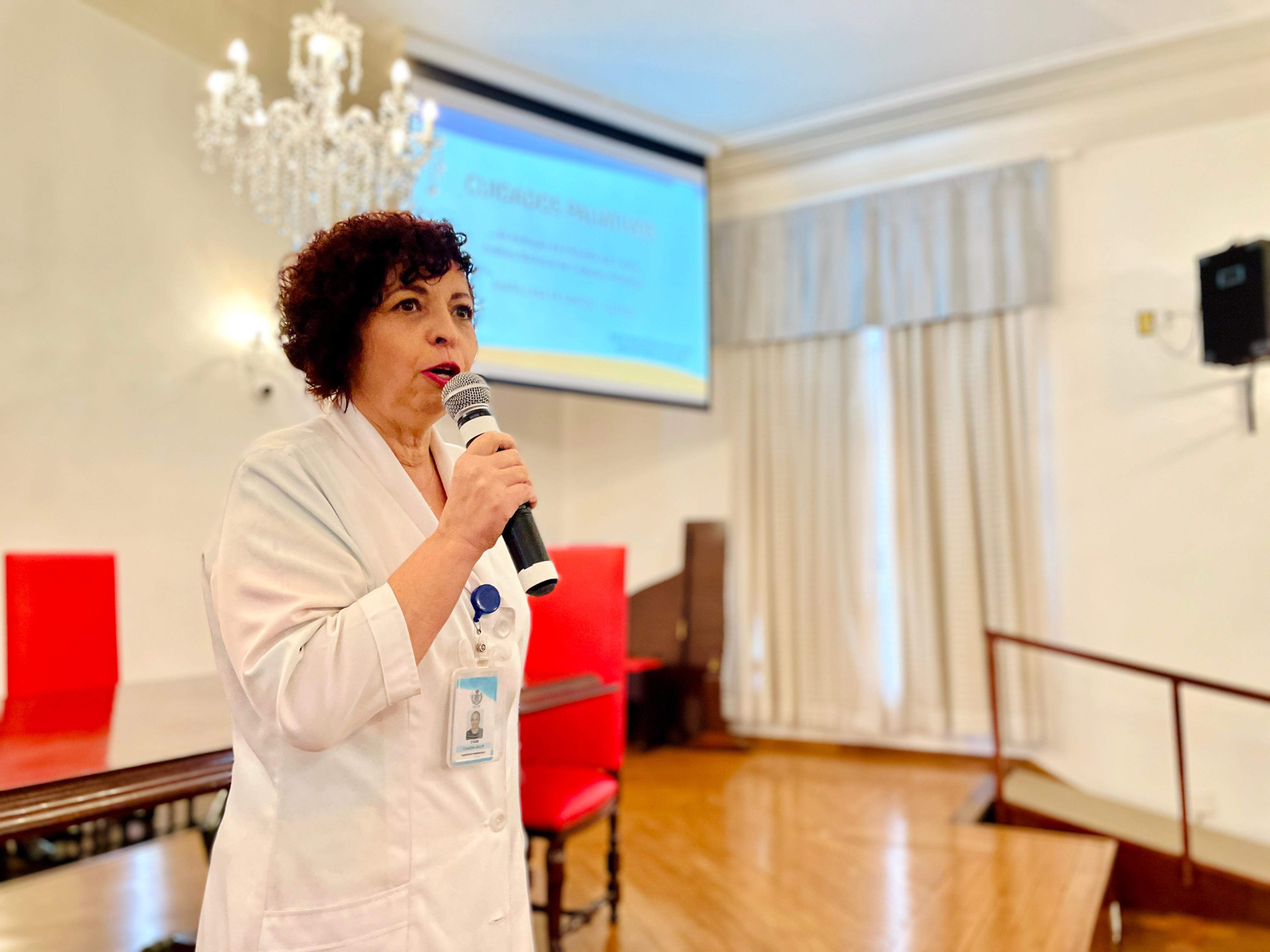 Em seguida, Cláudia Jacob, complementou a fala do Dr. Alex Macedo, lembrando que a equipe começou em 2008, que era um grupo de curiosos, que estudavam os cuidados paliativos.