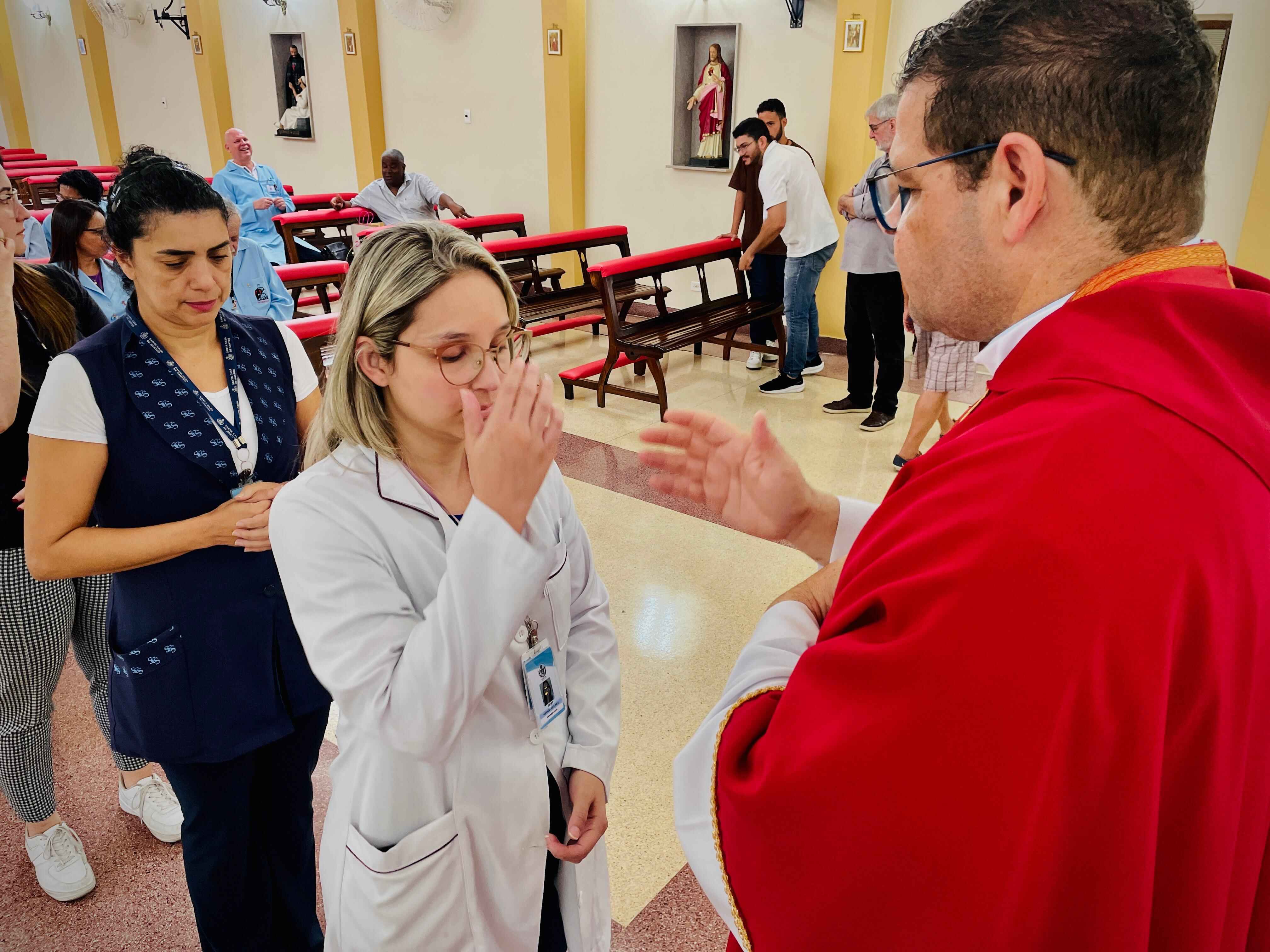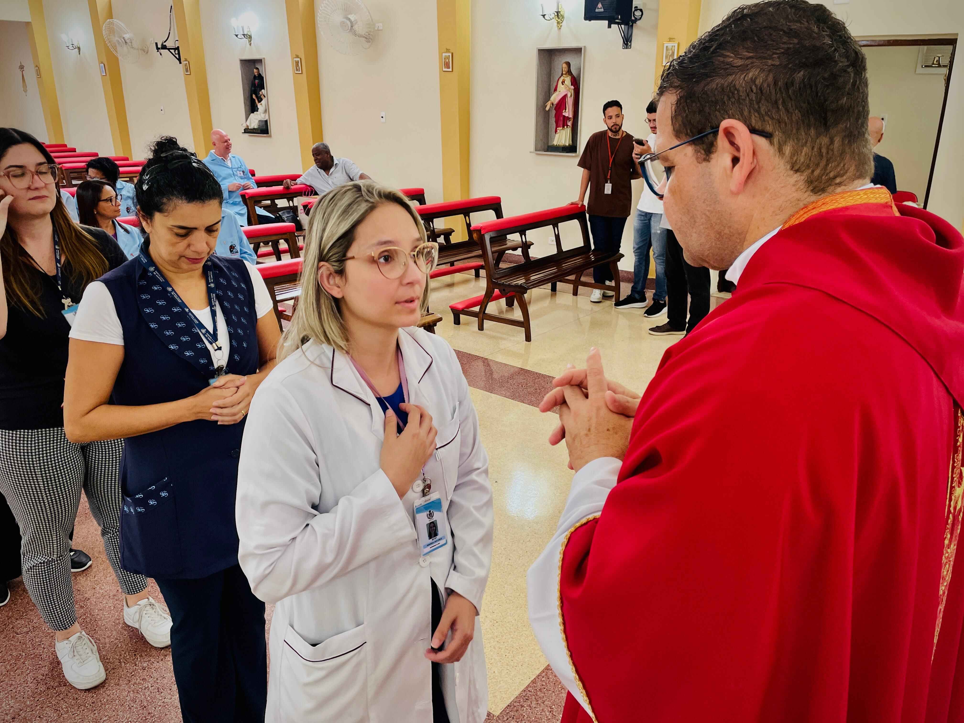 Celebração destacou os trabalhos dos colaboradores do hospital e voluntários da Pastoral da Saúde, e também lembrou o Dia de Santa Luzia com a Bênção dos Olhos.