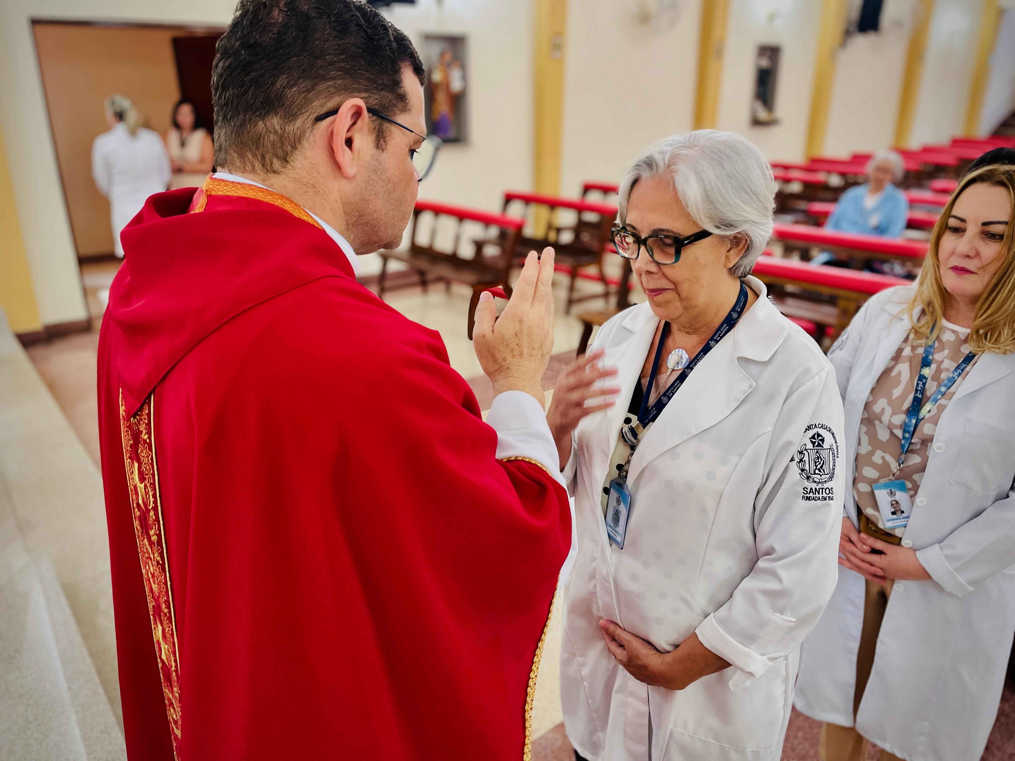 No dia 13/12, às 11h30, na Capela Santa Isabel, o Padre Denilson celebrou a Missa em Ação de Graças pelo ano de 2024 e pelos trabalhos dos colaboradores da Santa Casa de Santos e voluntários da Pastoral da Saúde.