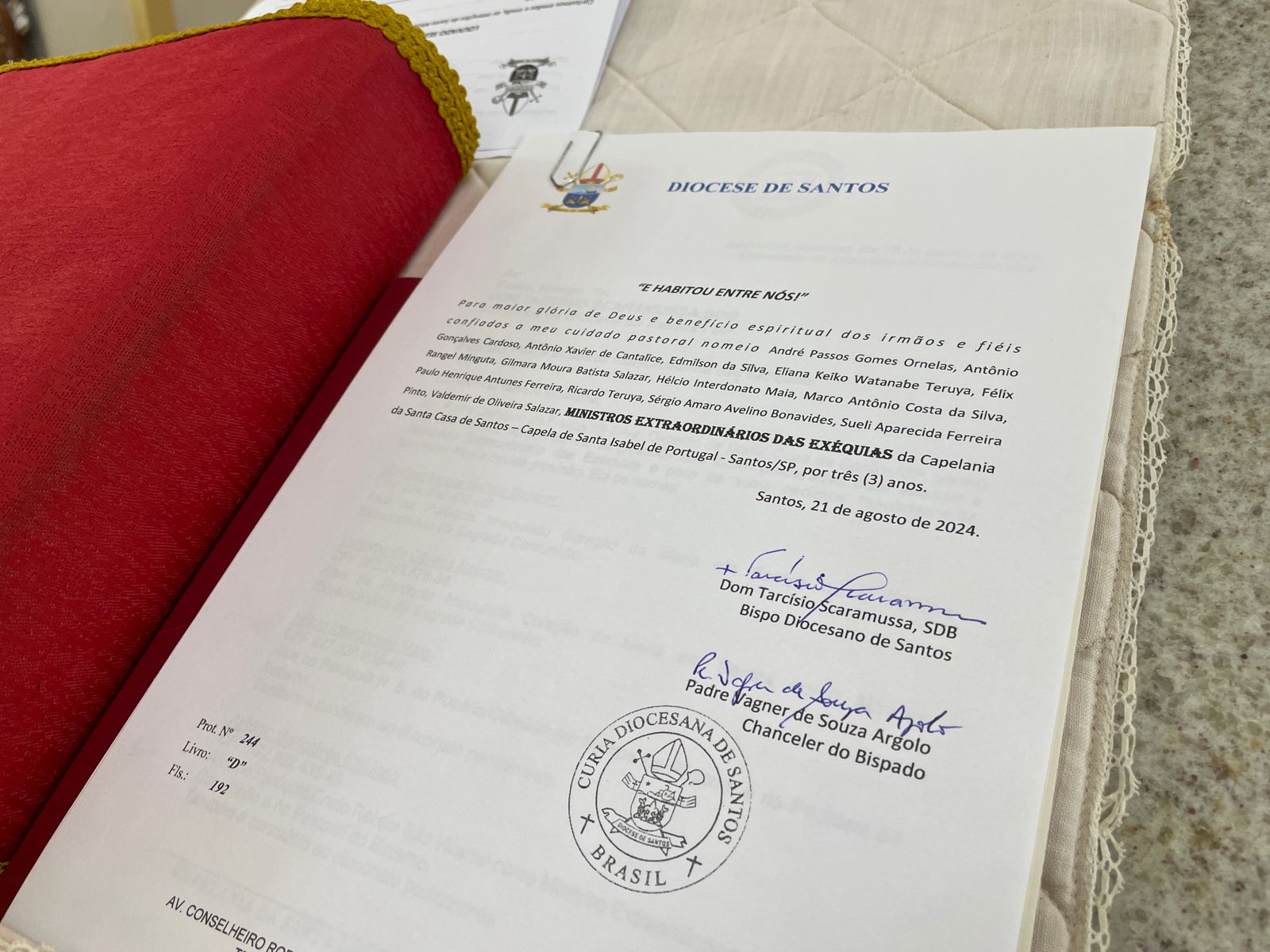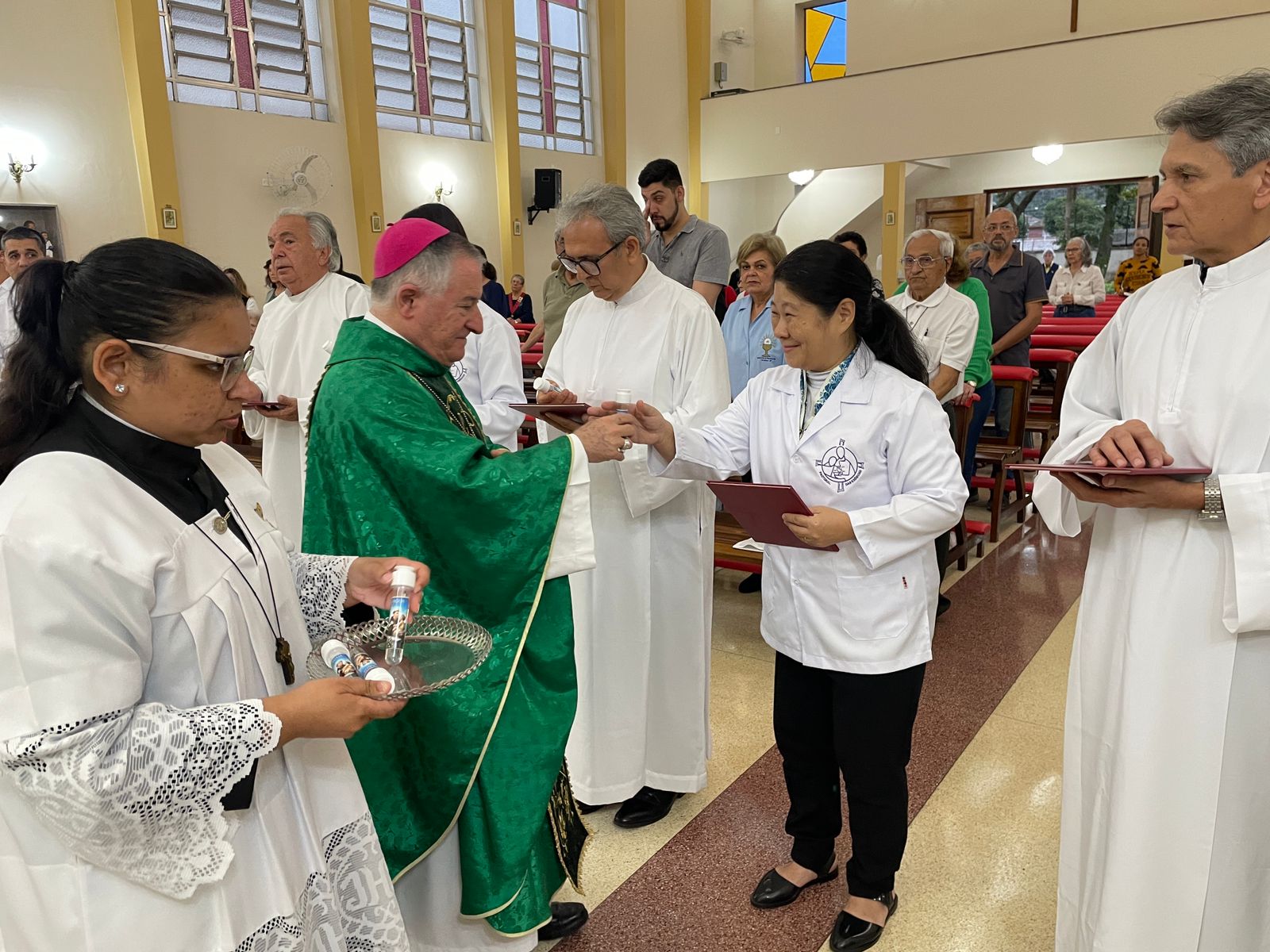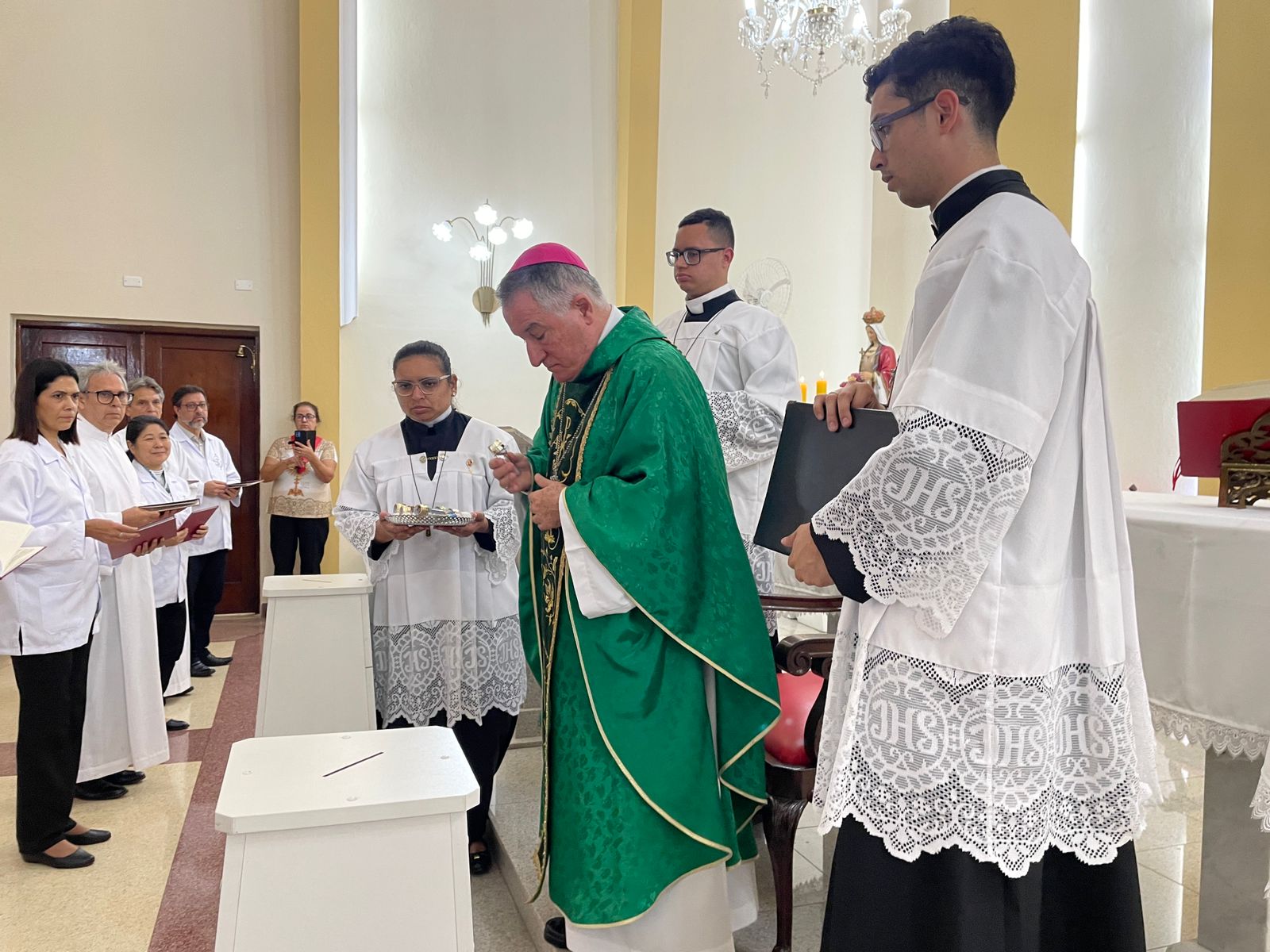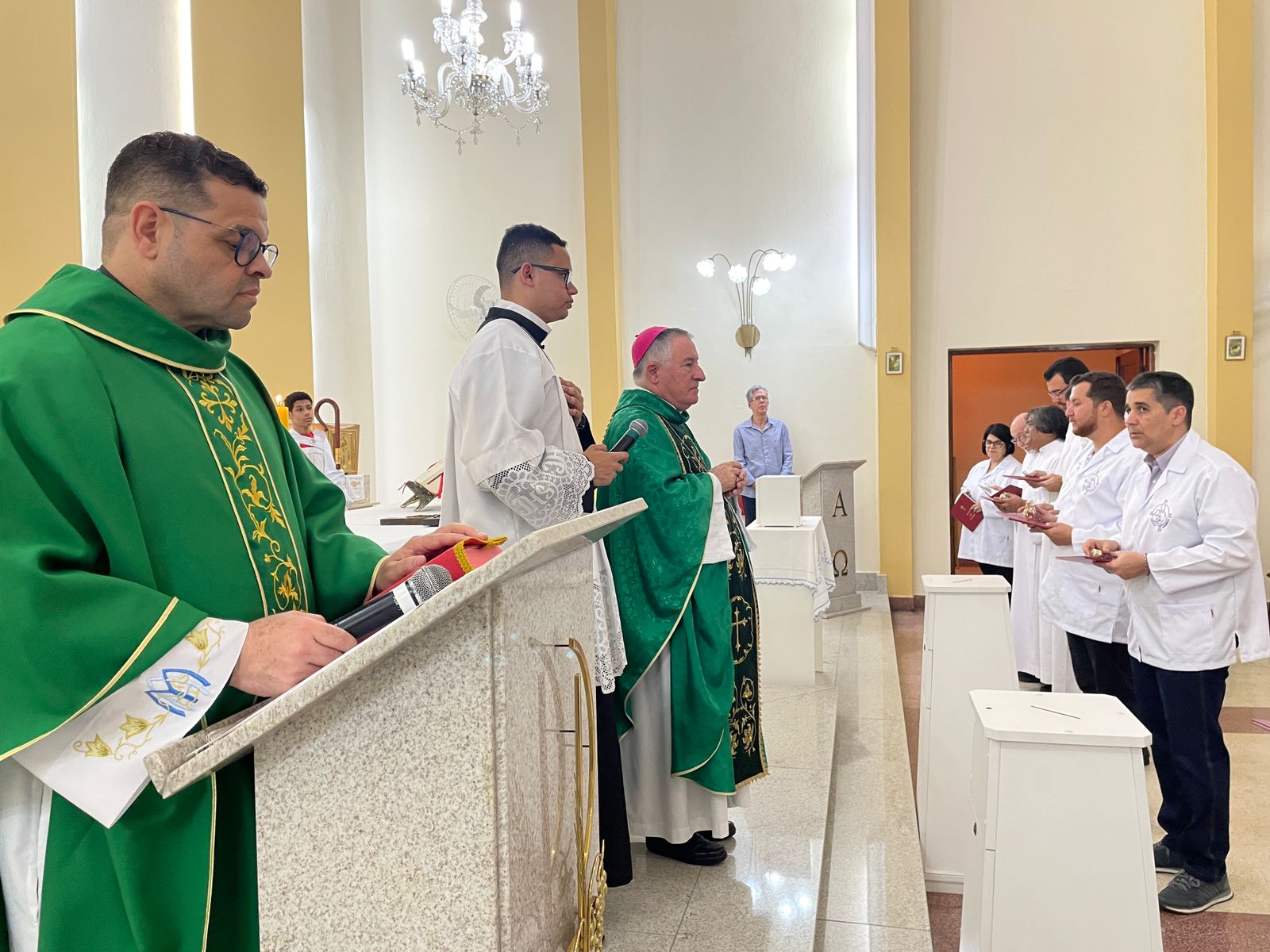 No último sábado, dia 21 de setembro, às 17 horas, a Capela Santa Isabel da Santa Casa de Santos, celebrou a Missa para o Mandato dos Ministros Extraordinários das Exéquias para o Serviço de Luto do hospital. A cerimônia foi presidida por Dom Tarcísio Scaramussa,SDB, Bispo Diocesano de Santos, ao lado do Capelão da Santa Casa, Padre Denilson. O vice provedor da Irmandade, Carlos Teixeira Filho e o Gerente de Obras e Infraestrutura, Bruno Dantas, marcaram presença.