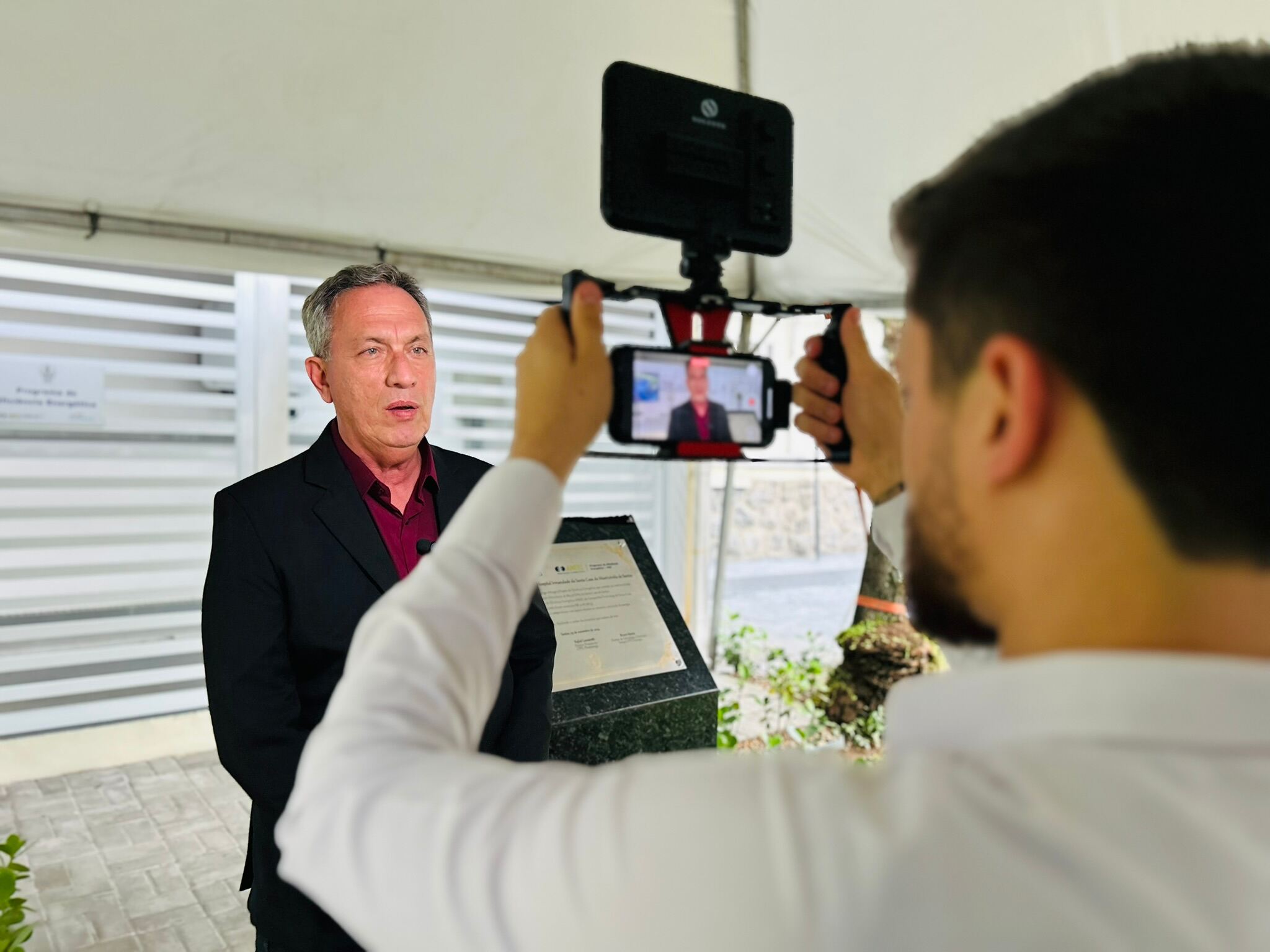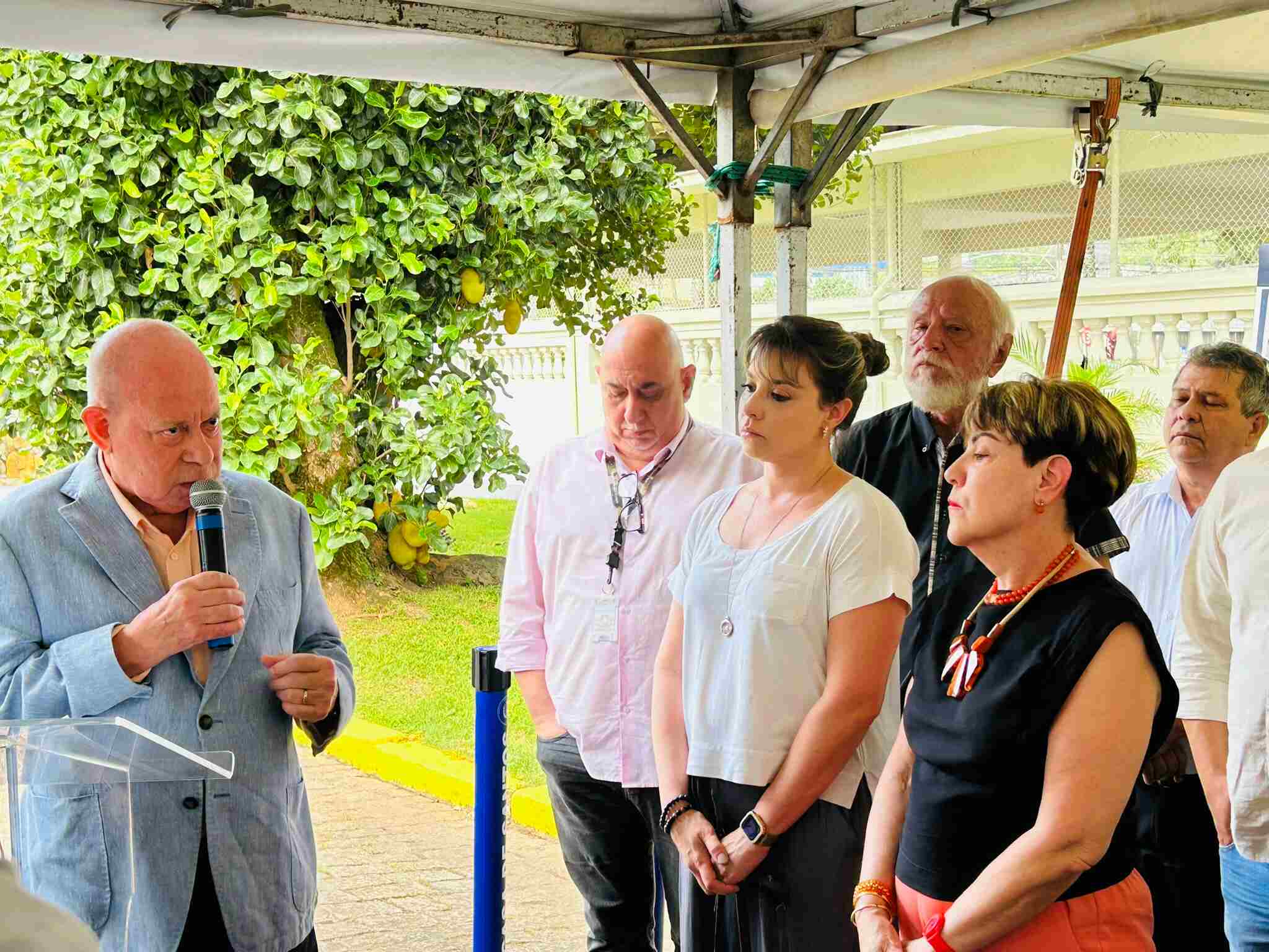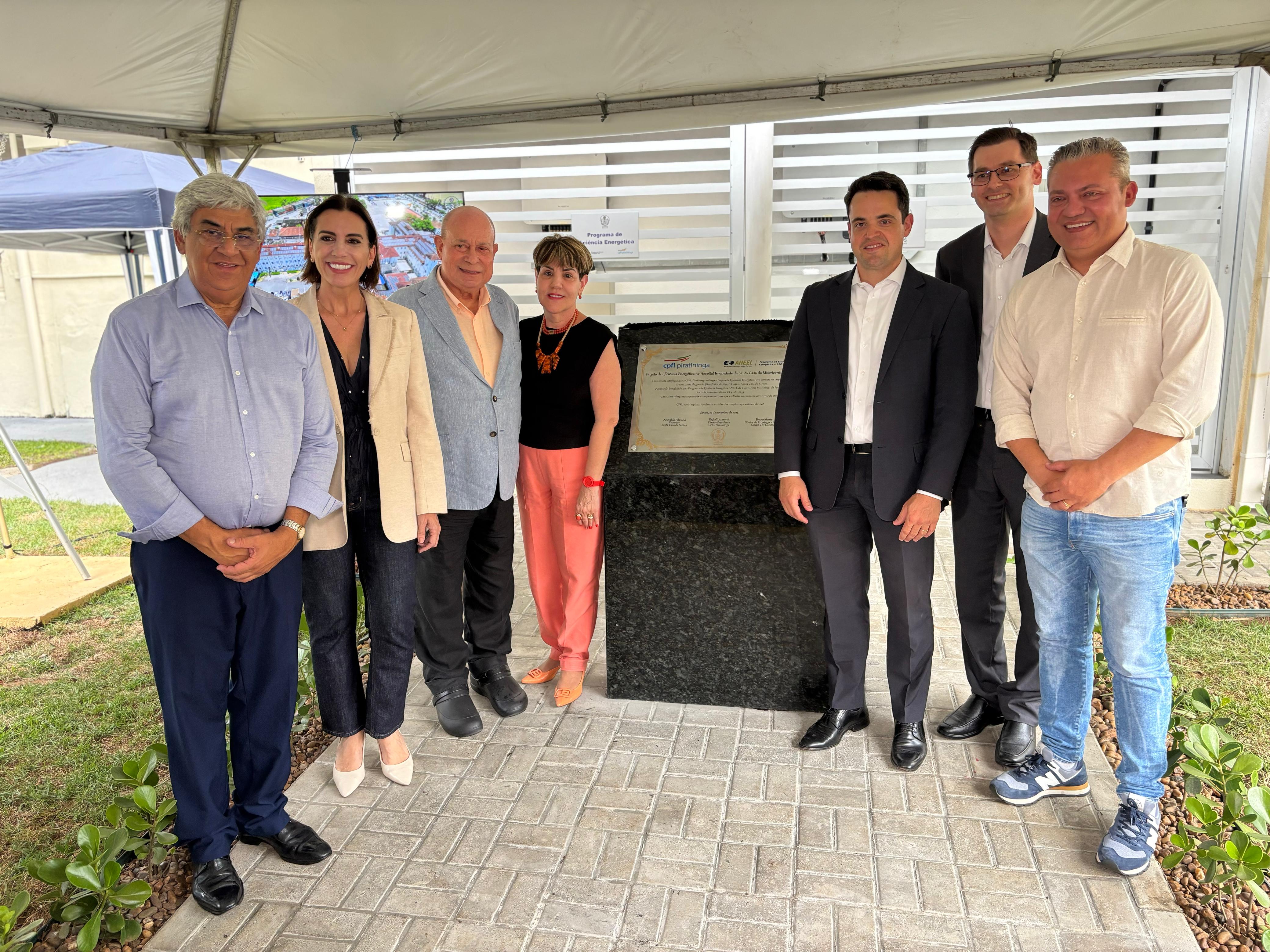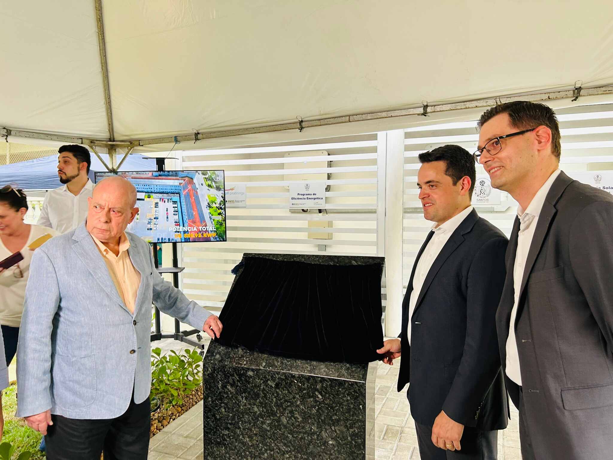 Houve descerramento da placa instalada em frente à cabine de inversores, para marcar o novo momento da instituição, mais uma vez pioneira em projetos tecnológicos e sustentáveis no Litoral Paulista.