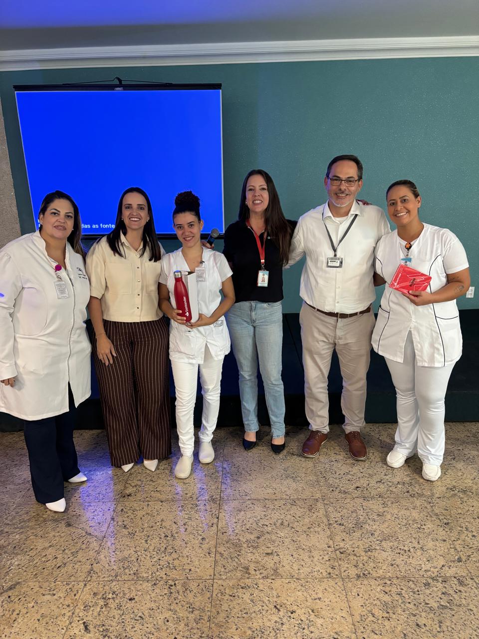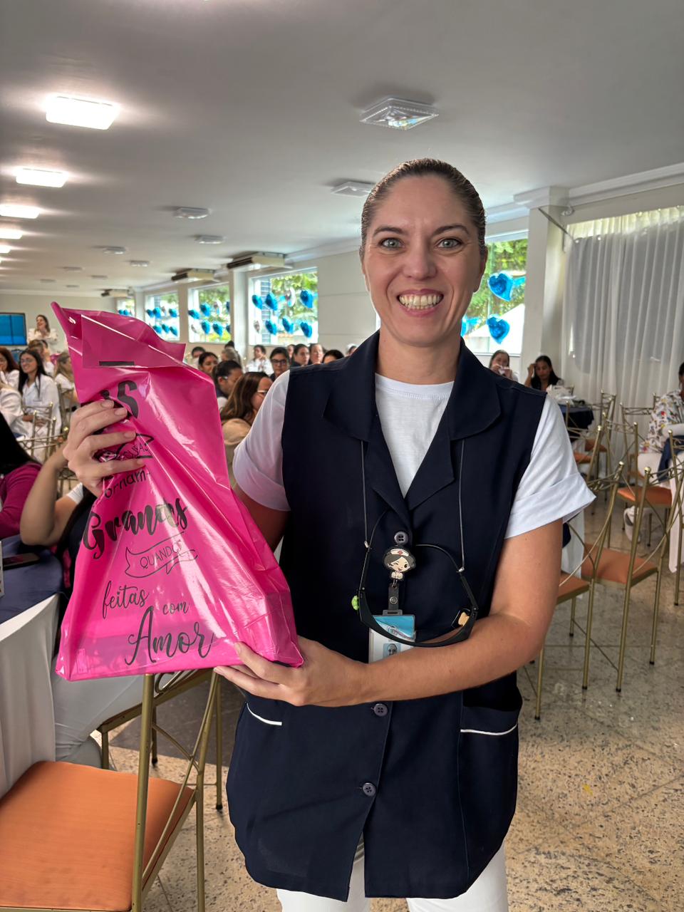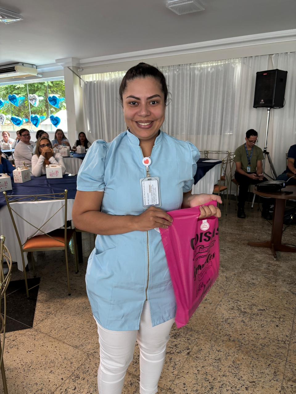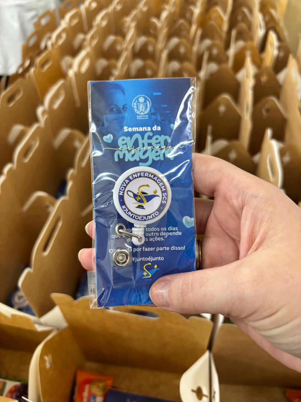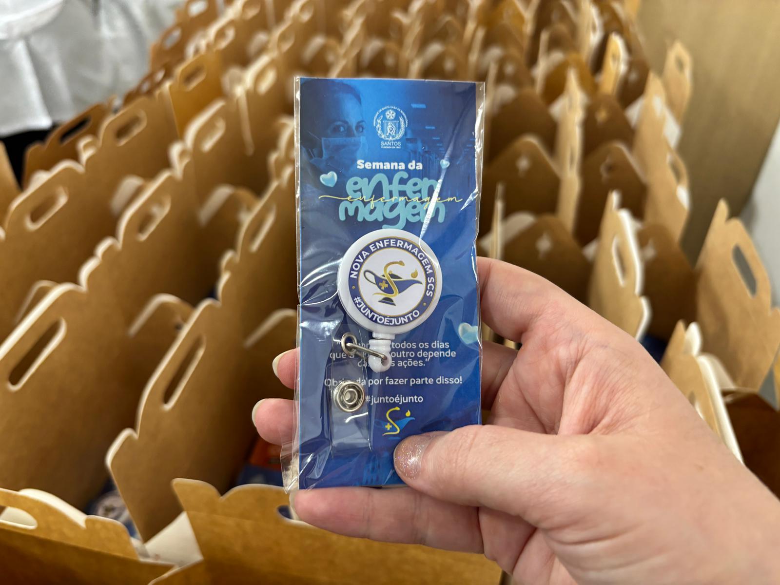 Também foram sorteados diversos brindes e os colaboradores receberam uma caixa com lanche e um porta crachá especial da Semana da Enfermagem.