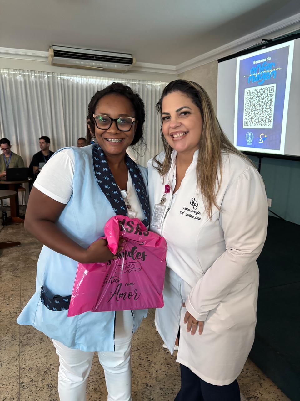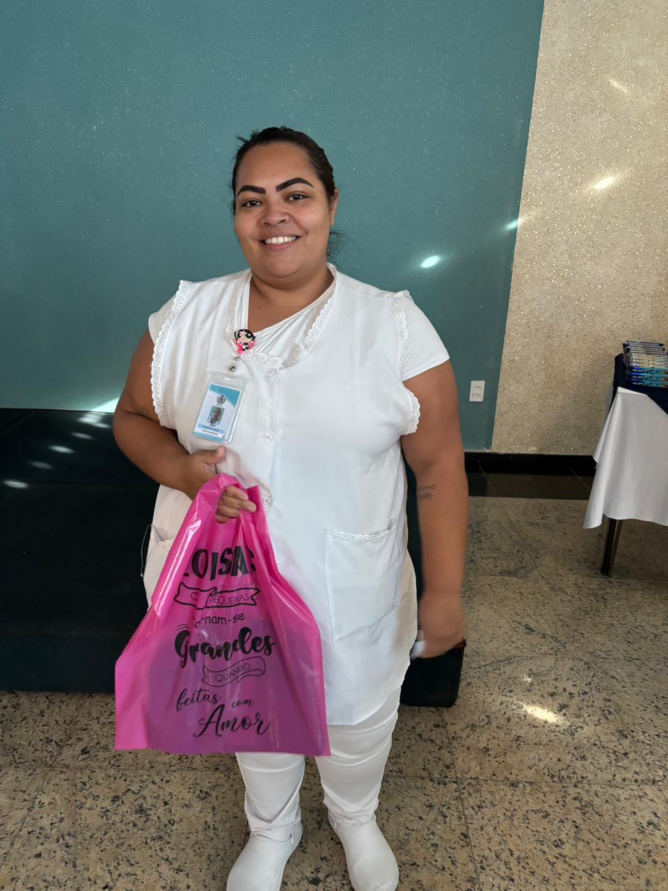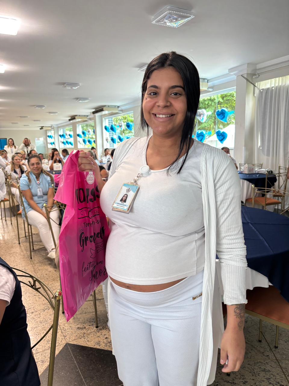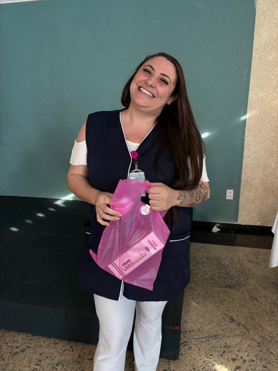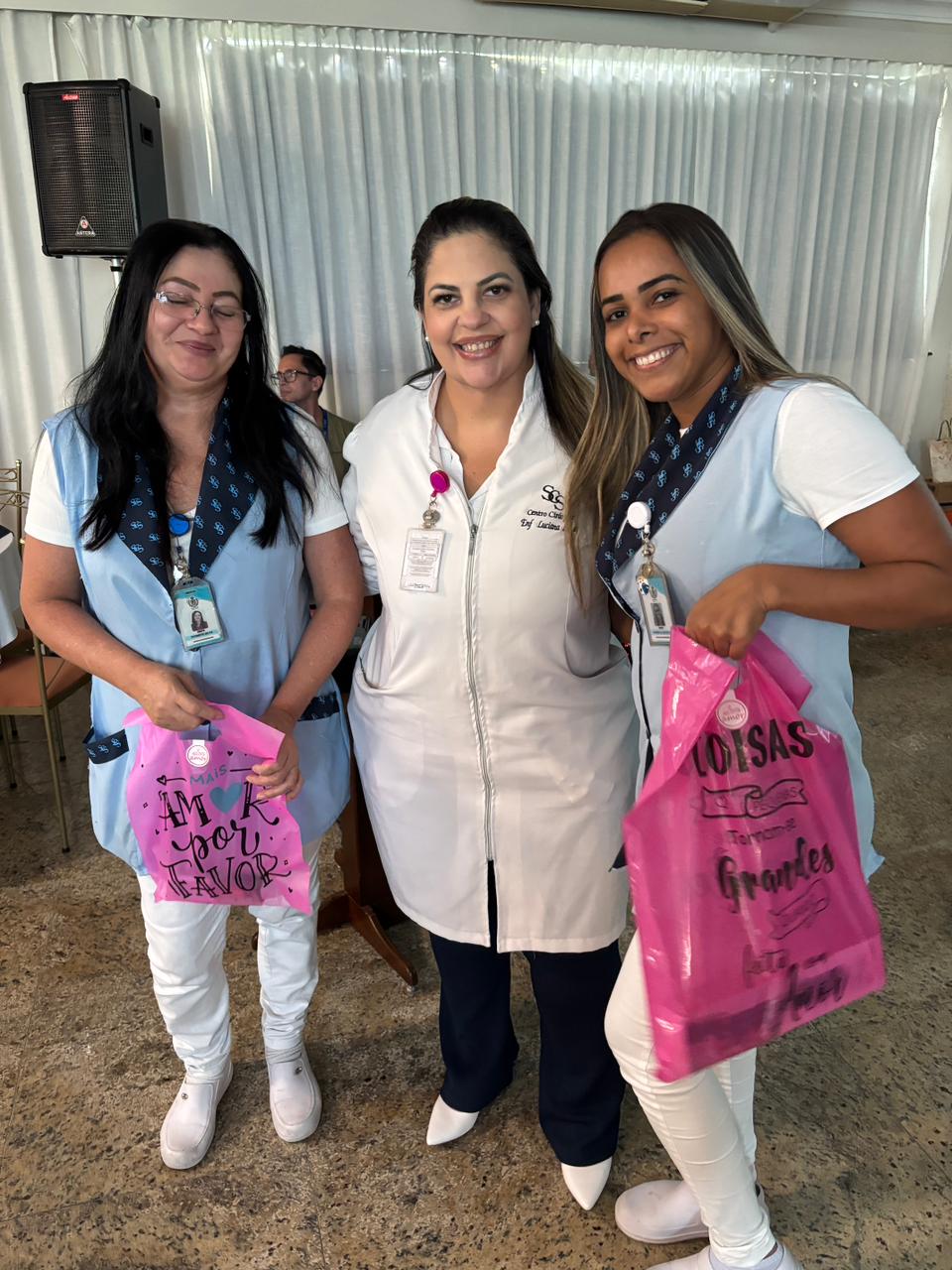 Também foram sorteados diversos brindes e os colaboradores receberam uma caixa com lanche e um porta crachá especial da Semana da Enfermagem.