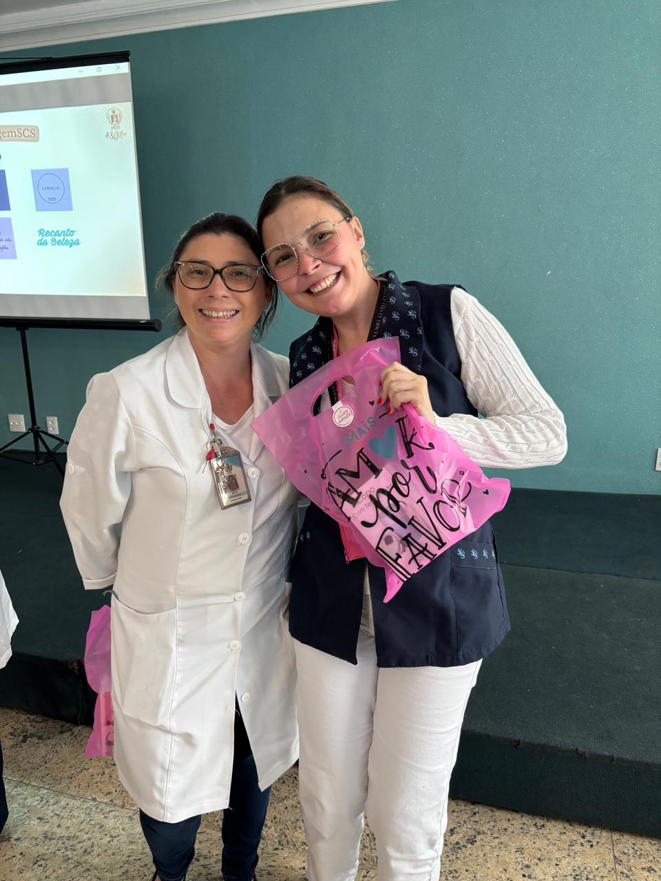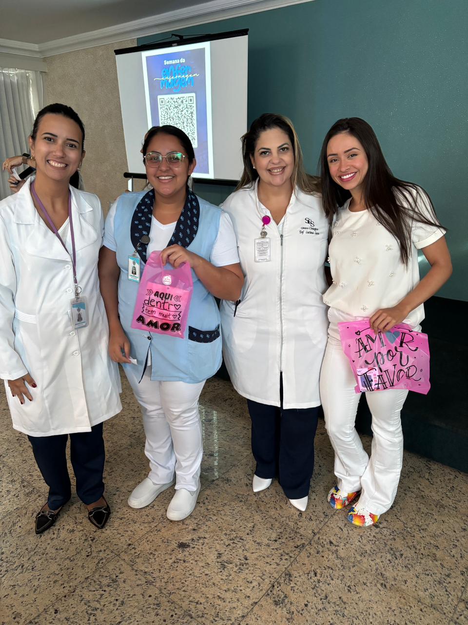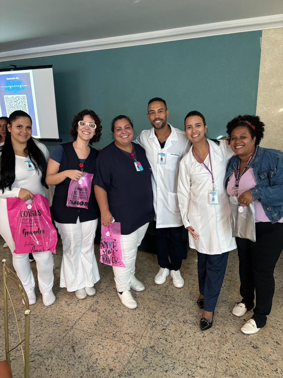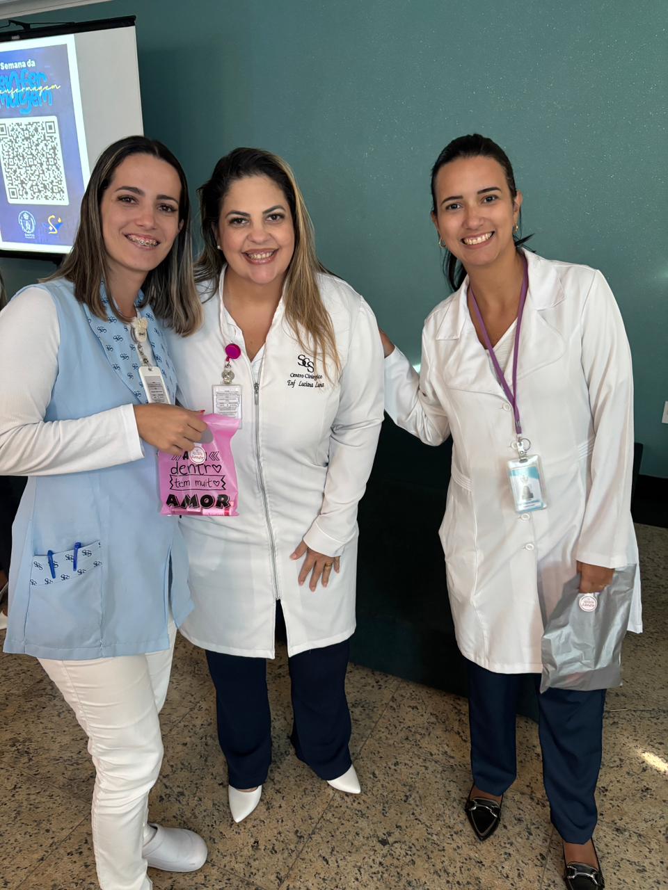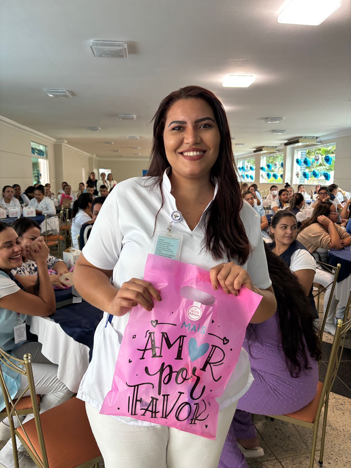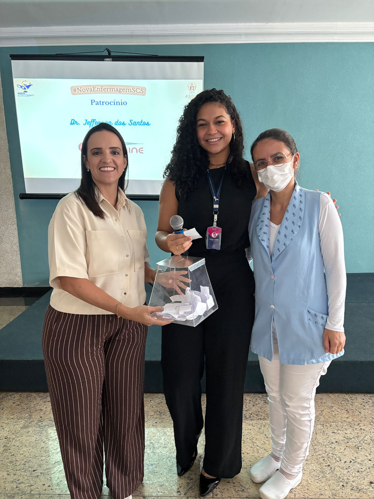 Também foram sorteados diversos brindes e os colaboradores receberam uma caixa com lanche e um porta crachá especial da Semana da Enfermagem.