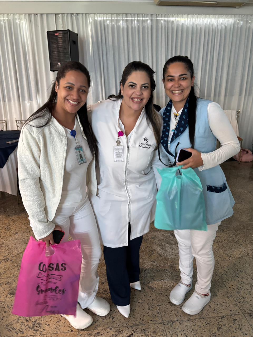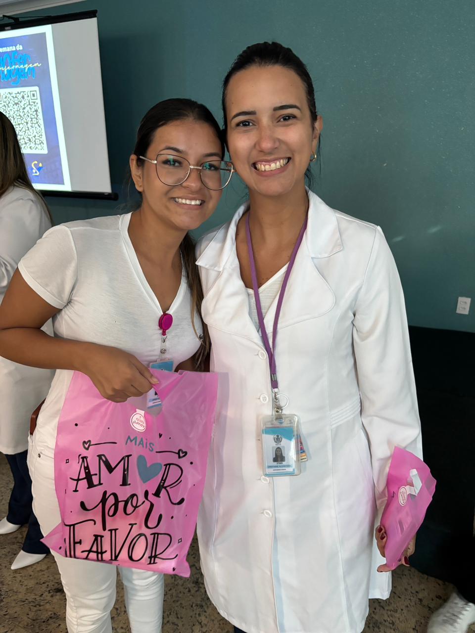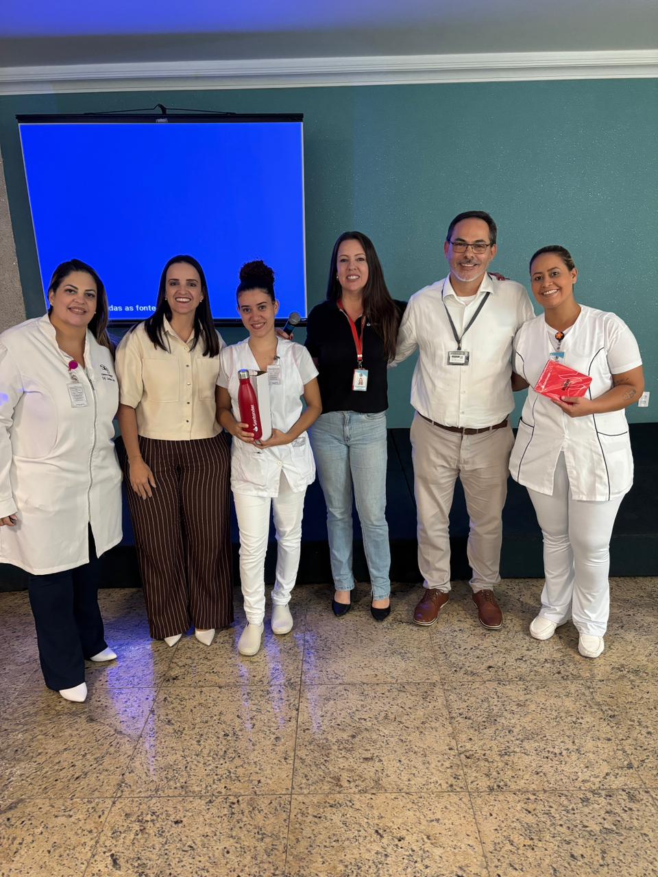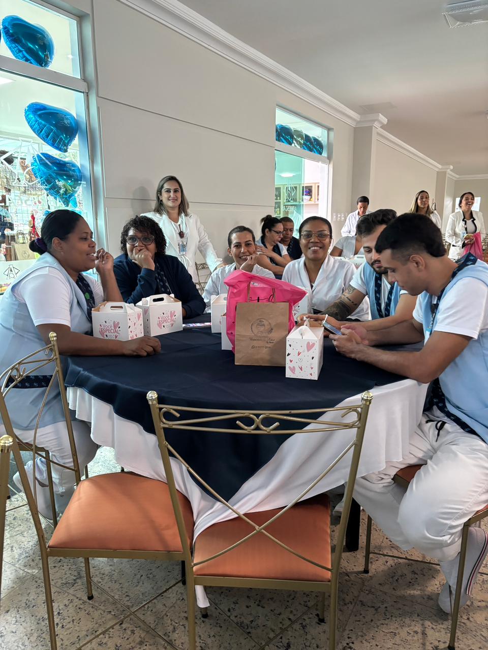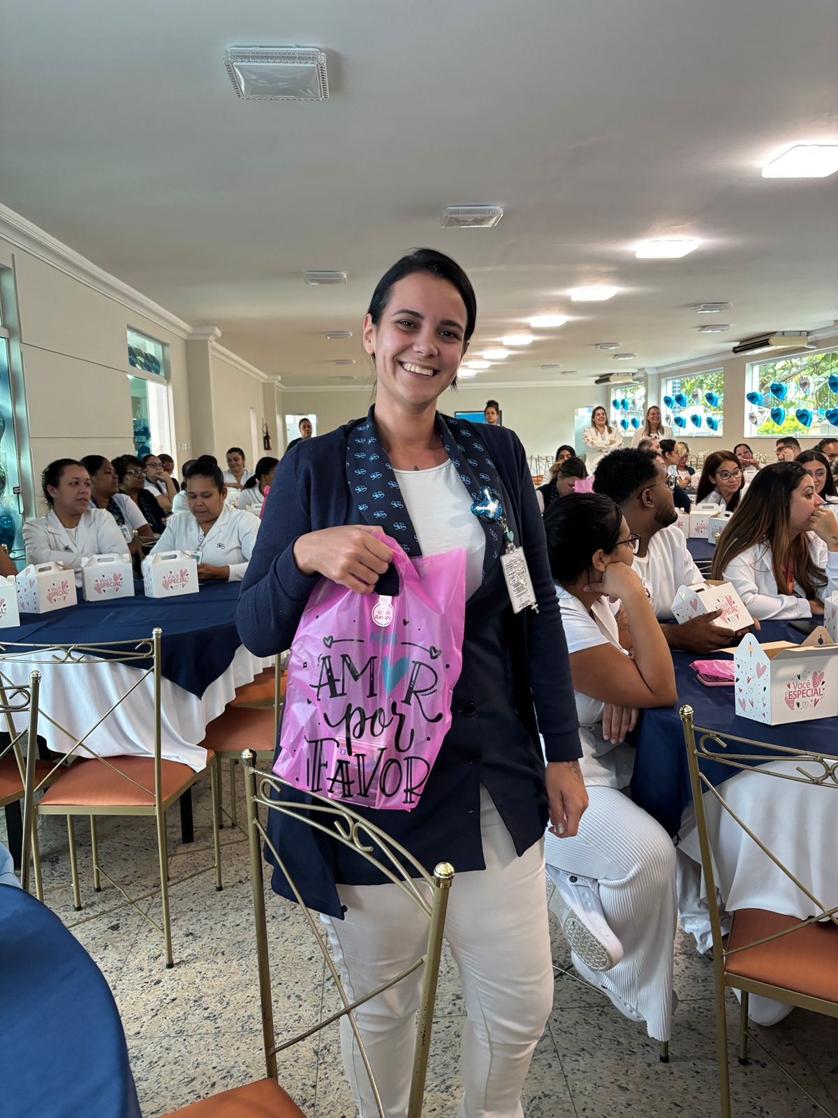 Também foram sorteados diversos brindes e os colaboradores receberam uma caixa com lanche e um porta crachá especial da Semana da Enfermagem.