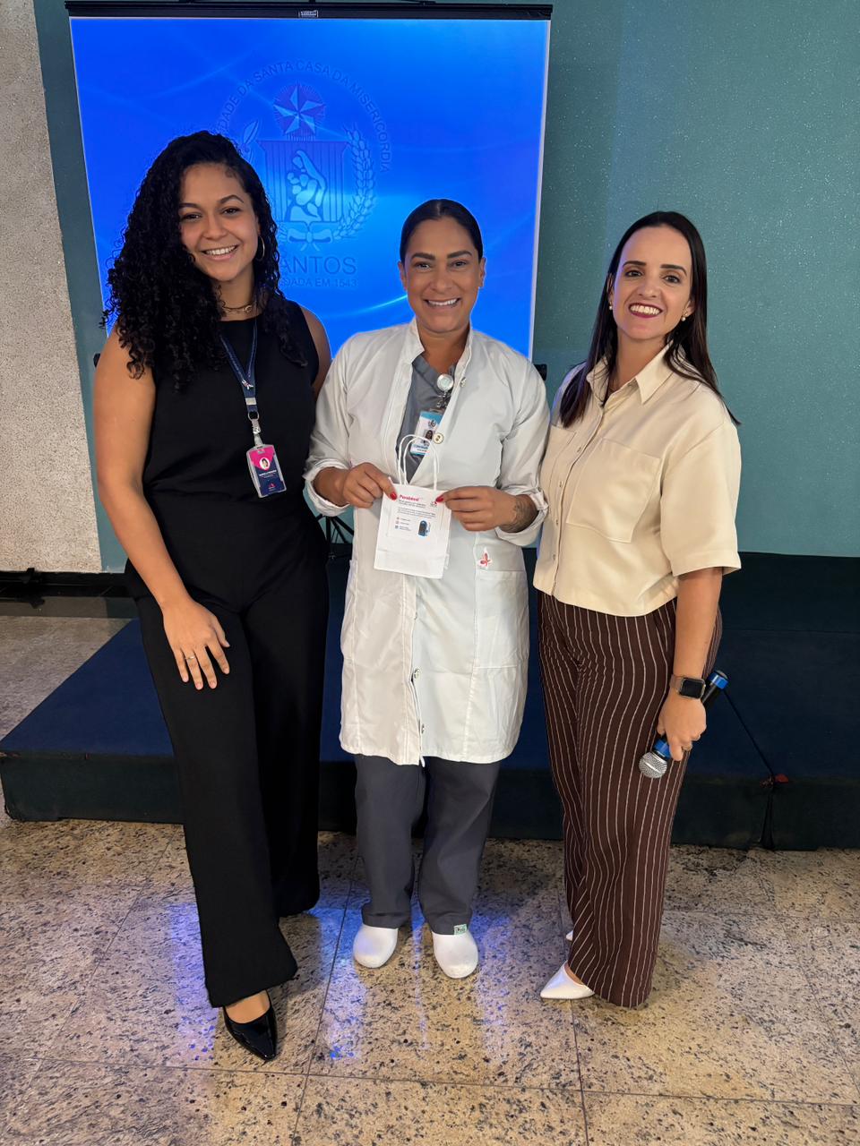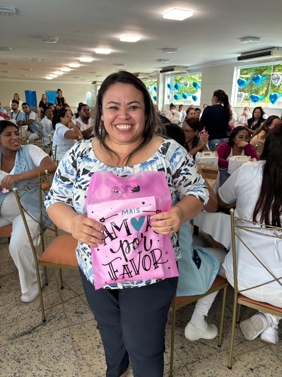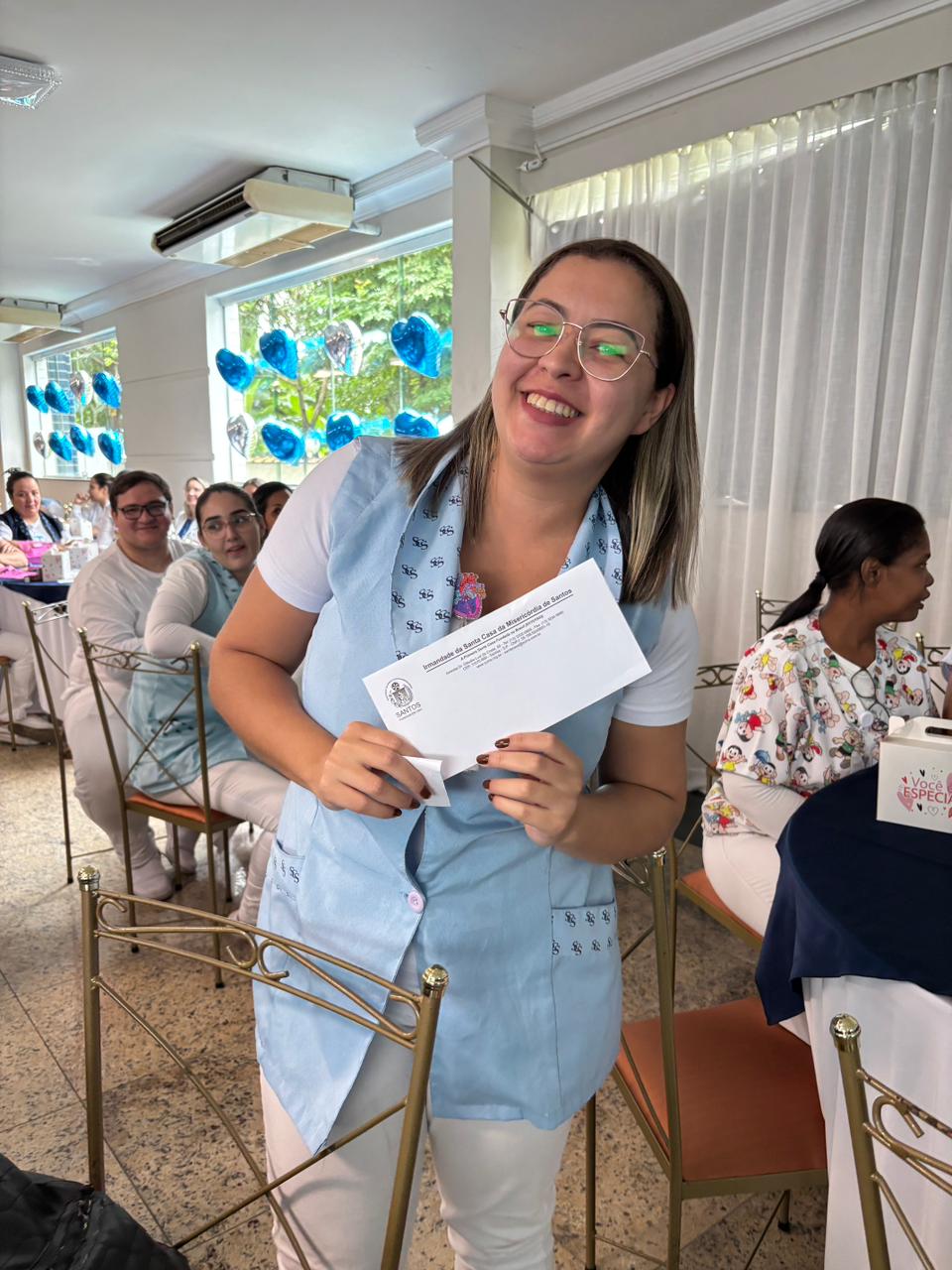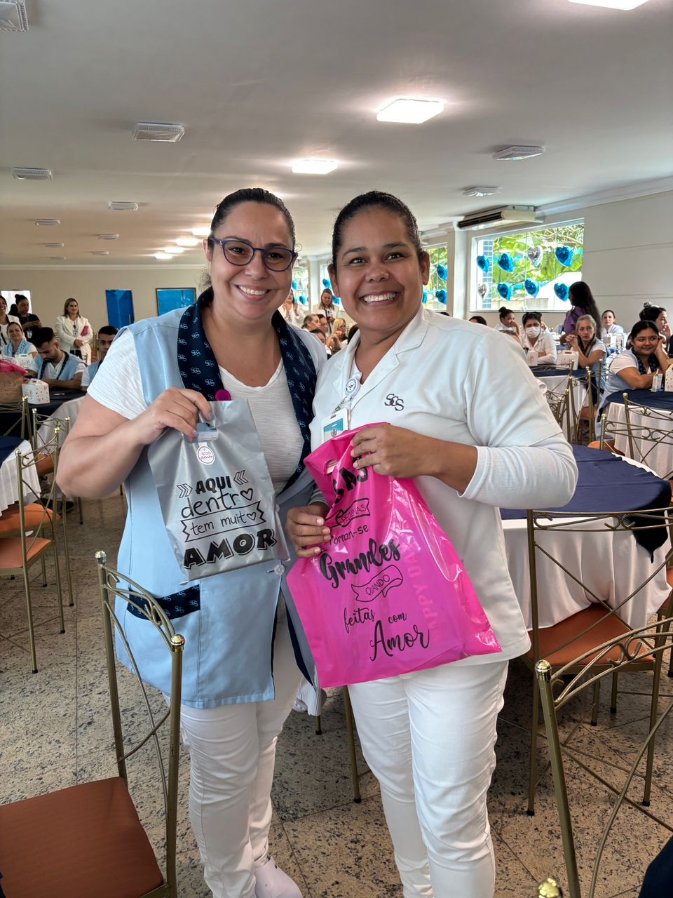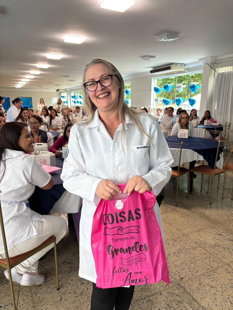 Também foram sorteados diversos brindes e os colaboradores receberam uma caixa com lanche e um porta crachá especial da Semana da Enfermagem.