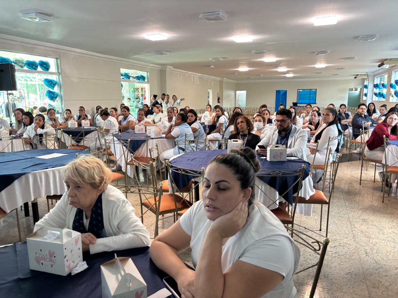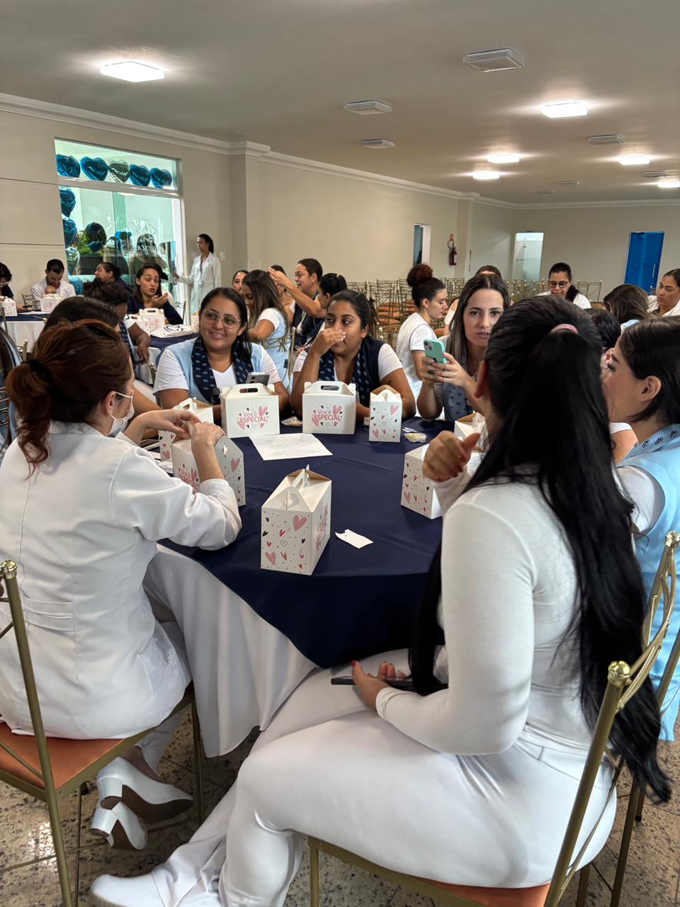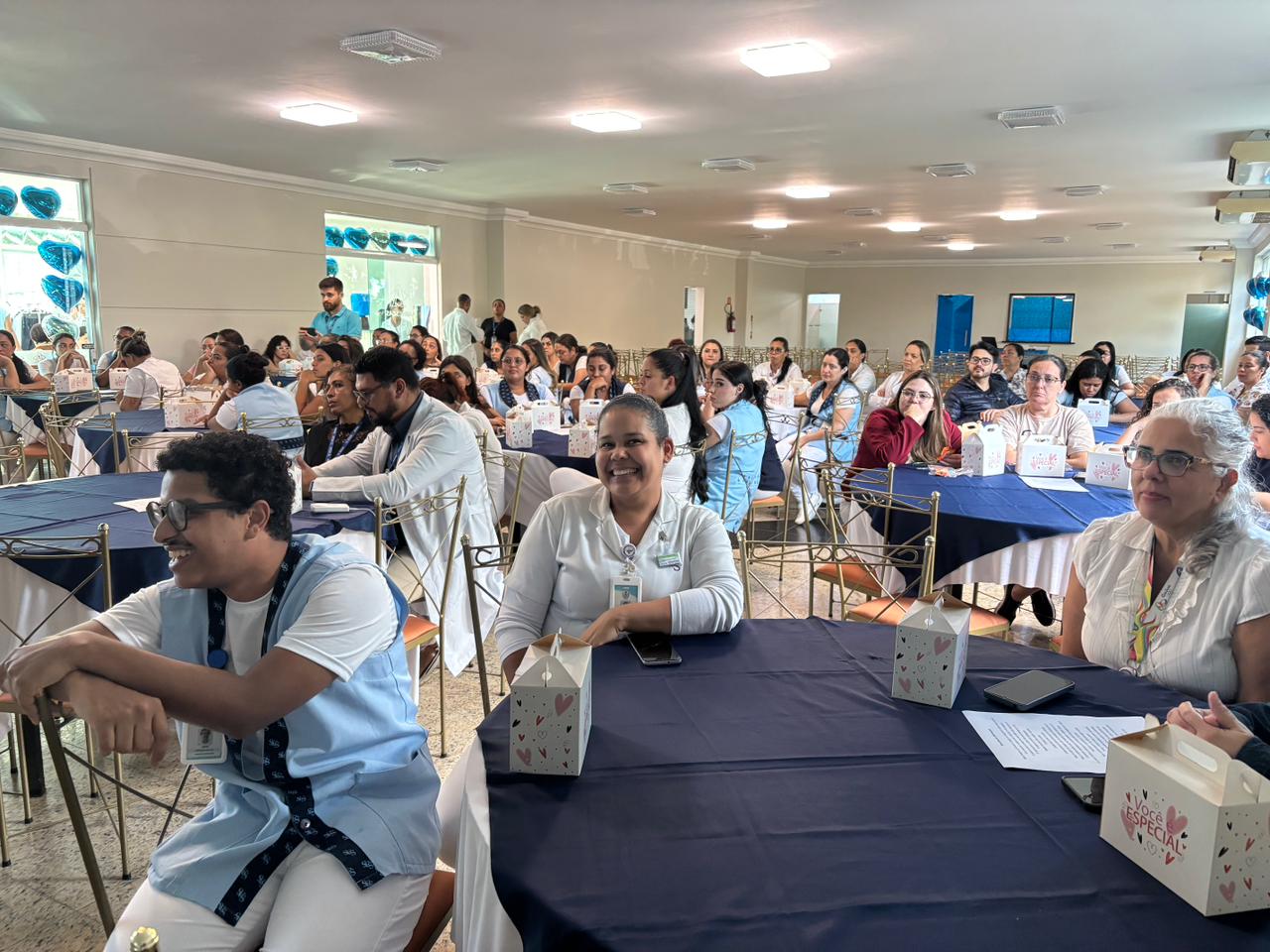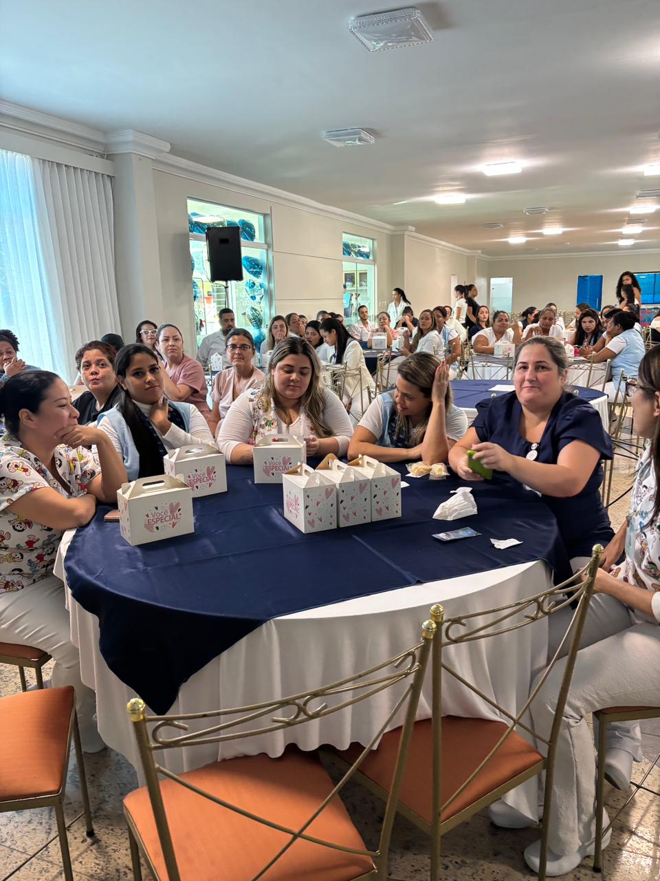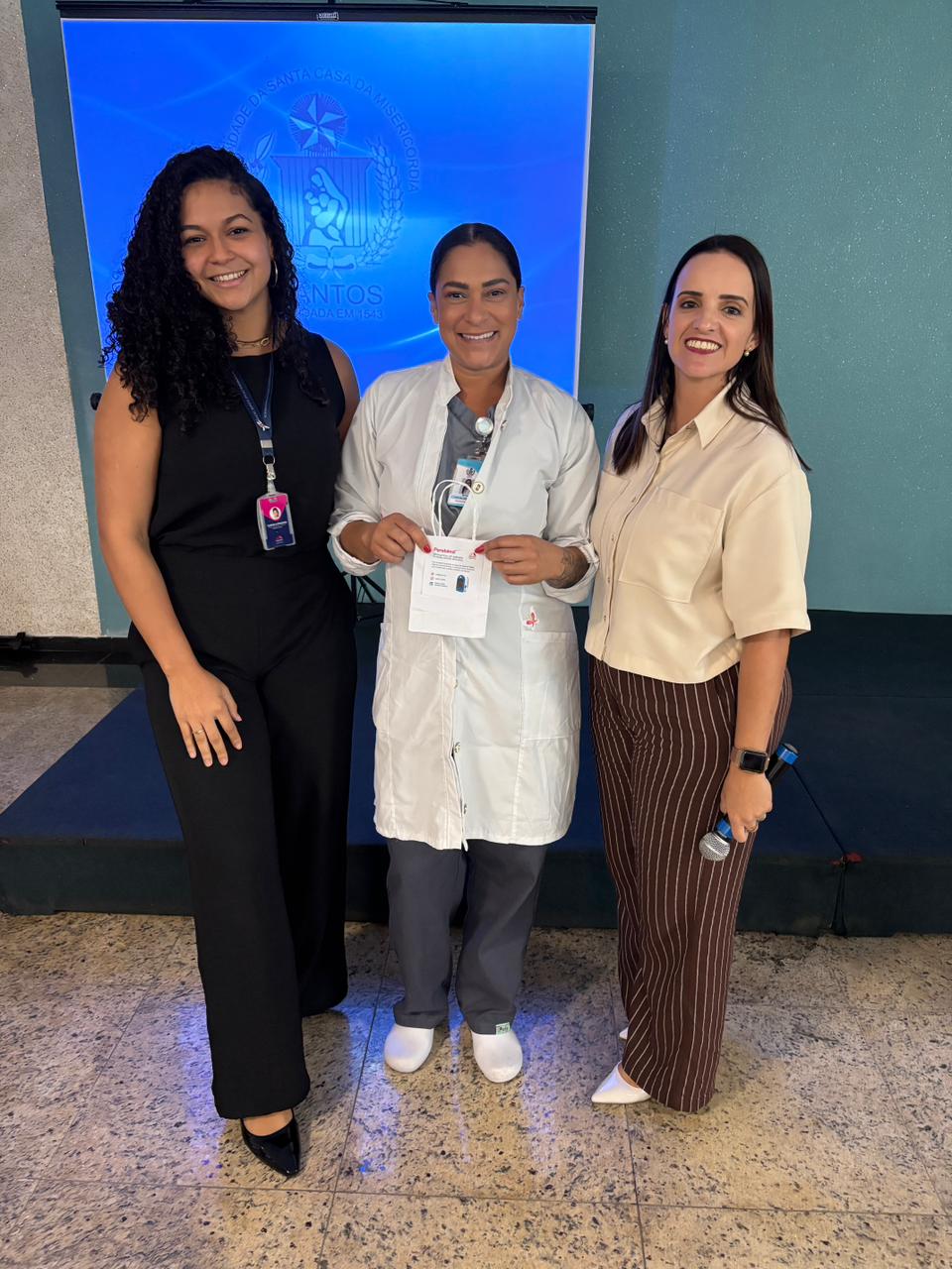 Também foram sorteados diversos brindes e os colaboradores receberam uma caixa com lanche e um porta crachá especial da Semana da Enfermagem.