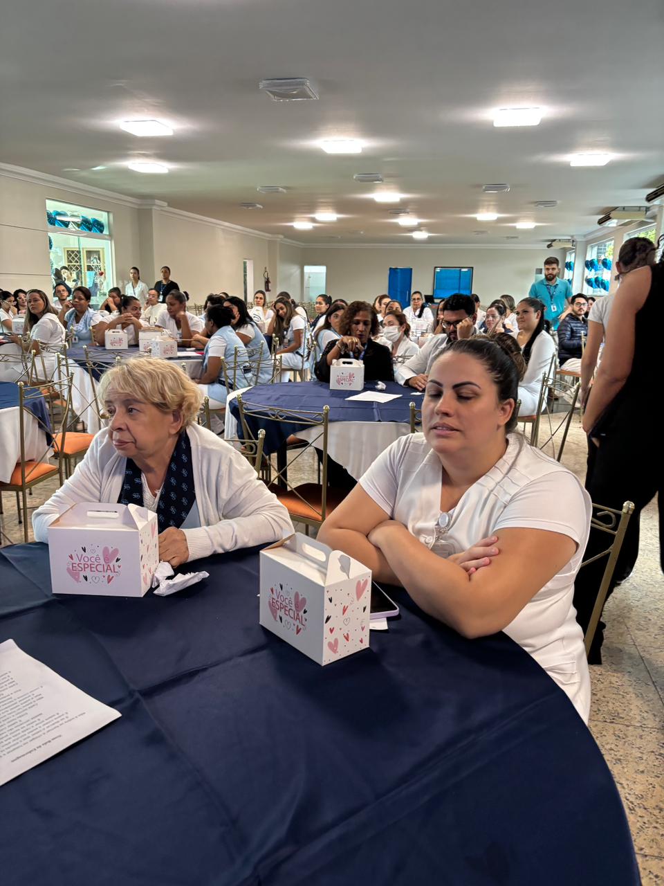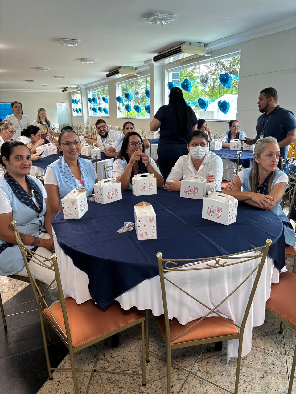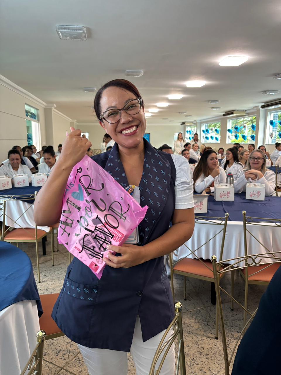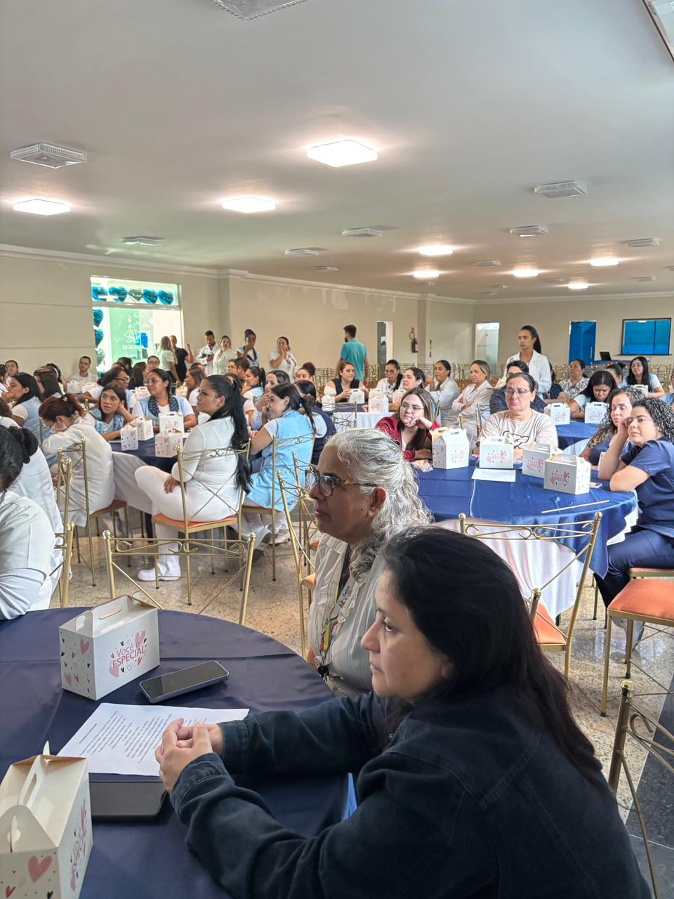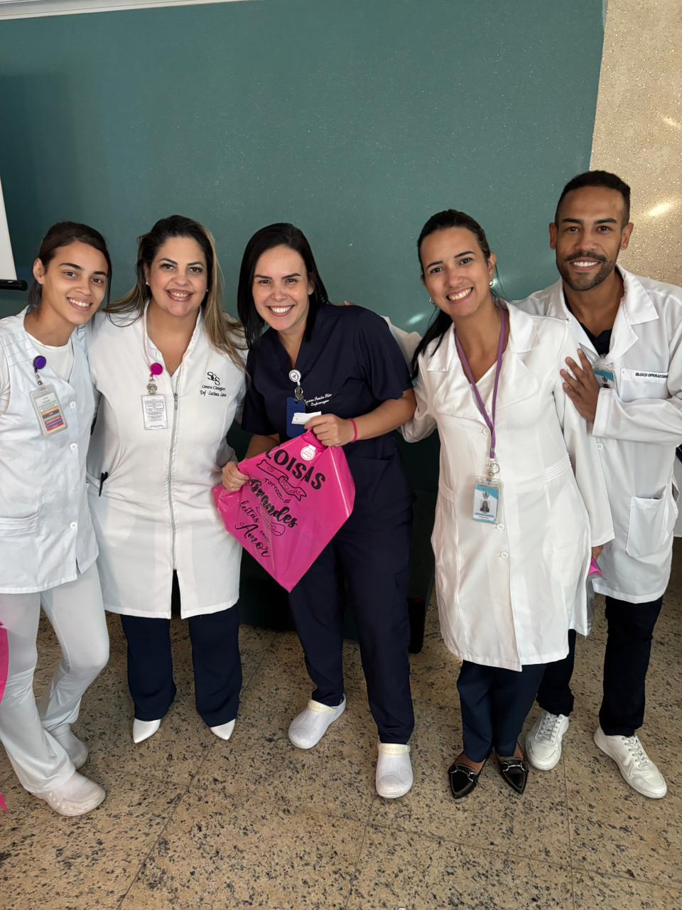 Também foram sorteados diversos brindes e os colaboradores receberam uma caixa com lanche e um porta crachá especial da Semana da Enfermagem.