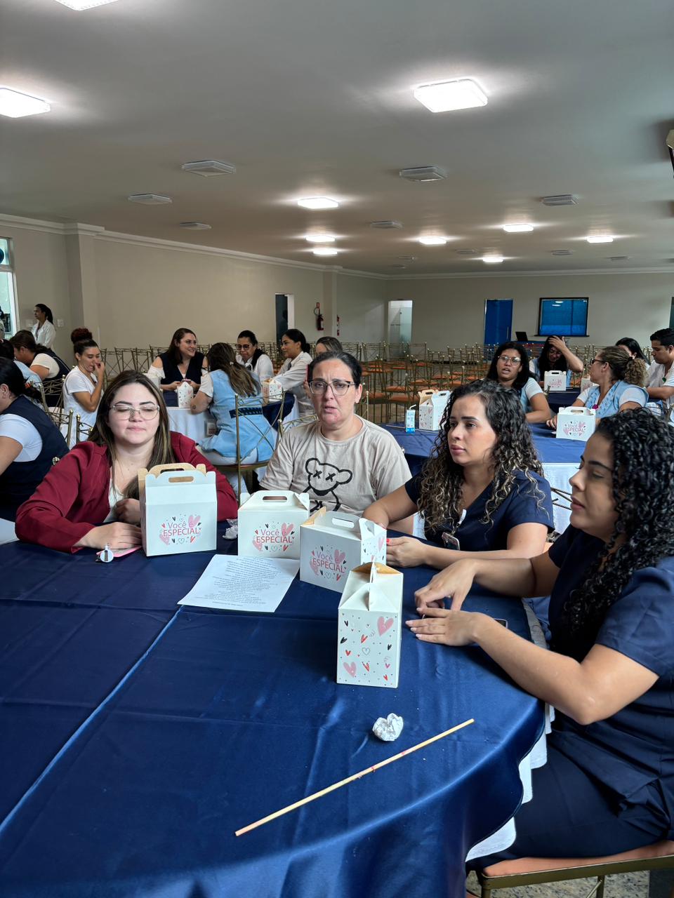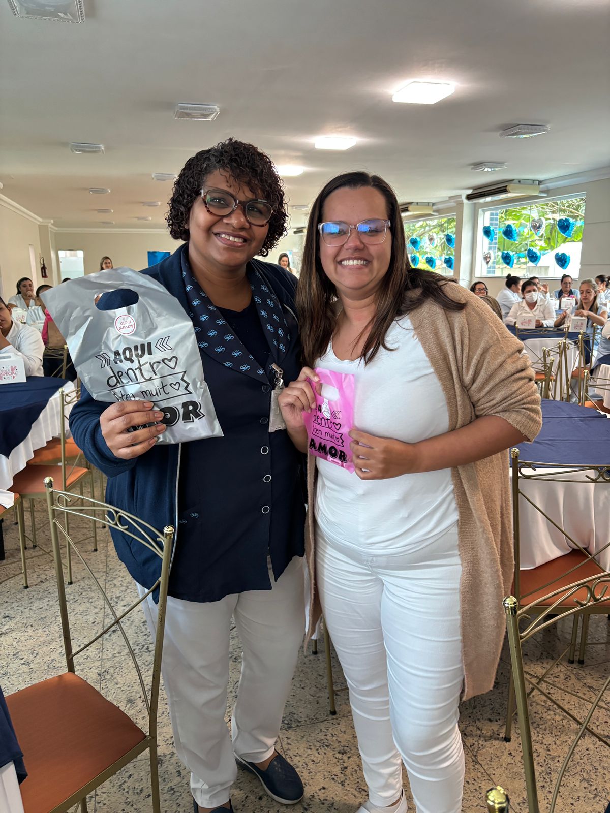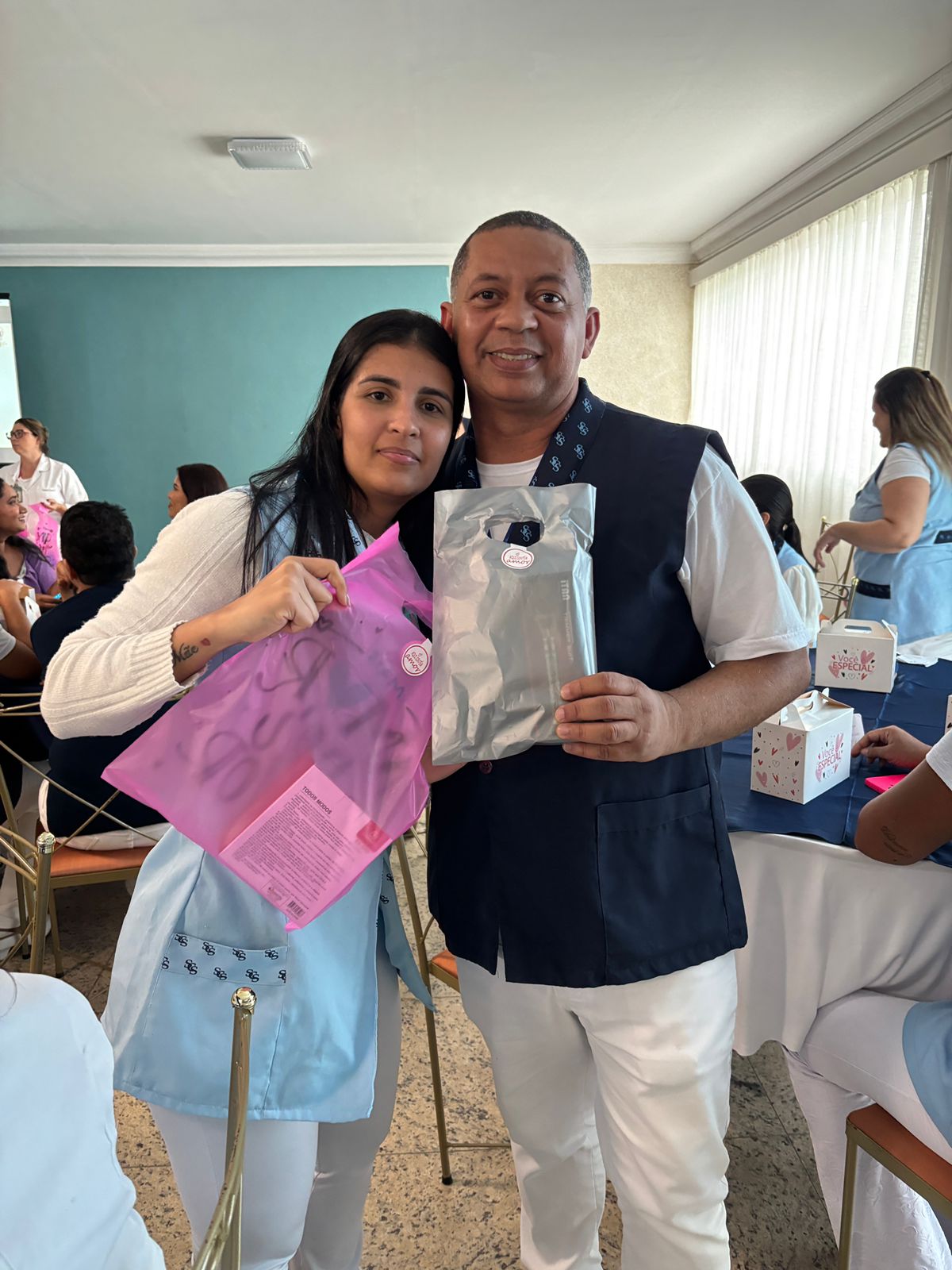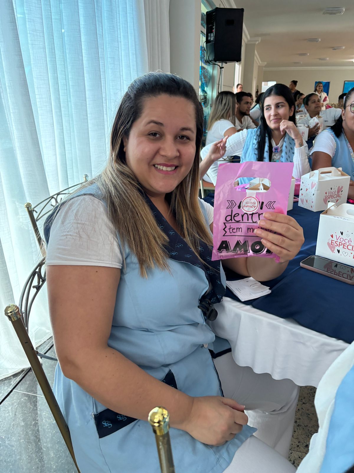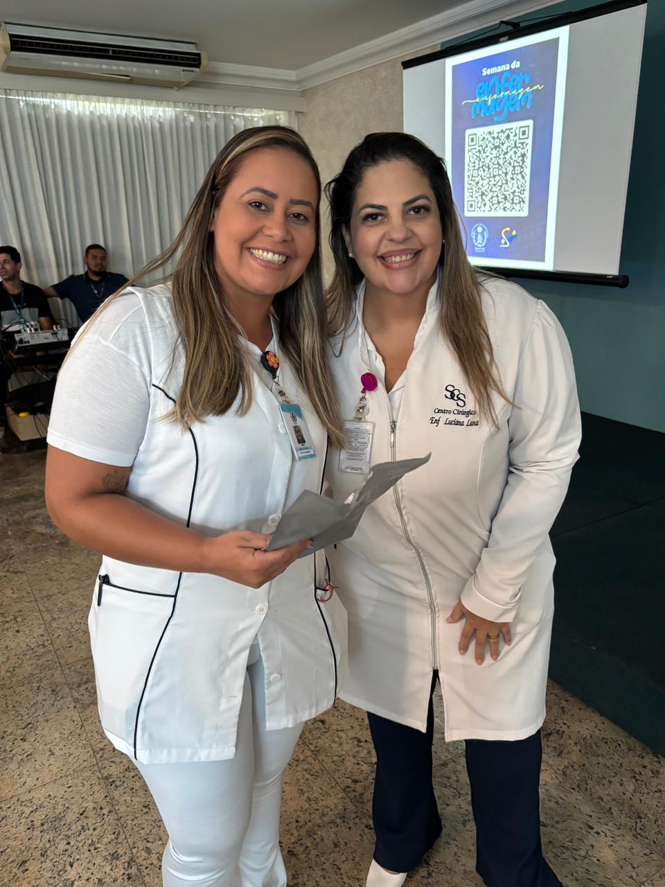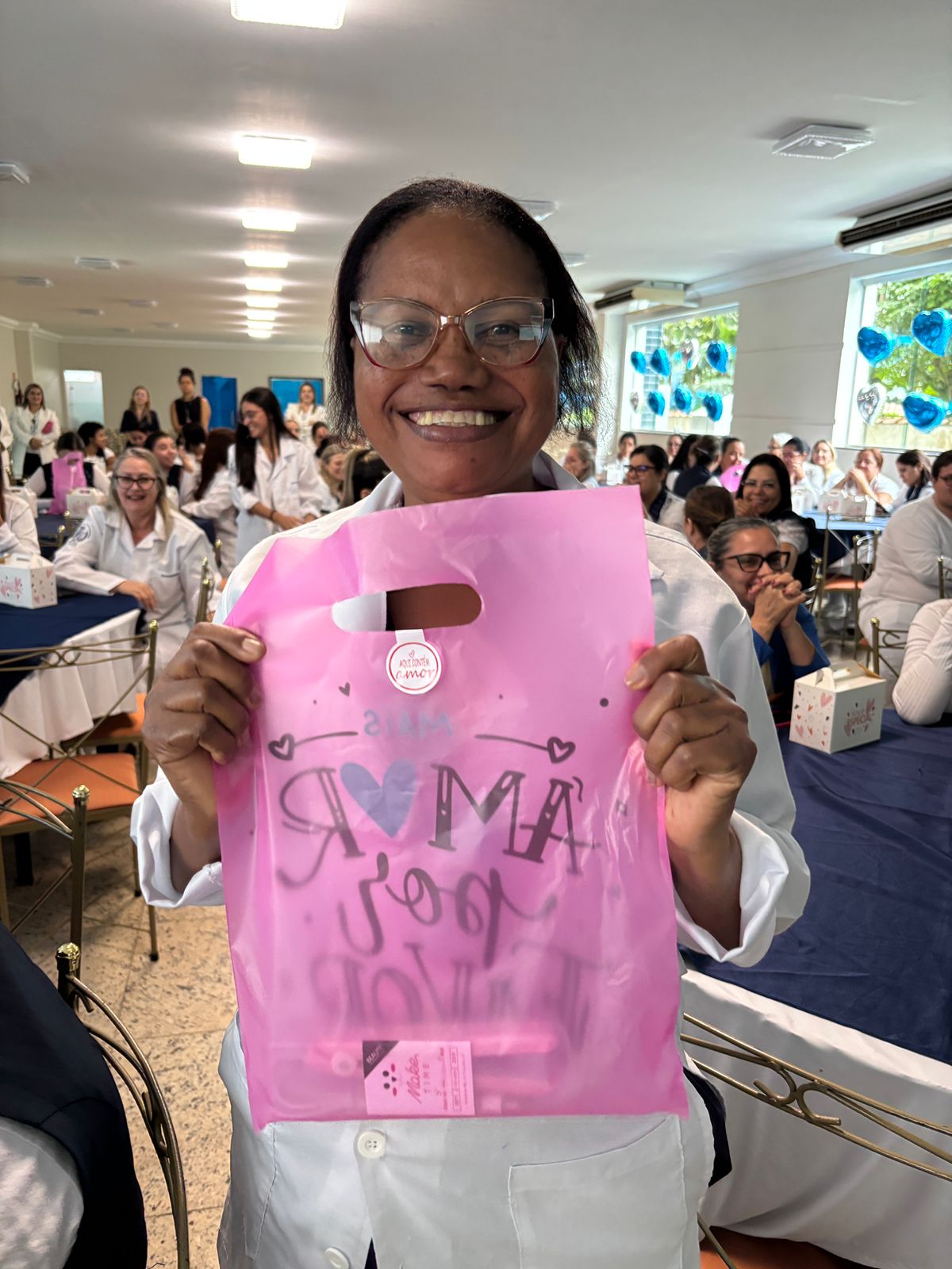 Também foram sorteados diversos brindes e os colaboradores receberam uma caixa com lanche e um porta crachá especial da Semana da Enfermagem.