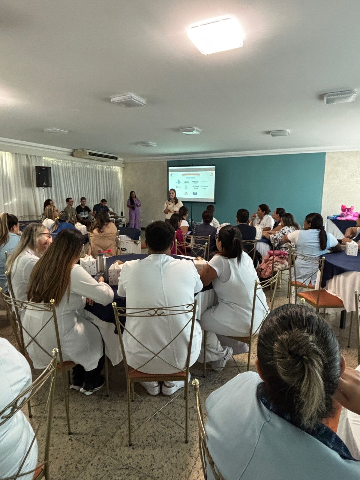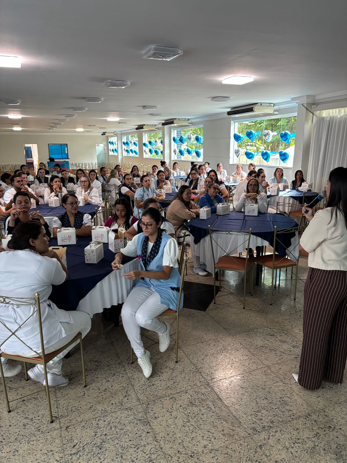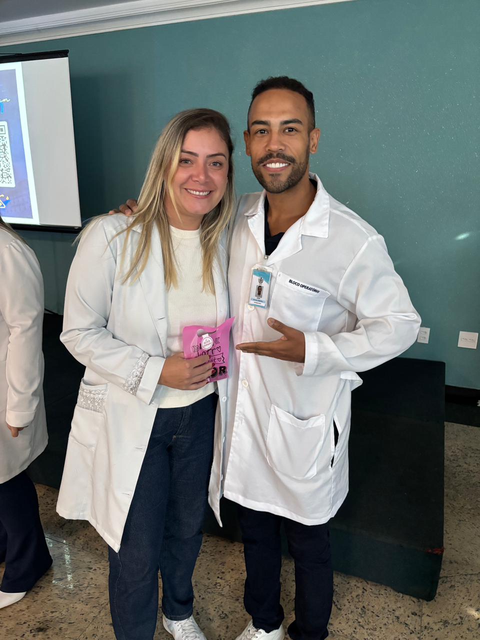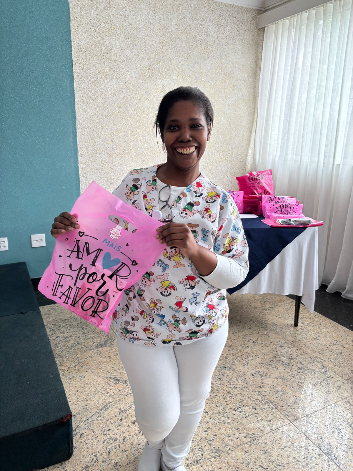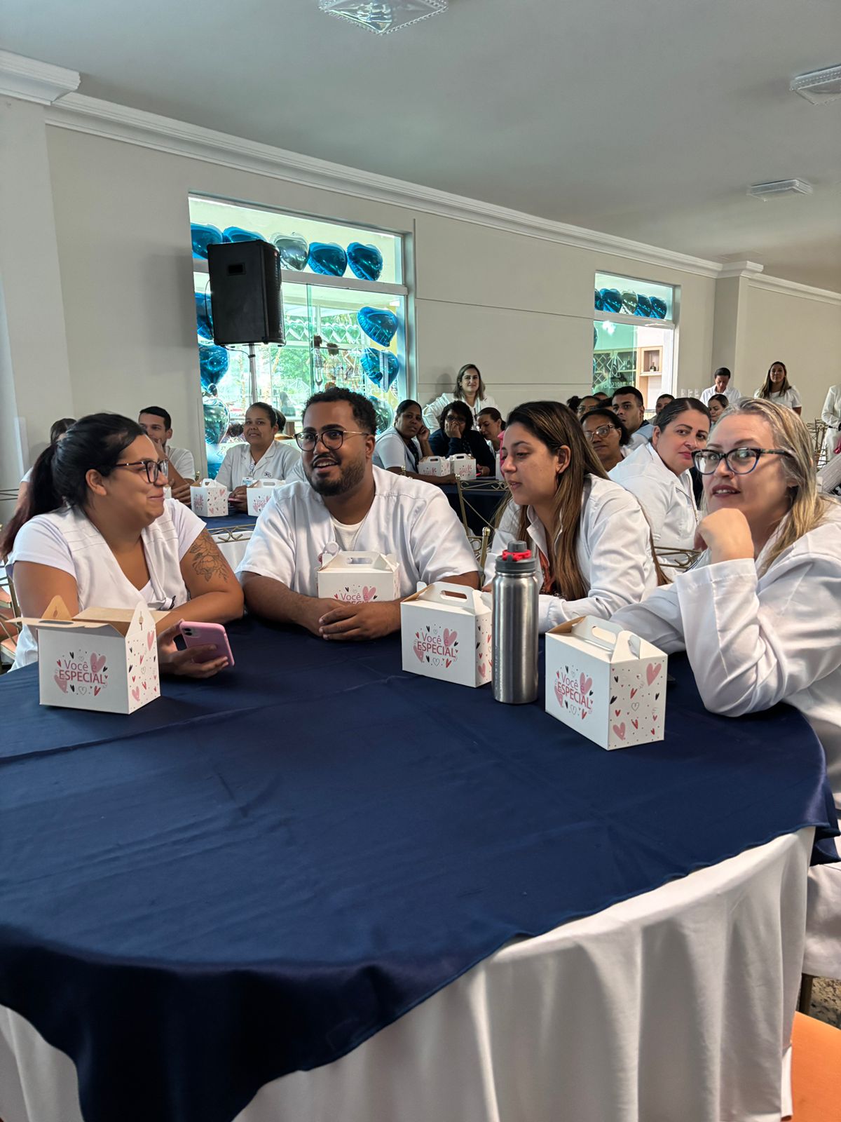 Também foram sorteados diversos brindes e os colaboradores receberam uma caixa com lanche e um porta crachá especial da Semana da Enfermagem.