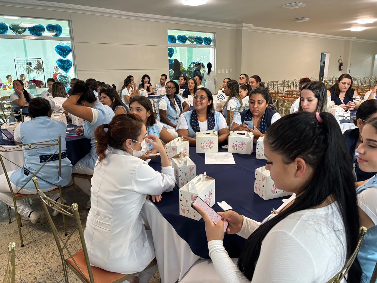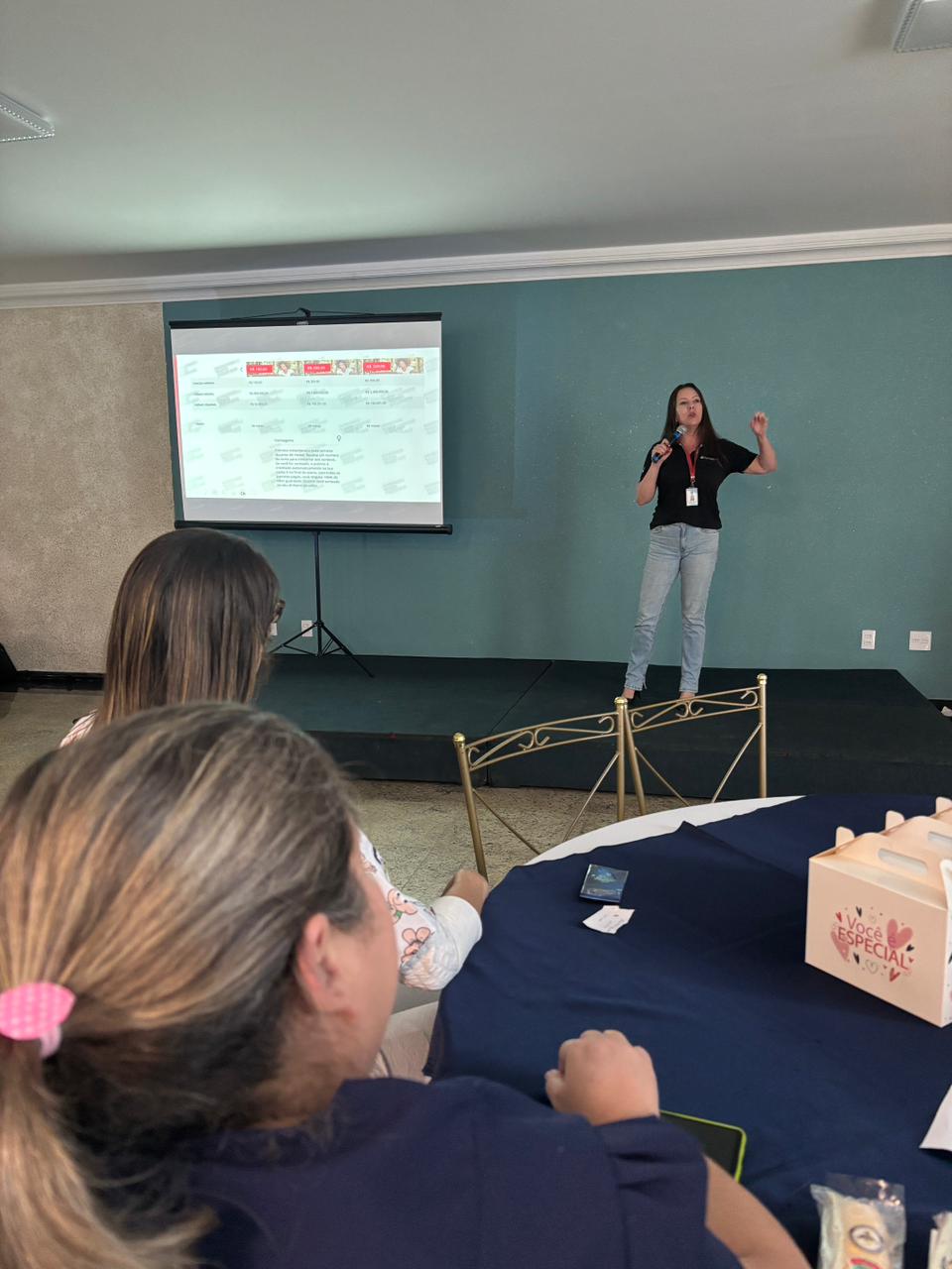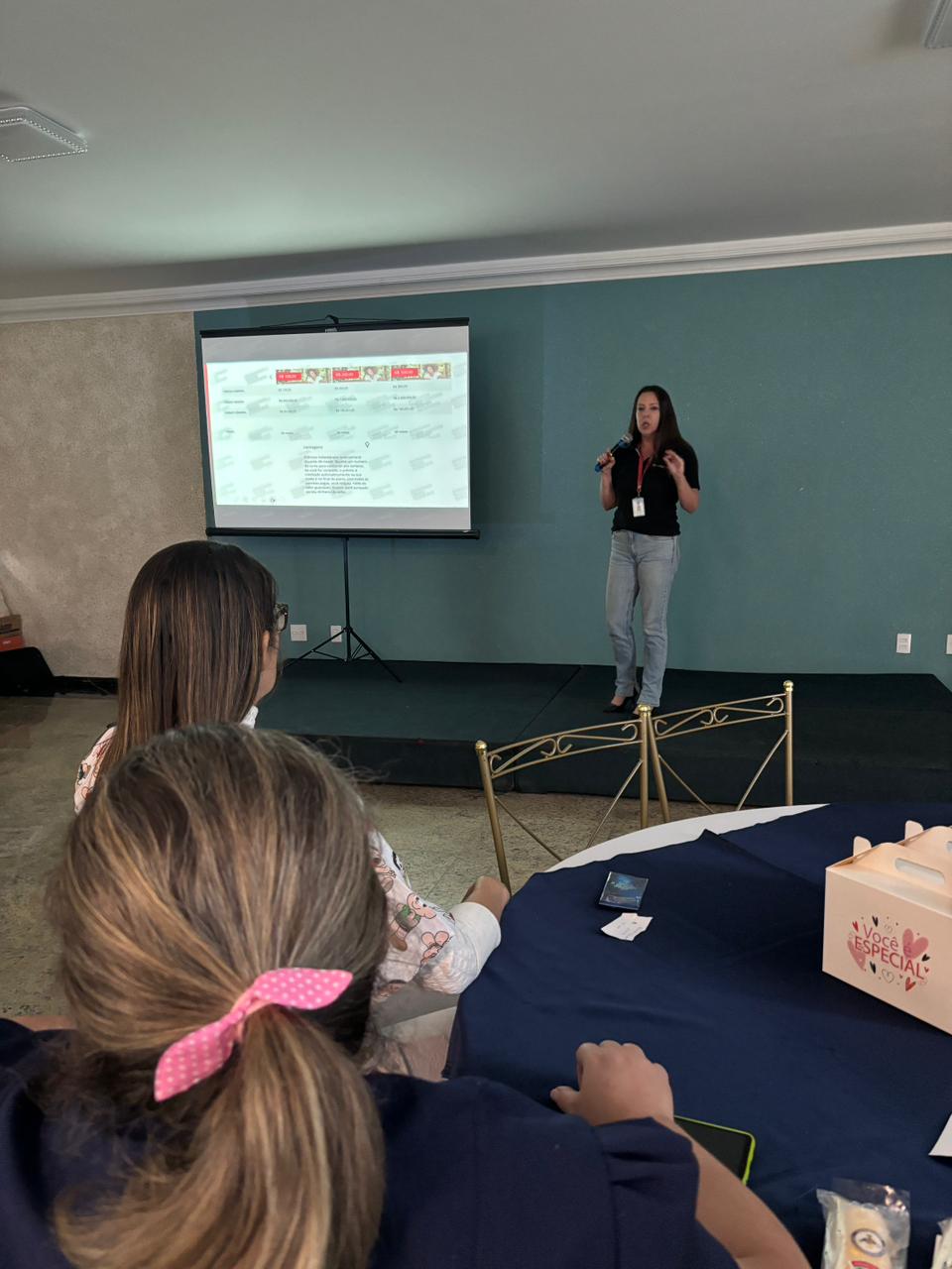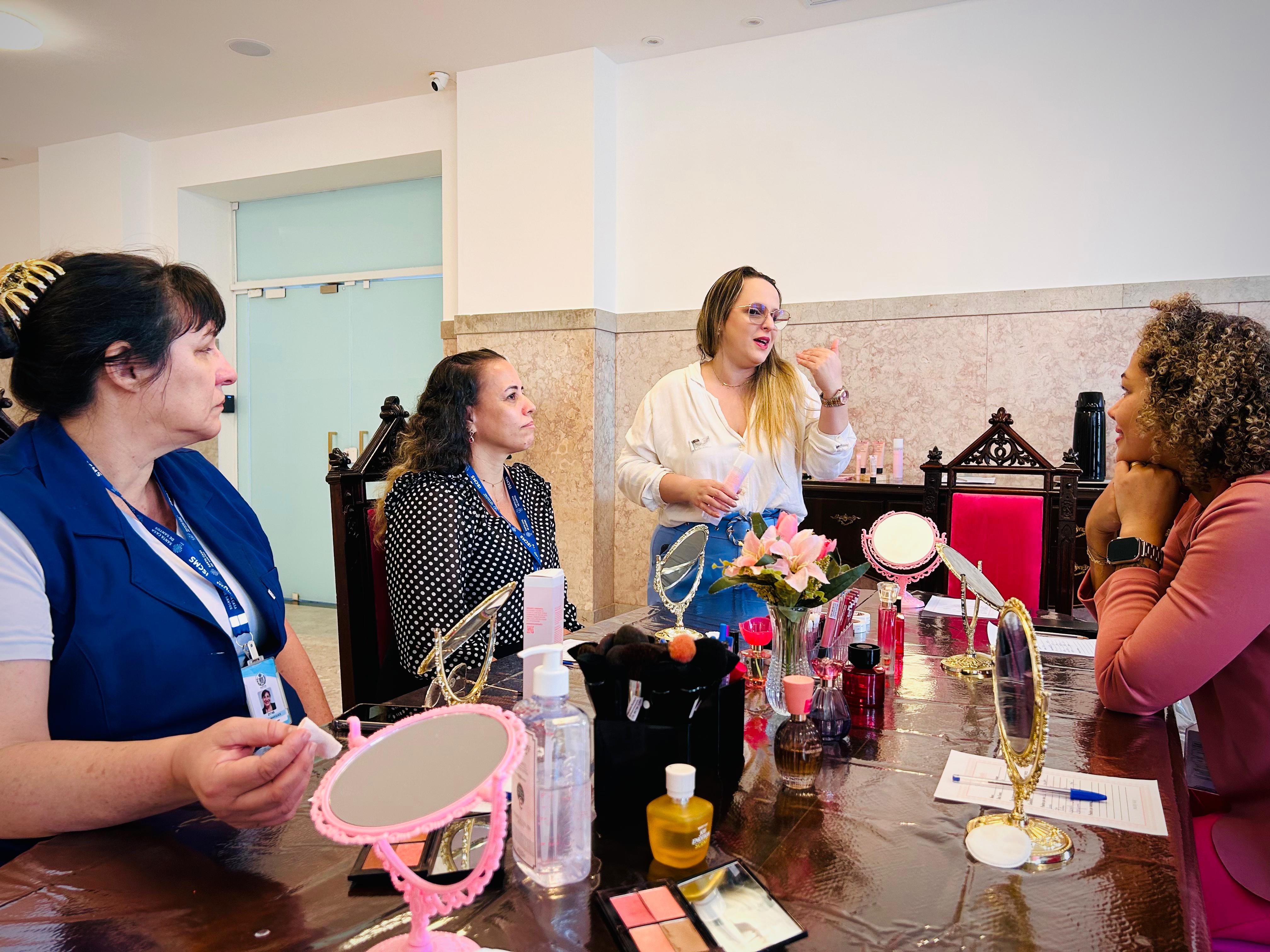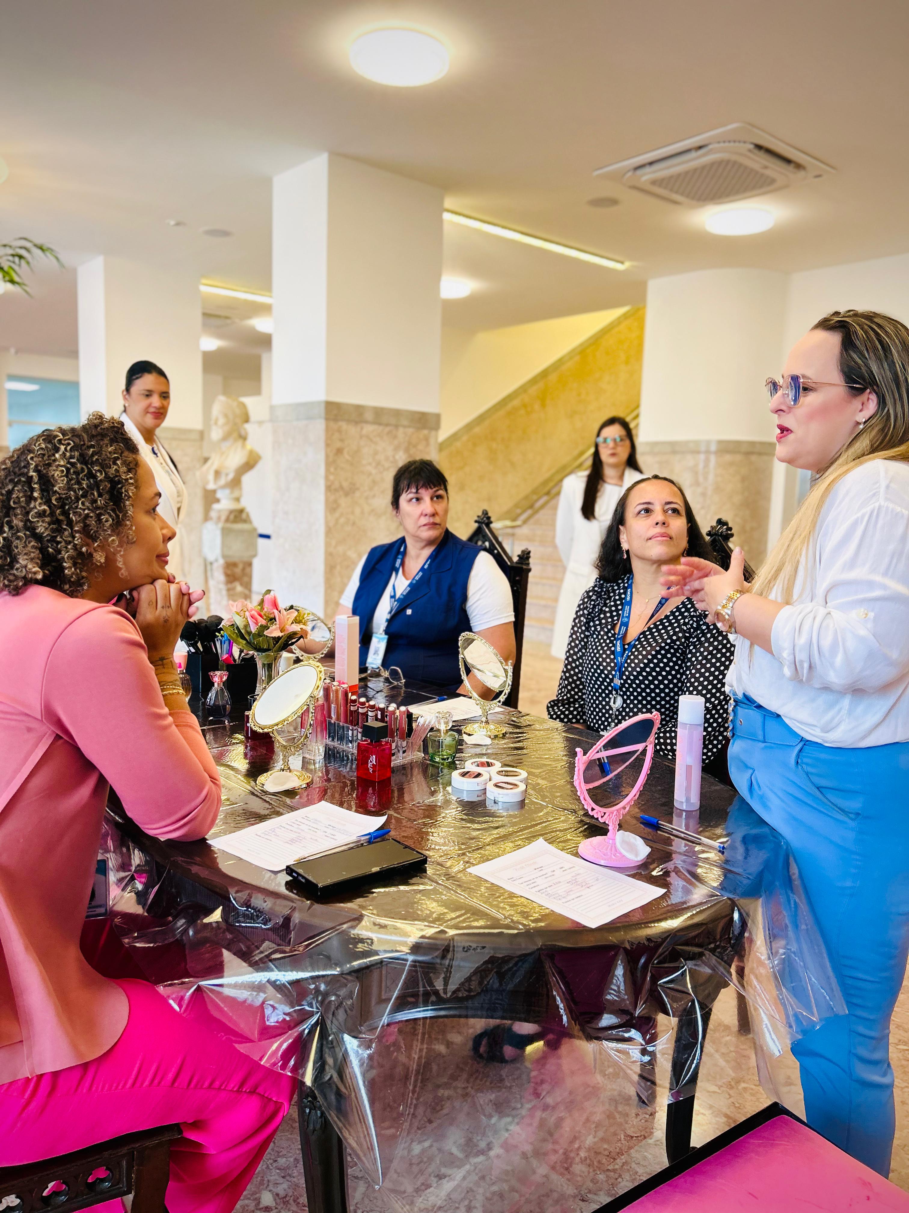No salão rosa do 2ºA, representantes da Mary Kay, ministraram aulas de auto maquiagem com dicas de beleza. Ficou disponível um toten de fotos impressas para os colaboradores registrarem o momento. Além disso, também tinha disponível aula prática de Yoga e massagem.