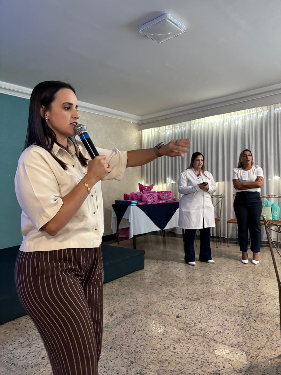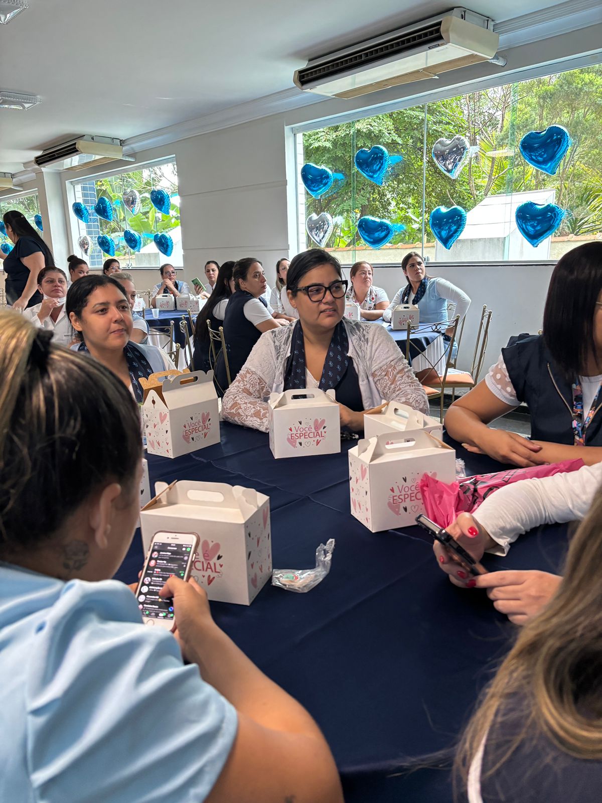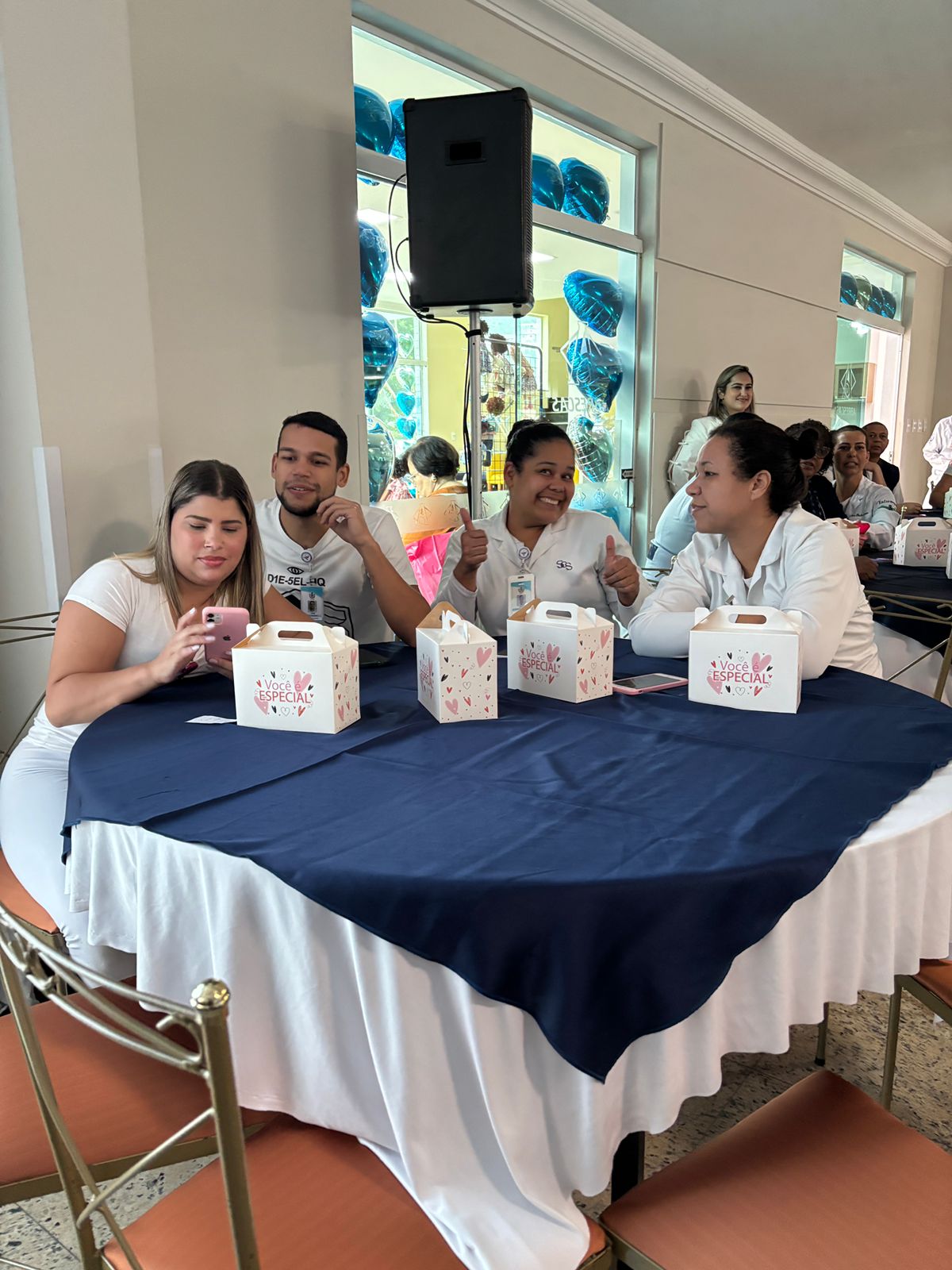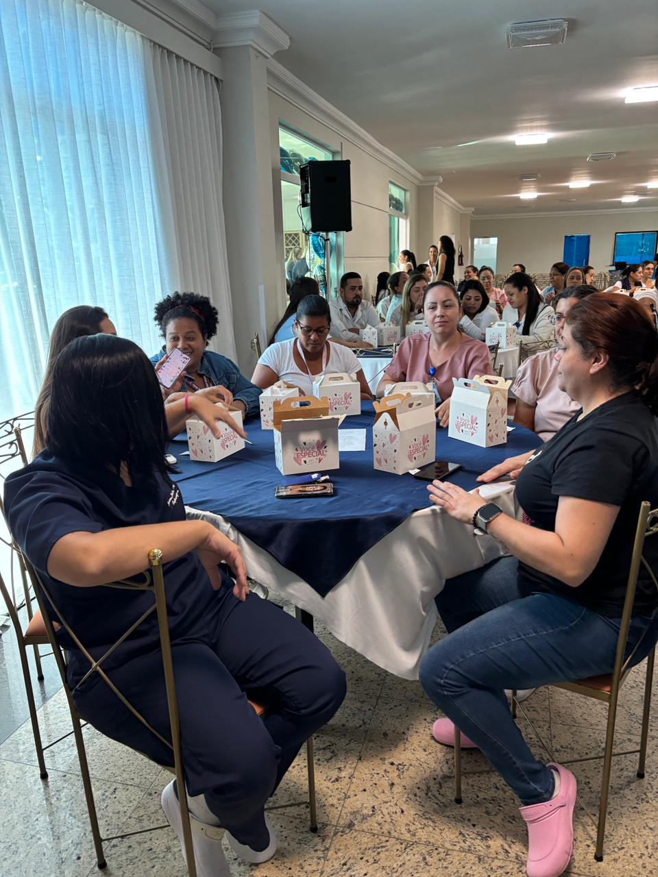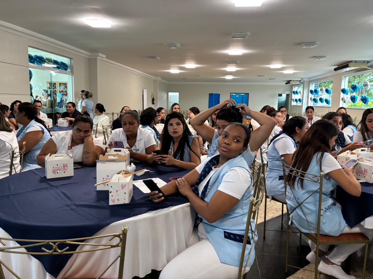 No salão rosa do 2ºA, representantes da Mary Kay, ministraram aulas de auto maquiagem com dicas de beleza. Ficou disponível um toten de fotos impressas para os colaboradores registrarem o momento. Além disso, também tinha disponível aula prática de Yoga e massagem.
