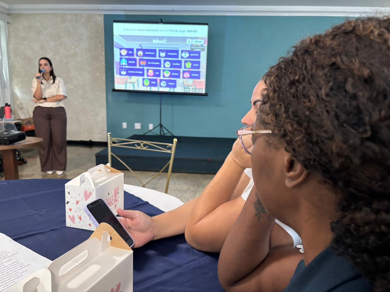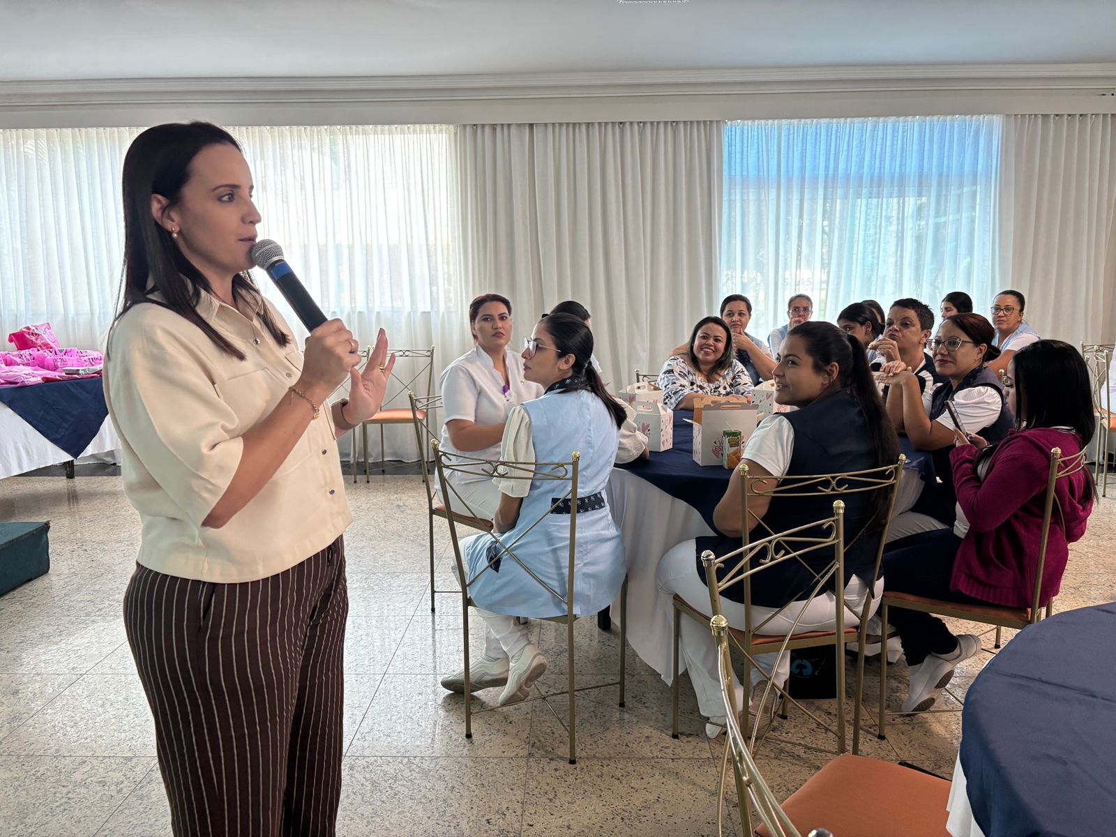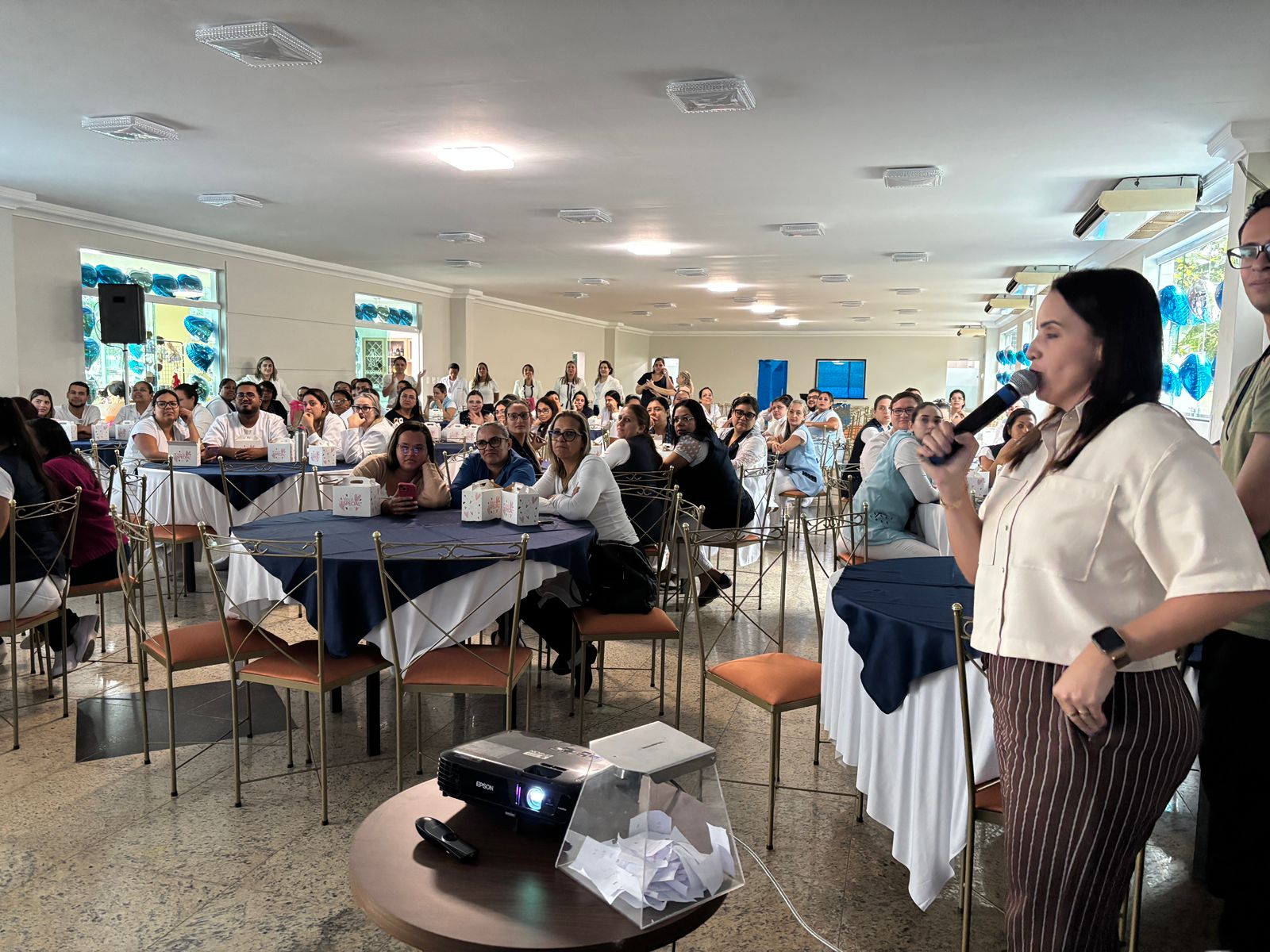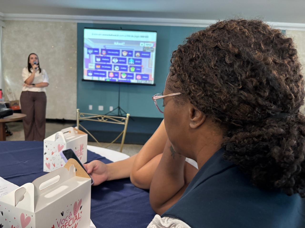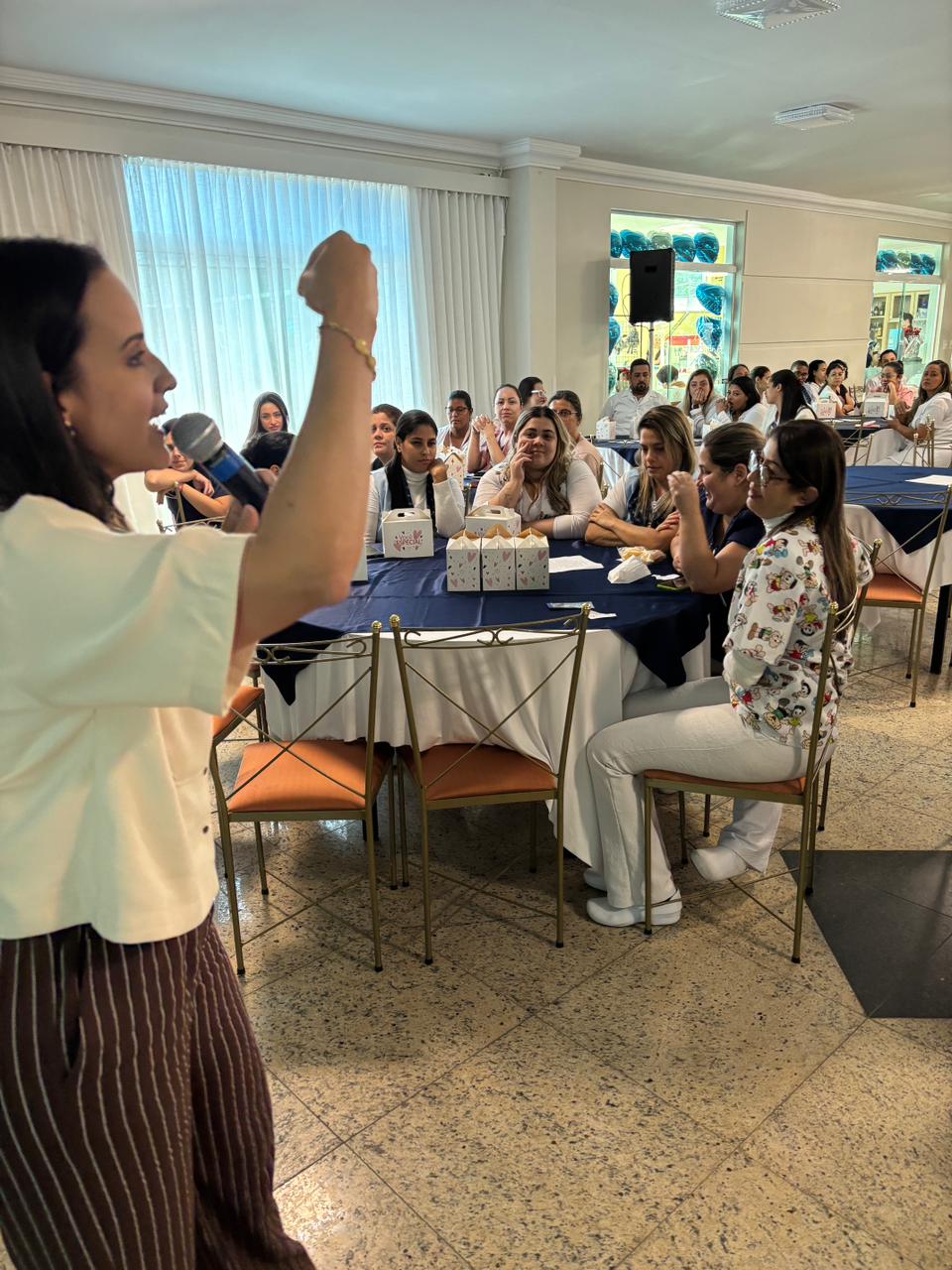 No salão rosa do 2ºA, representantes da Mary Kay, ministraram aulas de auto maquiagem com dicas de beleza. Ficou disponível um toten de fotos impressas para os colaboradores registrarem o momento. Além disso, também tinha disponível aula prática de Yoga e massagem.
