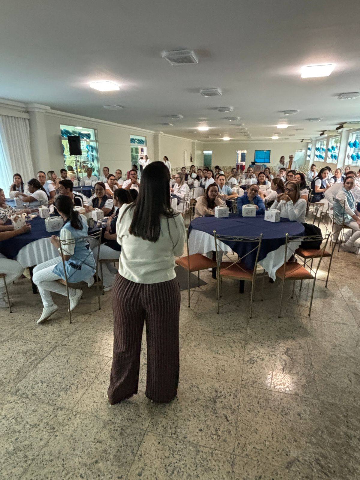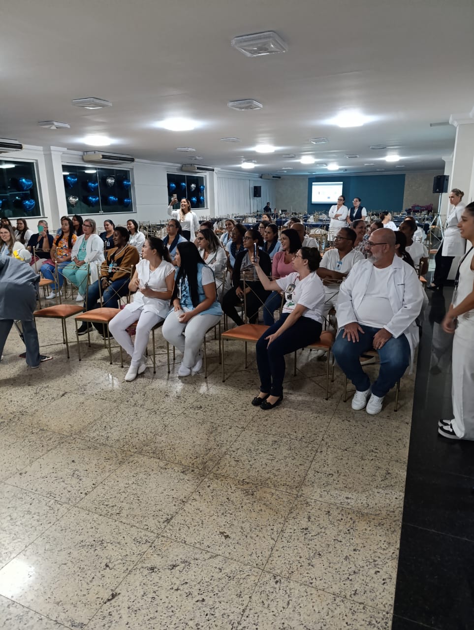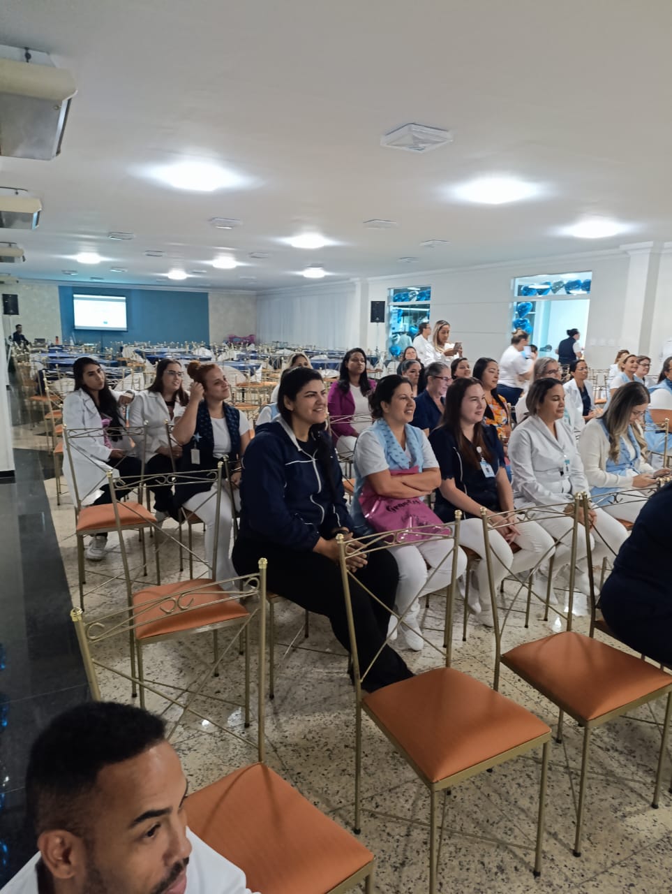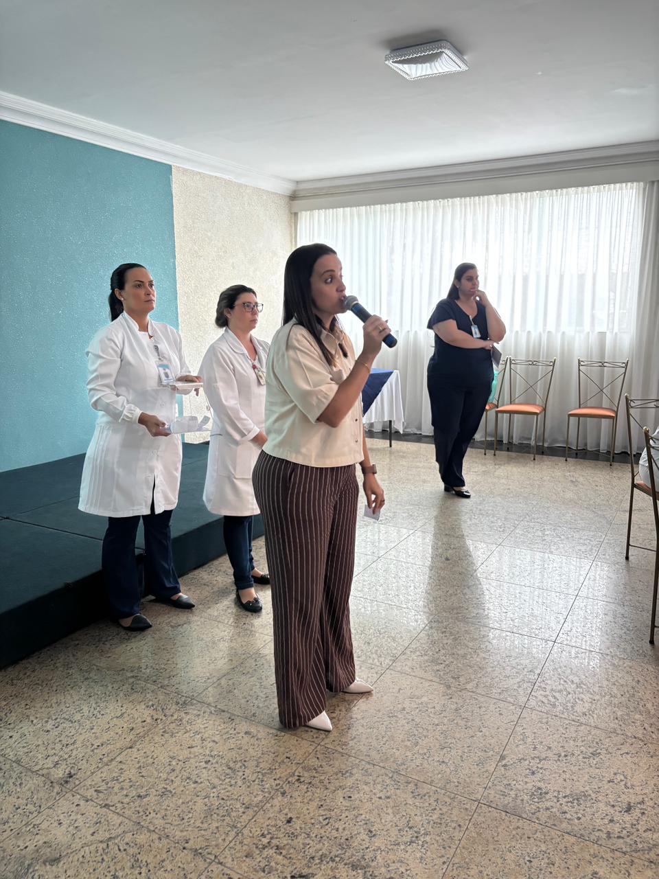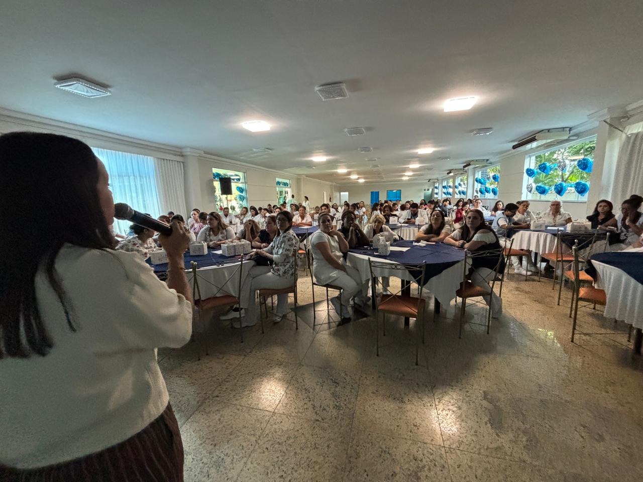Já na Abrescas, a abertura especial, no período da manhã, contou com apresentação musical dos próprios colaboradores. A Enfª Ester, que atua no 5ºA, cantou duas músicas e agitou o pessoal.