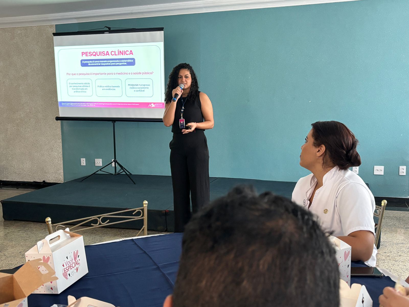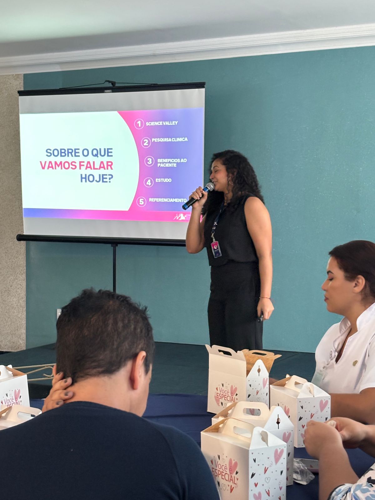 A Science Valley, empresa parceira do evento, ministrou uma rápida palestra sobre Pesquisa Clínica, e disponibilizou um oxímetro para sortear entre os participantes.