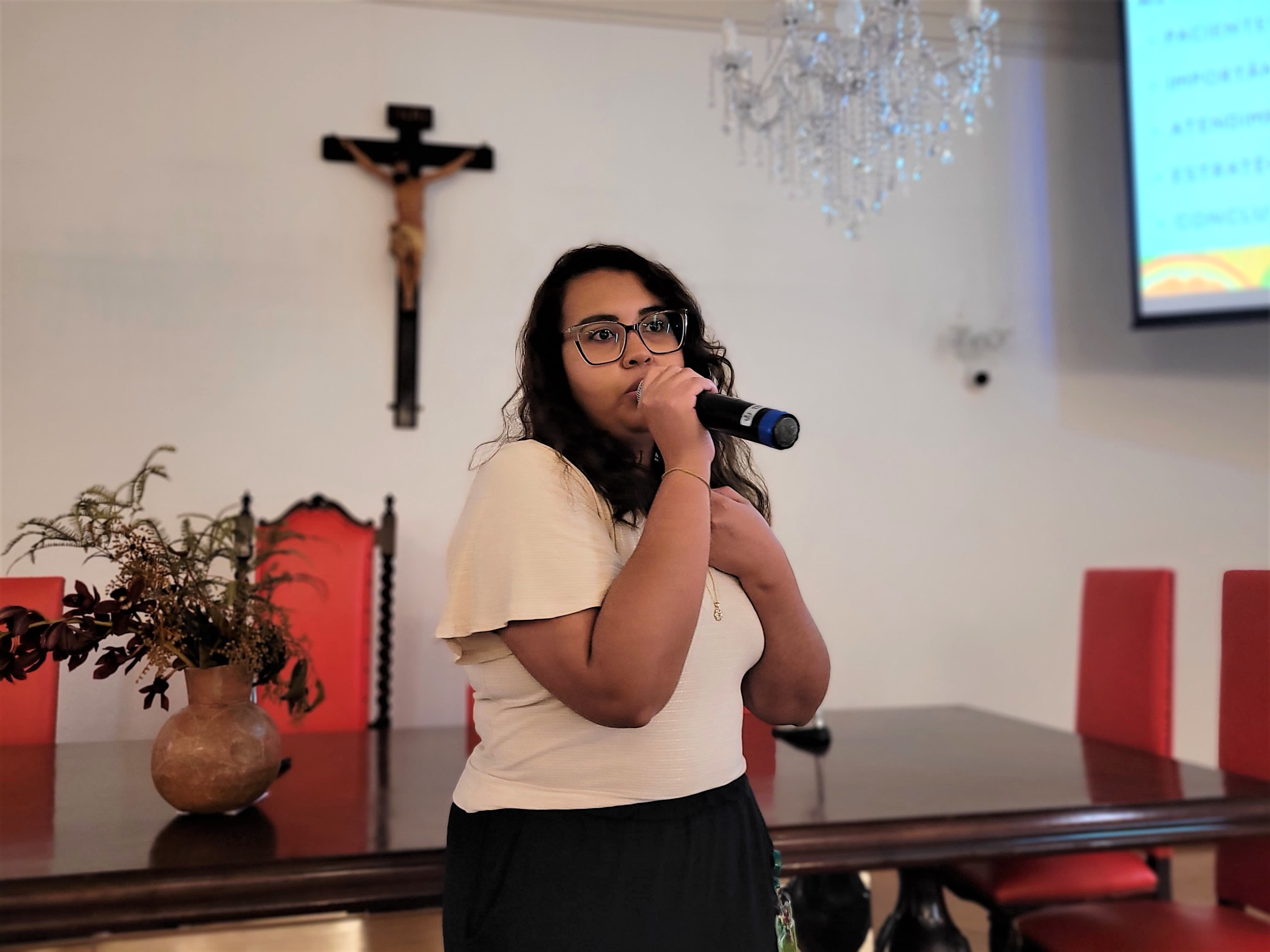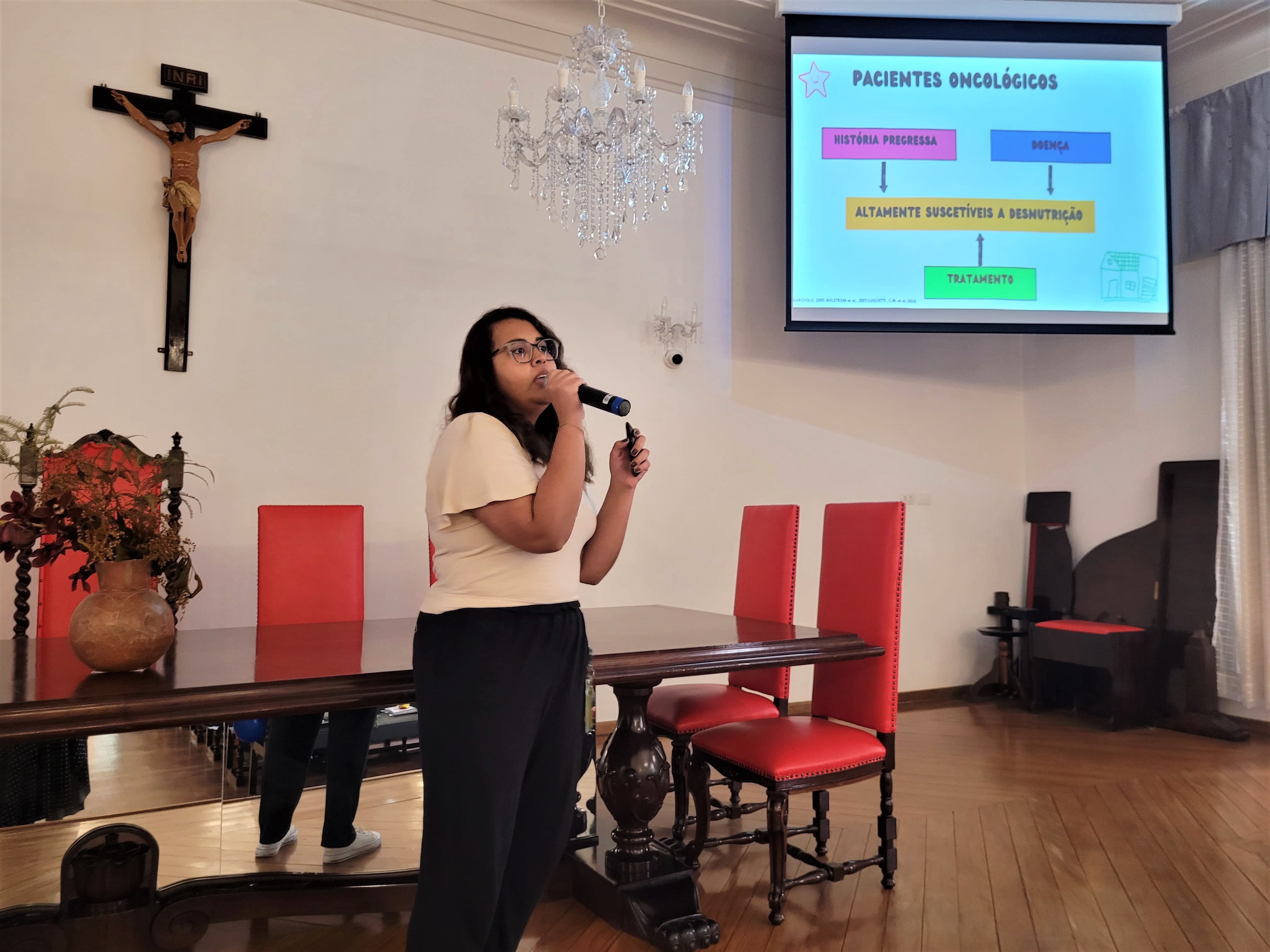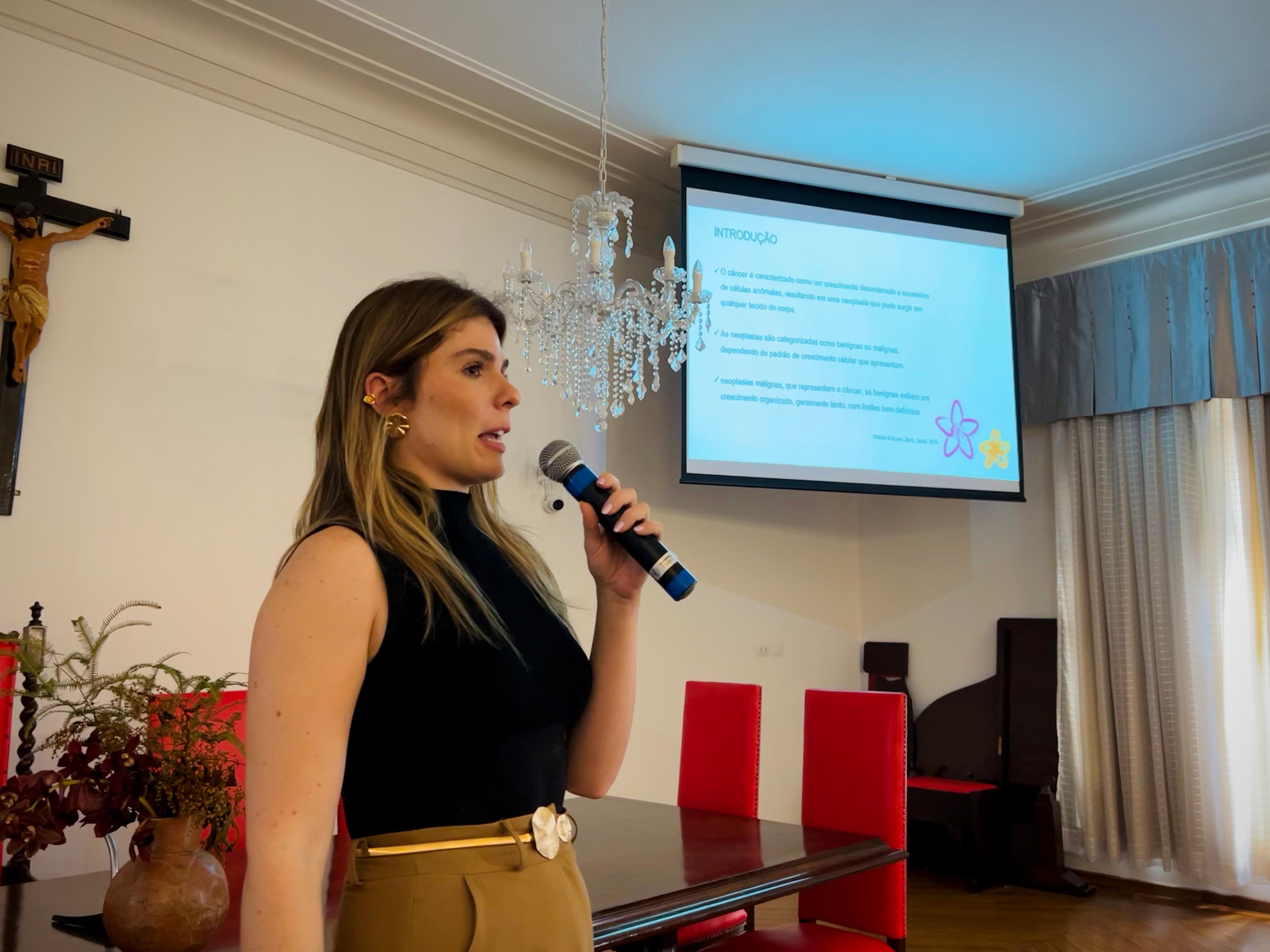 Depois, foi a vez da nutricionista da Santa Casa, Juliana Gonzaga, que explicou sobre a nutrição do paciente oncológico, e da Enfª. Dileiny Geronutti, que falou dos cuidados paliativos em pacientes oncológicos.