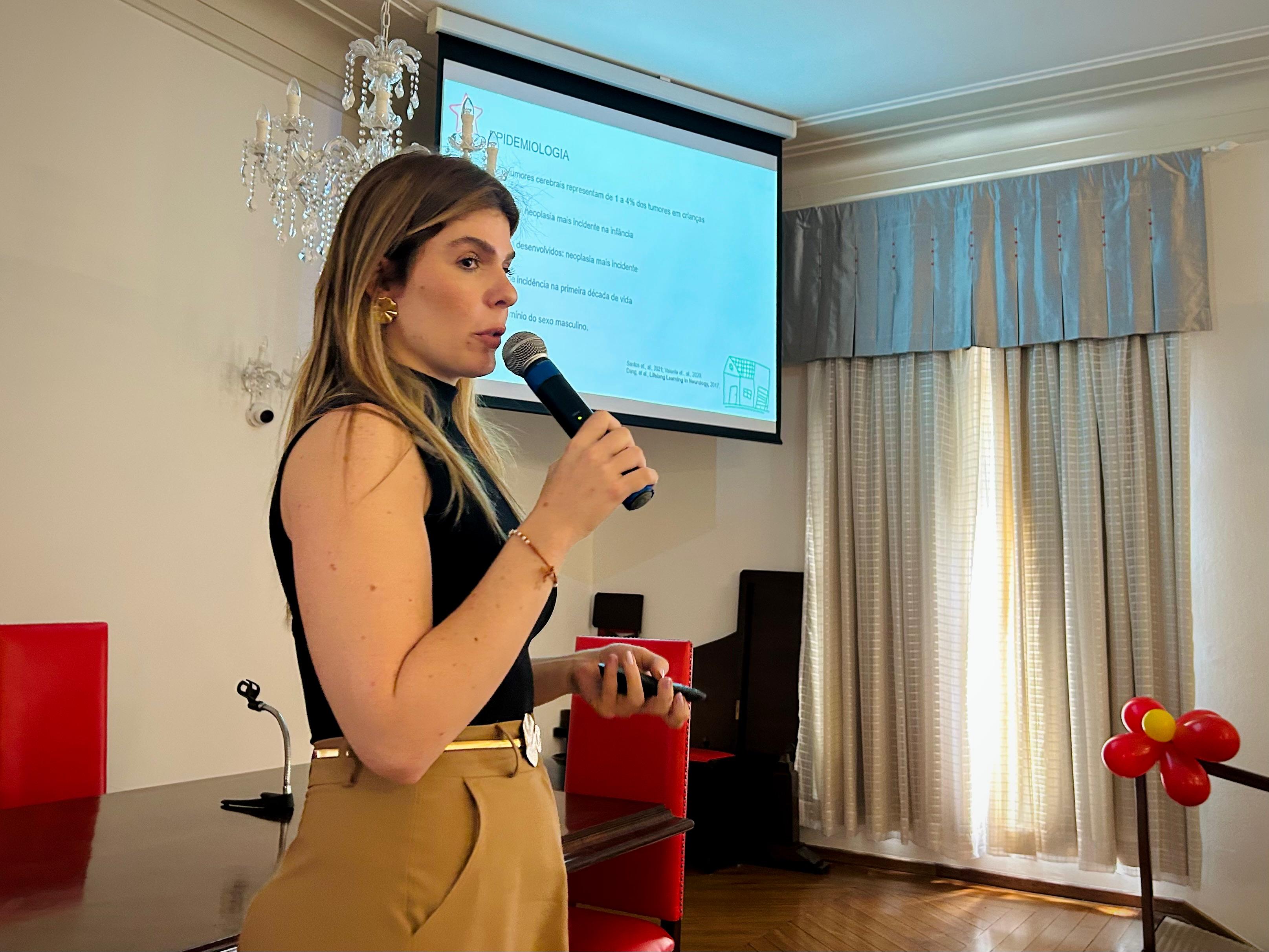 A quarta palestra da manhã foi com a oncologista infantil também do Serviço de Oncopediatria, Dra. Maristela Facholi, explicando sobre os sinais e sintomas dos tumores cerebrais e a importância da realização da tomografia no pronto socorro para o devido direcionamento do caso.
