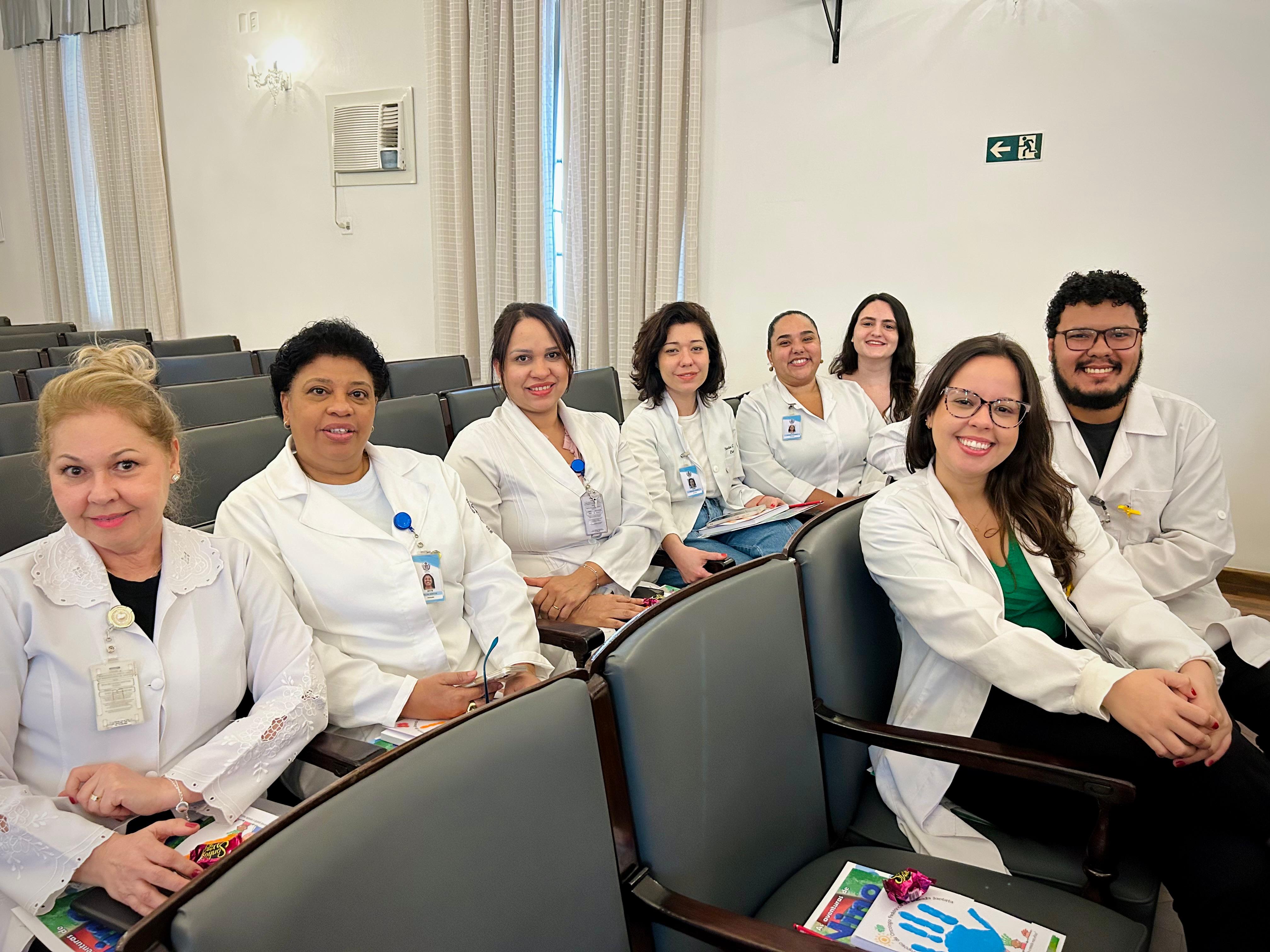 A primeira palestra foi com a assistente social Cláudia Jacob, do Centro Integrado de Humanização, que explicou quais são os profissionais envolvidos na assistência dos pacientes da Oncologia Pediátrica e detalhou o fluxo de atendimento desde antes da chegada no serviço até o acompanhamento pós alta.