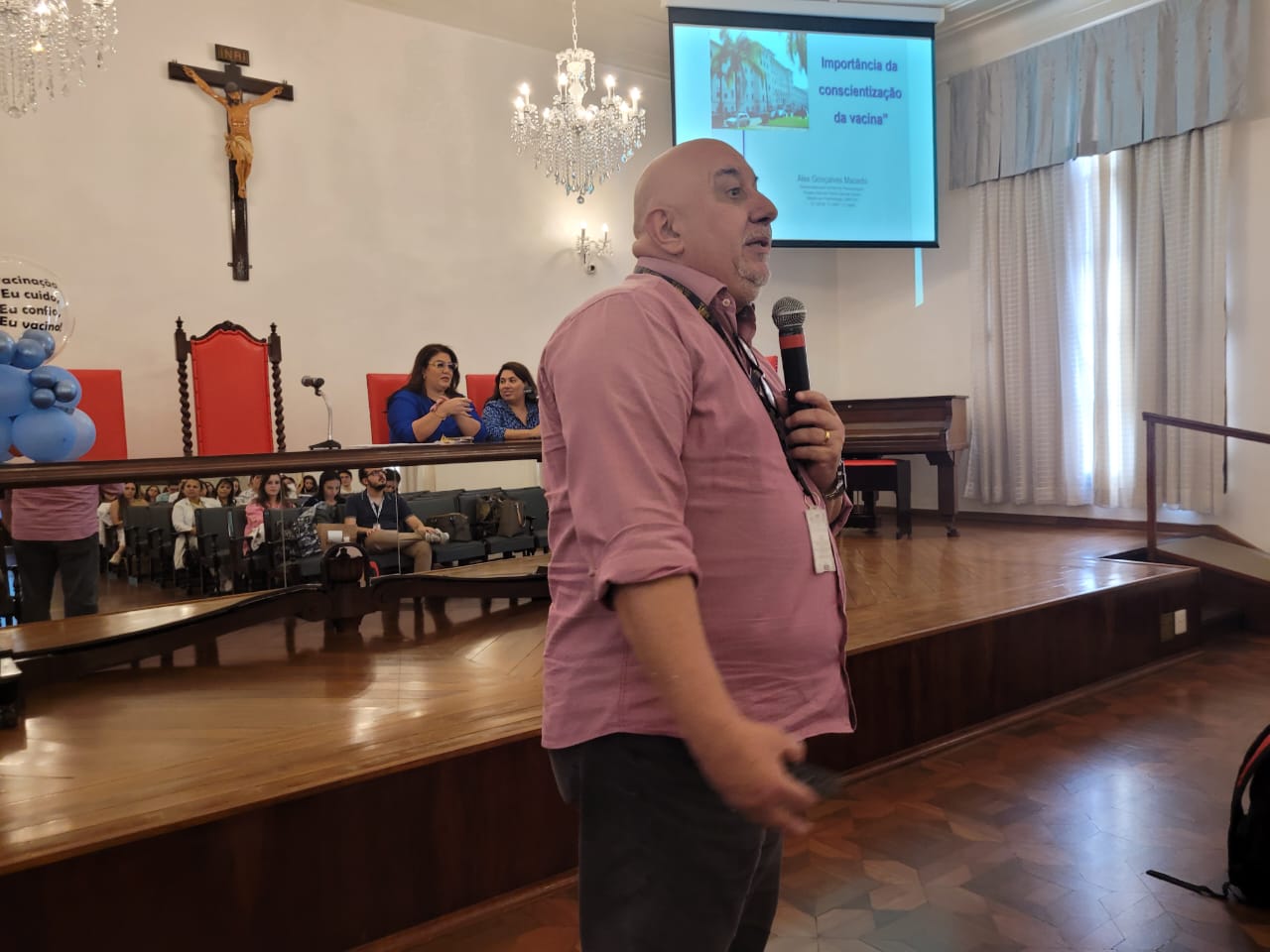 A primeira palestra ficou por conta do pneumologista e diretor técnico da Santa Casa de Santos, Dr. Alex Macedo, que falou sobre a história da vacina e a importância para a erradicação de diversas doenças. Dr. Alex também apresentou dados científicos que comprovam a eficácia da vacinação.