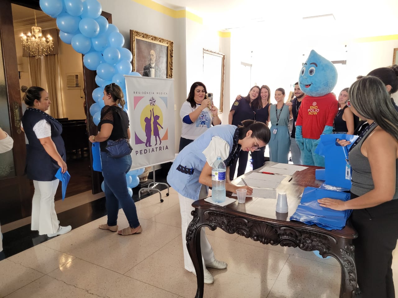 Ação é uma referência ao “Abril Azul – confiança nas vacinas: eu cuido, eu confio, eu vacino”, campanha da Sociedade de Pediatria de São Paulo (SPSP).