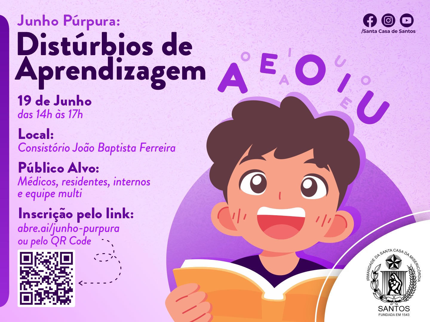 O evento organizado pelo Serviço de Pediatria da Santa Casa de Santos faz parte de uma série de campanhas incentivadas pela Sociedade de Pediatria de São Paulo. A ação deste mês foi uma referência à campanha “Junho Púrpura – Distúrbios de aprendizagem: conhecer, perceber, enfrentar” Campanha Junho Púrpura – Distúrbios de Aprendizagem | SPSP