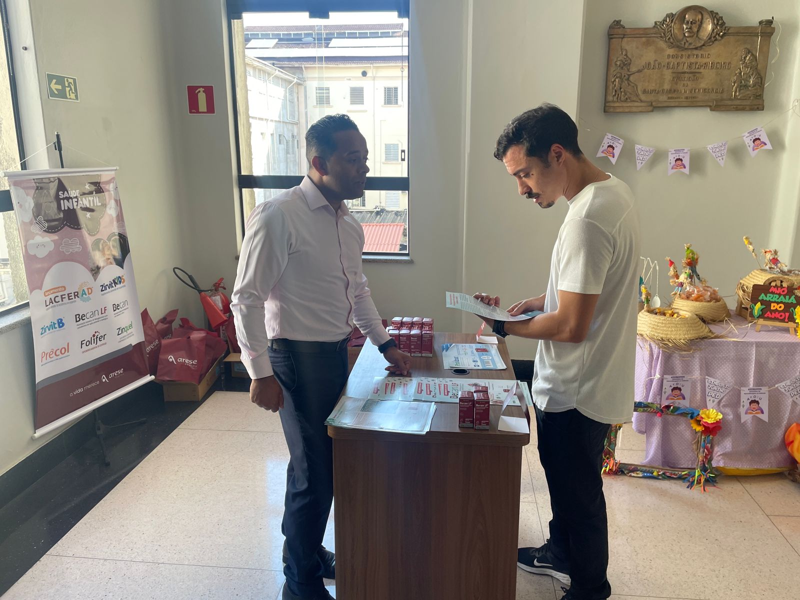 O evento aconteceu no consistório do hospital e foi organizado pelas pediatras Drª. Bruna Giacomelli (coordenadora do serviço), e Drª. Ana Luiza Passos Dib, com patrocínio das empresas farmacêuticas ARESE e ACHE.