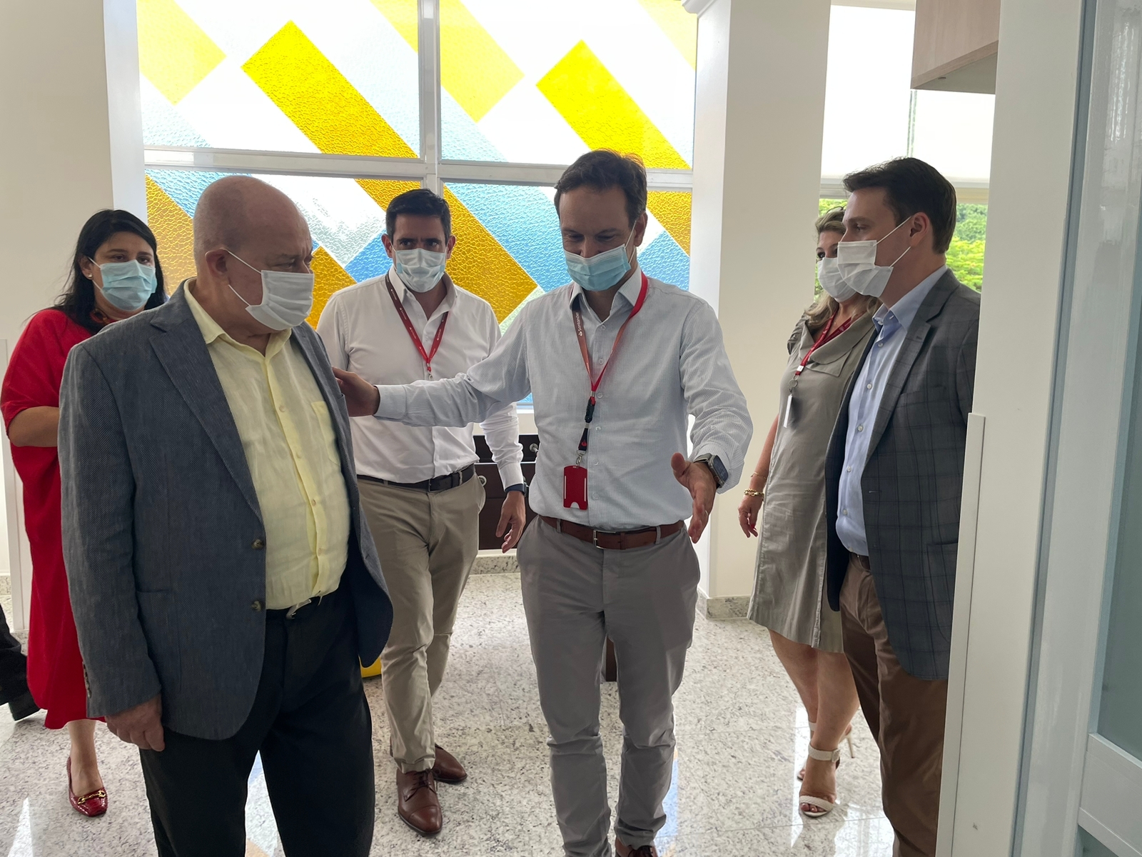 O presidente do Banco Santander, Mário Leão, esteve na Santa Casa de Santos no dia 24/1 para conhecer as novas instalações de diversas áreas da instituição. Ele veio acompanhado da vice-presidente do Banco, Vanessa Lobato, do diretor de Rede Comercial, Robson Rezende, do Superintendente Executivo, Javier Garcia, e do Superintendente de Governo e Instituições, Márcio Gianicco.