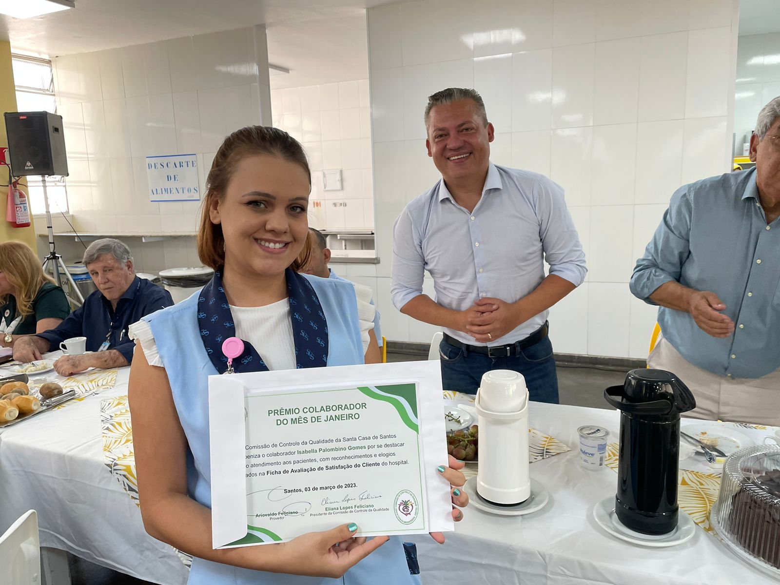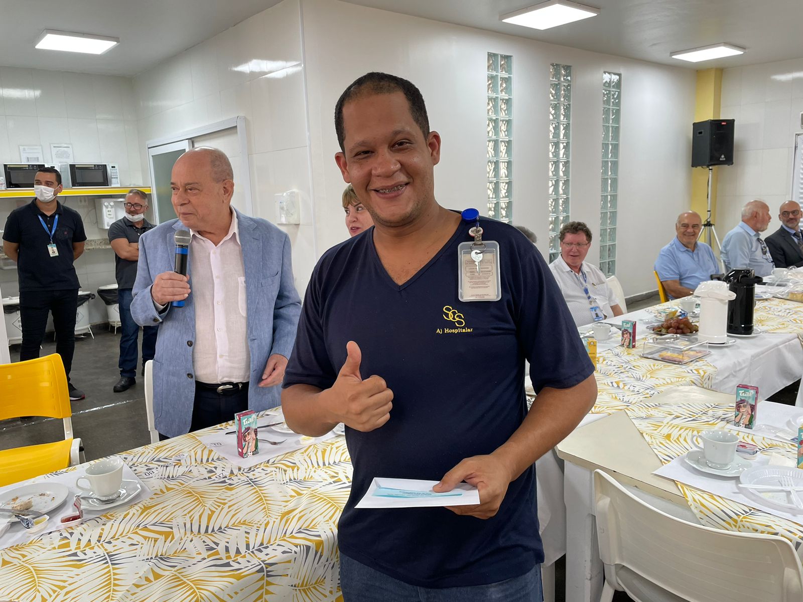 Após todos se servirem do café da manhã, dando continuidade ao evento, o provedor Ariovaldo Feliciano fez a entrega dos certificados de congratulação aos profissionais que se destacaram no atendimento aos pacientes, que foram: