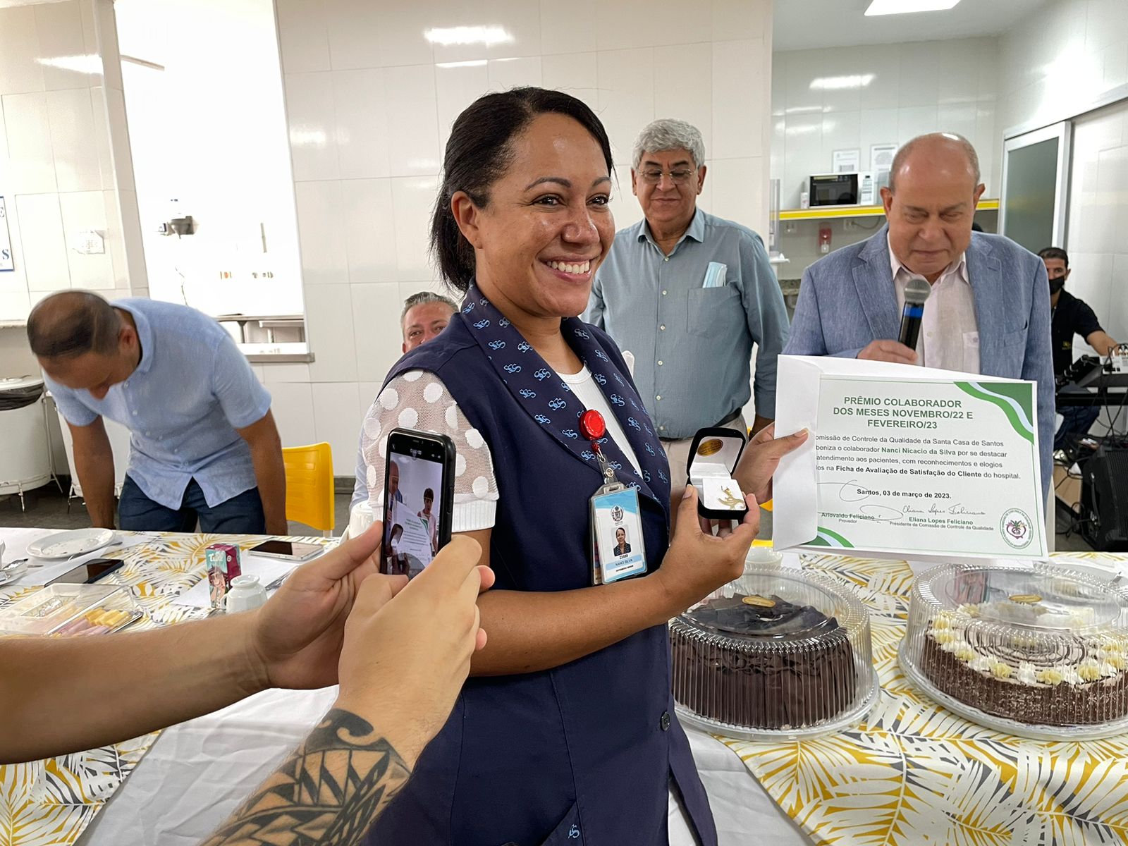 Esta é a quarta vez consecutiva que a Enfª Nanci Nicácio ganha o certificado de colaboradora destaque, e cumprindo o regulamento da CCQ para premiação, ela ganhou um pingente de ouro com o símbolo da enfermagem, entregue pelas mãos da presidente da CCQ, Eliana Lopes Feliciano.