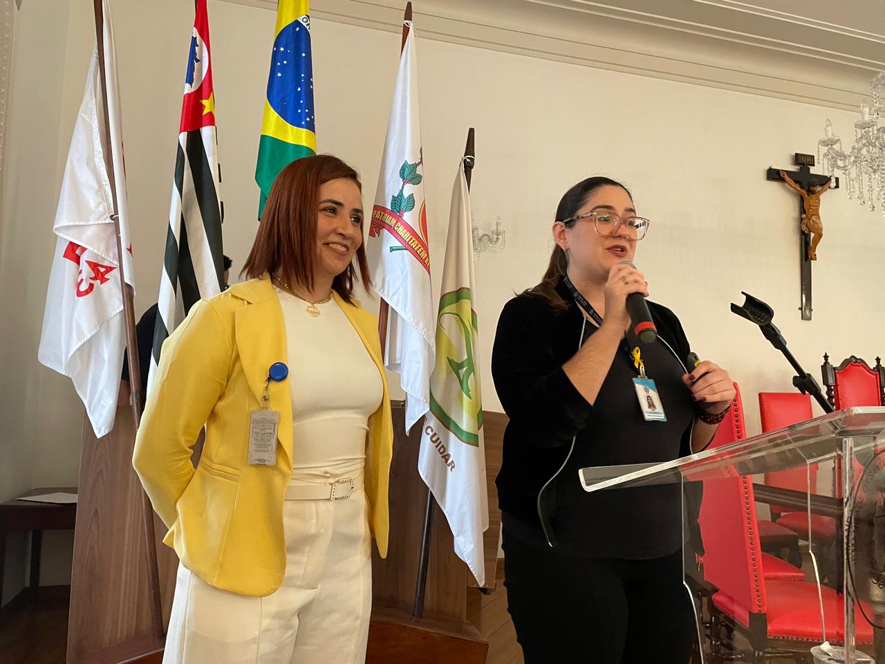 O início da semana na Santa Casa de Santos começou diferente para os funcionários da instituição, que foram recepcionados logo no primeiro horário da manhã com música e um grupo da comissão organizadora da campanha Setembro Amarelo entregando pirulitos com frases motivacionais.