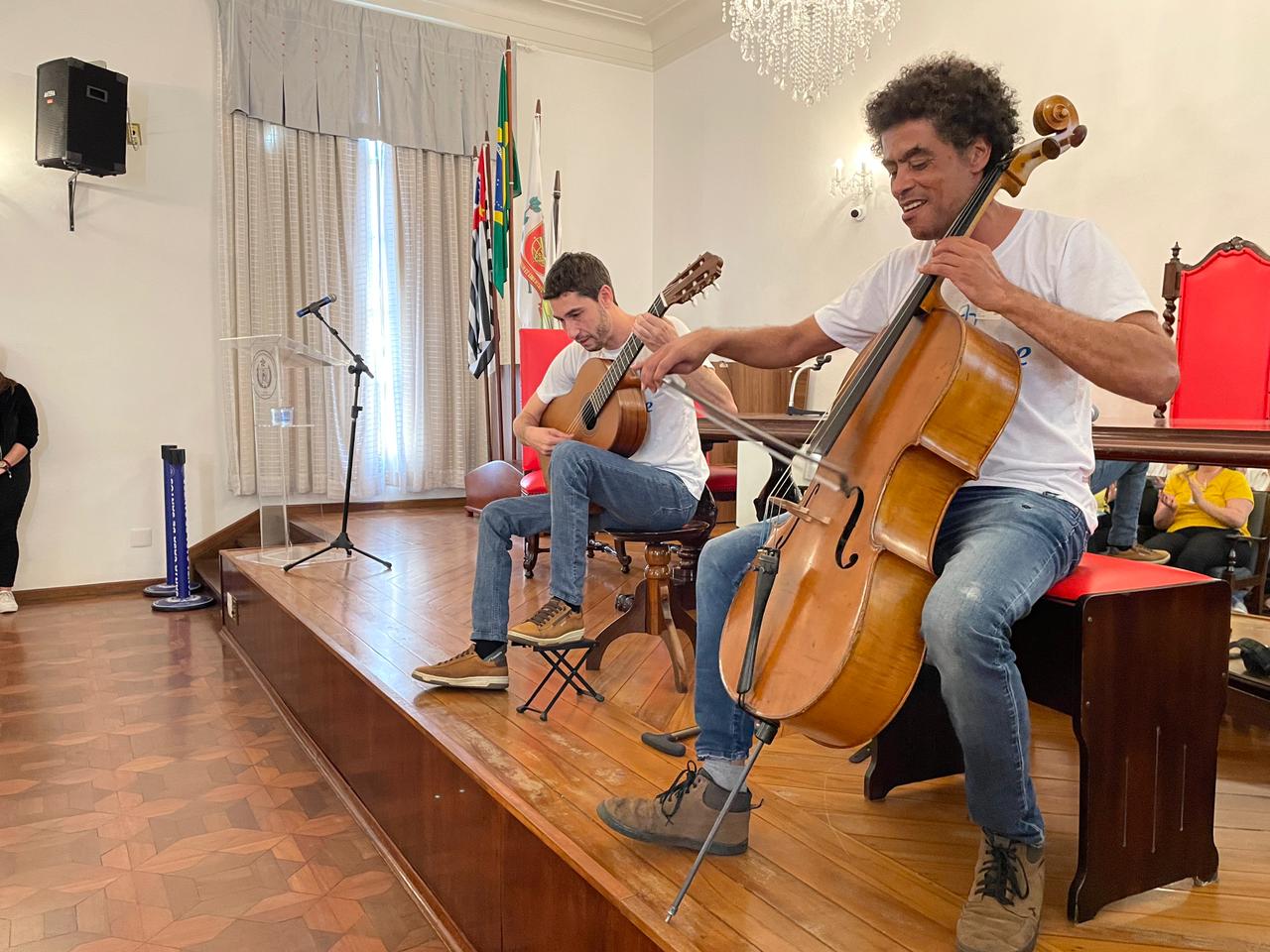 No período da tarde, às 14h, no consistório, teve apresentação da Orquestra de Cordas Rioclarense Cultural que emocionou o público, que lotou o espaço e cantou junto o repertório apresentado.