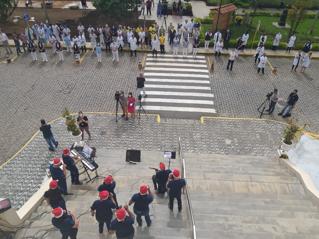 A manhã do dia 18 de dezembro foi marcada por muita emoção, com a apresentação do grupo musical Santa Voz de Casa*, que dedicou todo o repertório aos profissionais de saúde que foram o grande destaque de 2020, na linha de frente do combate à Covid-19.