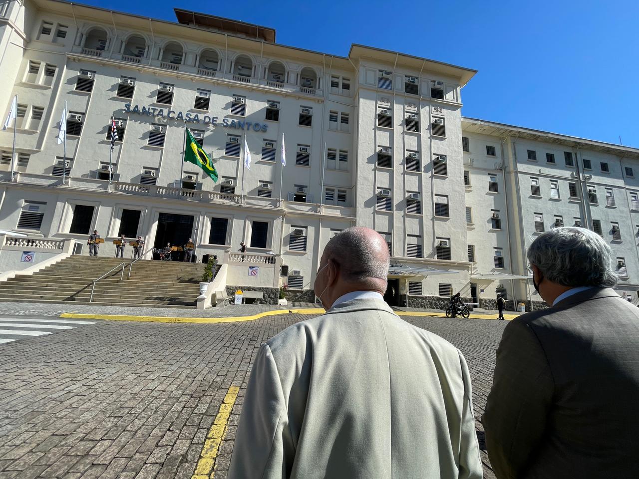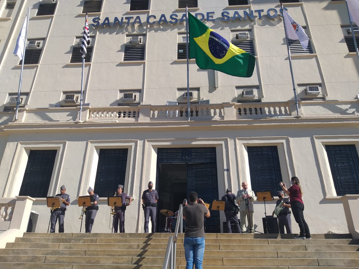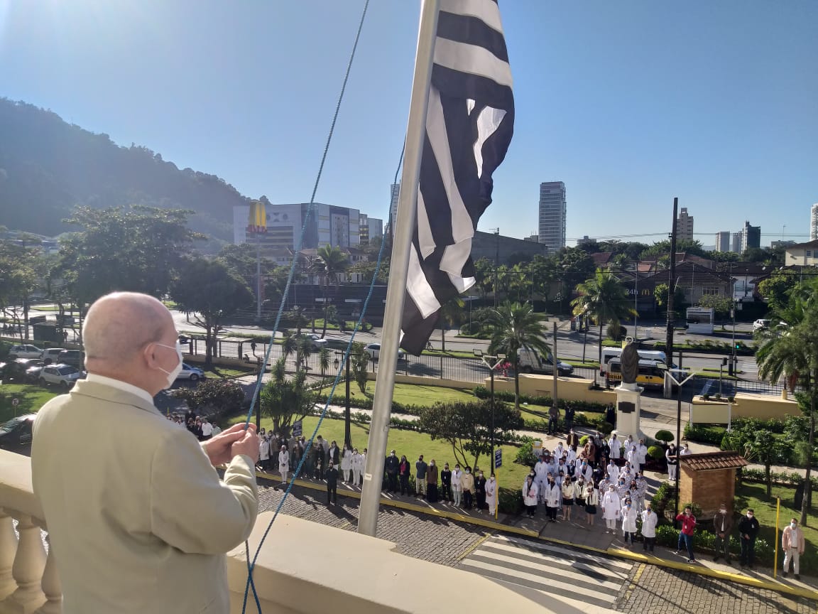 Para marcar a data, a Santa Casa de Santos convidou autoridades, membros da Mesa Administrativa e gestores, para participarem do hasteamento das bandeiras.
