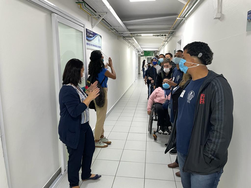 Para implementar as aulas, os participantes também realizaram visita monitorada na Santa Casa de Santos, e puderam ver de perto as rotinas de trabalho de diversos setores, proporcionando aos alunos a experiência da vivência institucional.