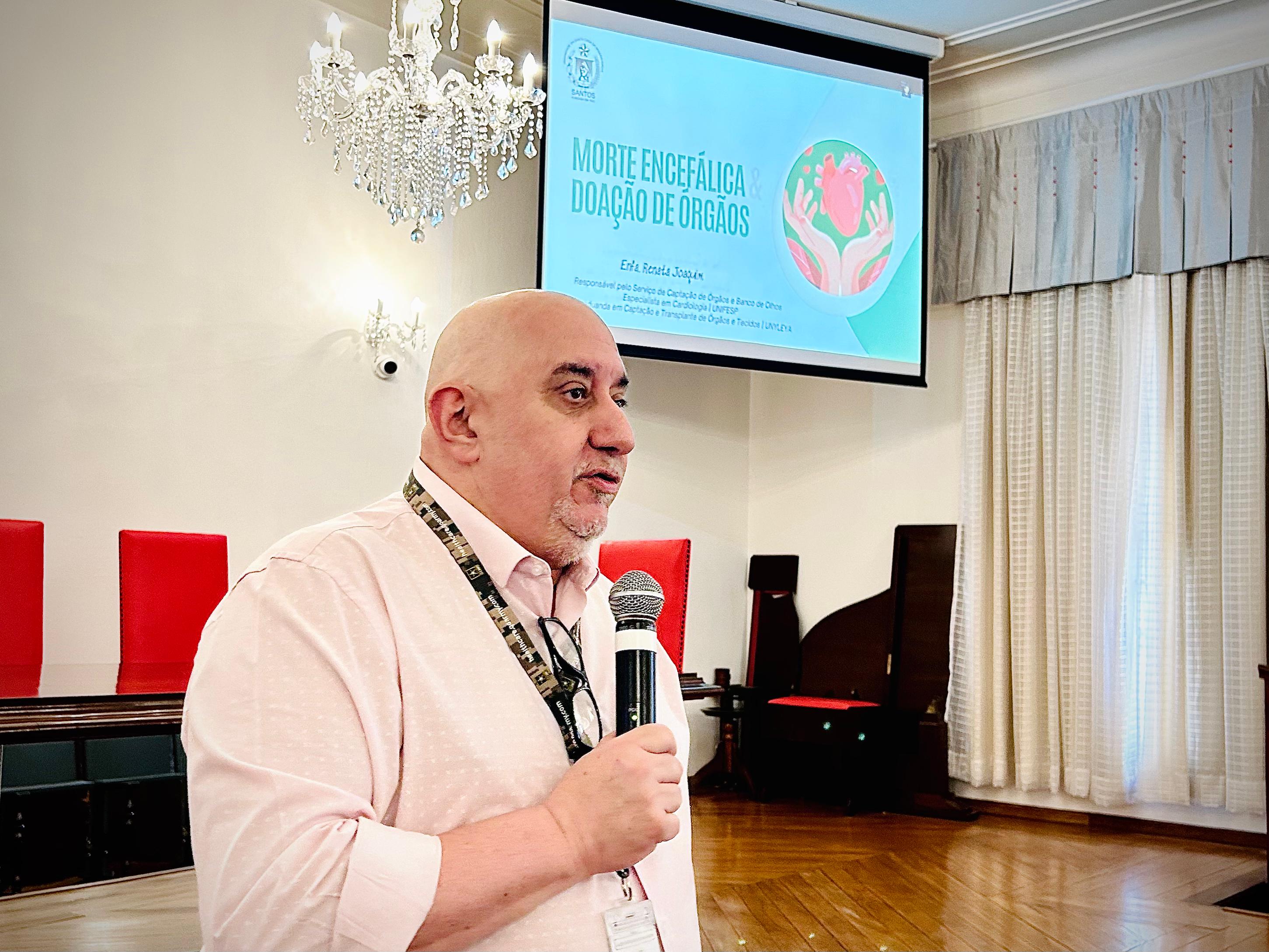 A seguir, a palestra foi ministrada pela enfª. Renata Joaquim, responsável pelo Serviço de Captação de Órgãos, que detalhou cada fase do protocolo de morte encefálica e o processo de doação dos órgãos.