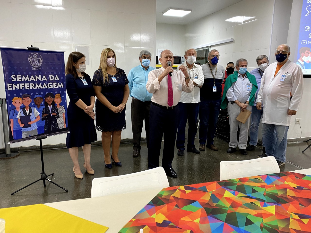 Ao lado da gerente de Enfermagem, Simone Tedesco, e da gerente de Regulação de Vagas, Mônica Martins, o provedor Ariovaldo Feliciano destacou o papel essencial da enfermagem diante da pandemia, e de todos os esforços na luta contra o vírus. O provedor também enalteceu a dedicação de todos os profissionais que ajudaram a transformar o hospital na “Nova Santa Casa de Santos”.
