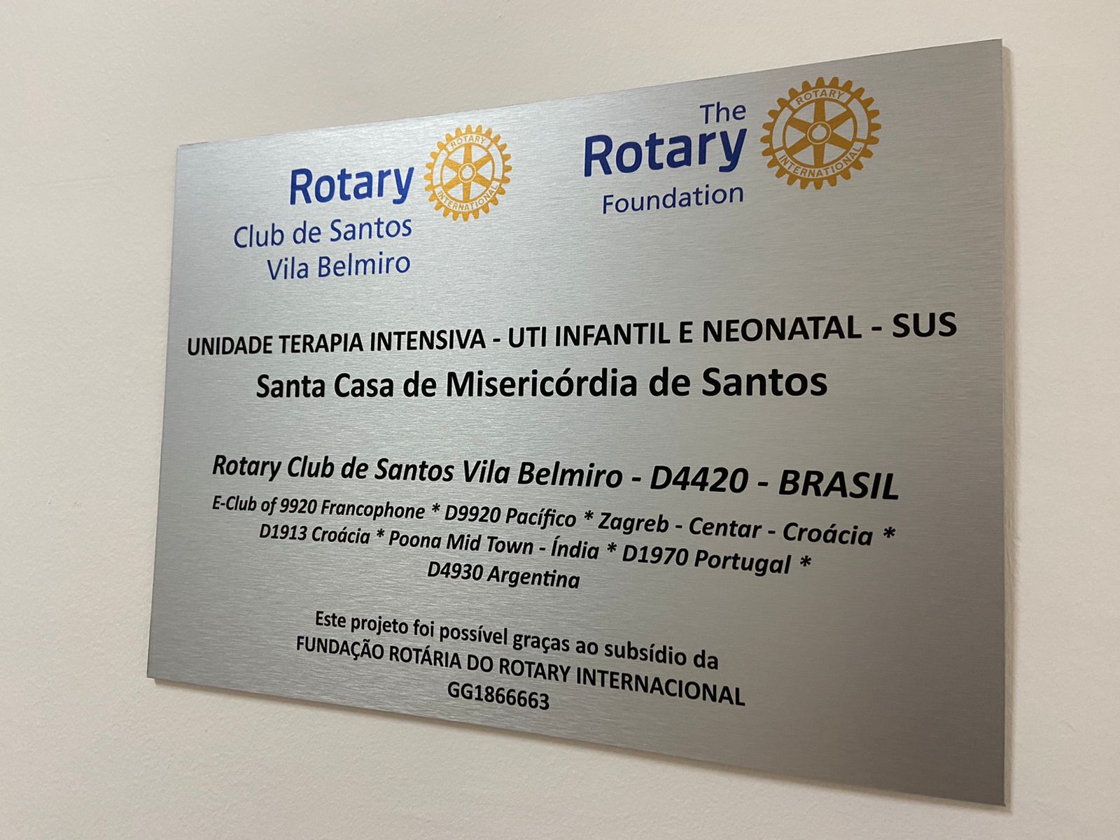 Após a reunião, o vice provedor e diretor clínico acompanharam os rotarianos em visita pelo hospital, passando pela sala de espera do Centro Cirúrgico, Centro Robótico, UTI Pediátrica e UTI Neonatal, onde os membros do Rotary fixaram uma placa de menção a todos os envolvidos que participaram da doação dos equipamentos.